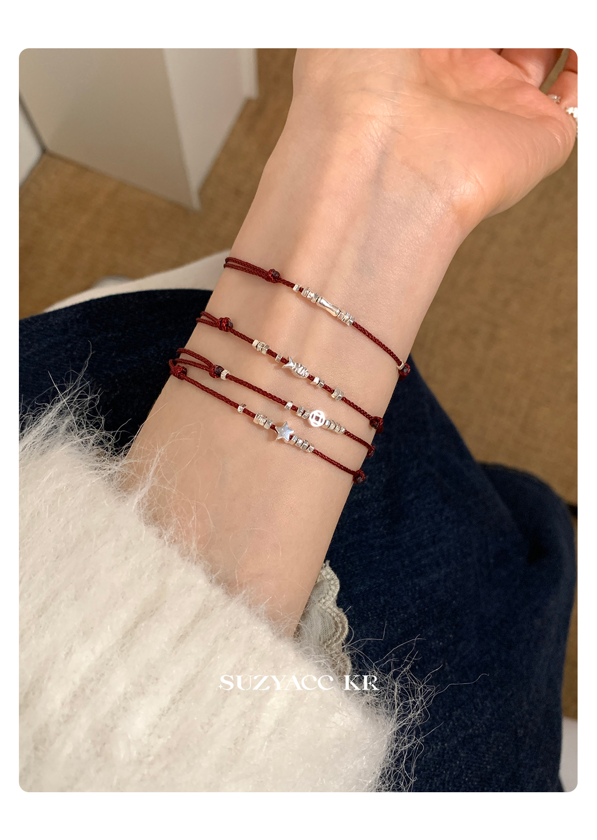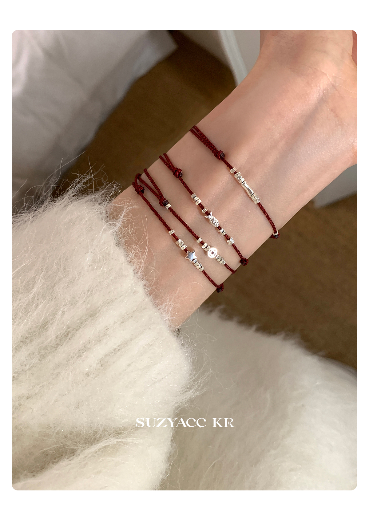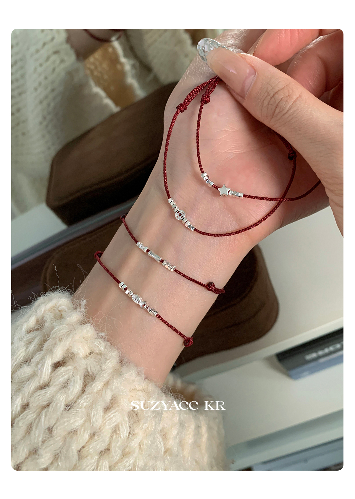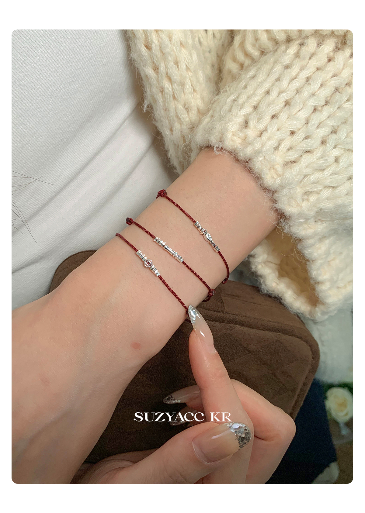 Suzyacc Kr Zodiac Year Silver Fragment Red String Simple Niche Design Bracelet Atmospheric Versatile Layered Bracelet