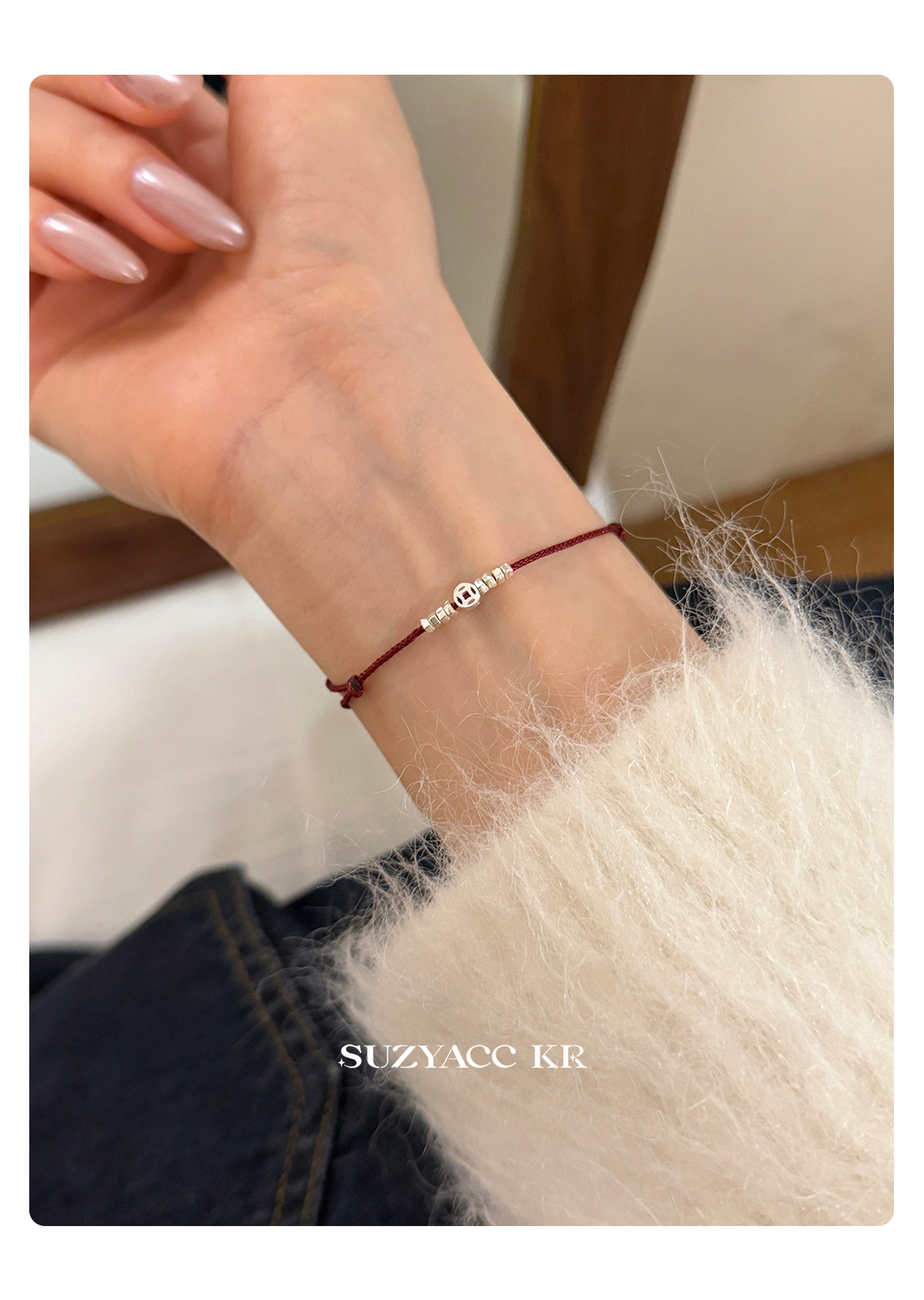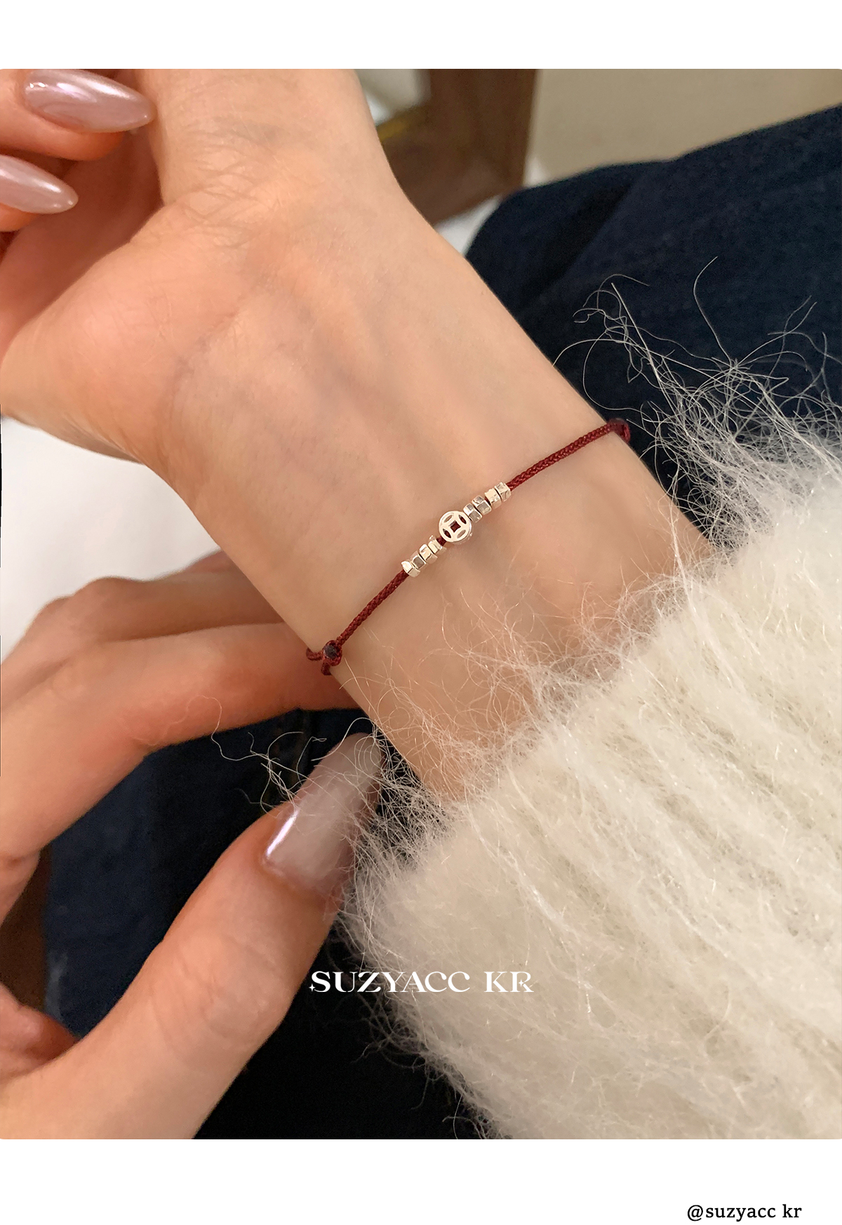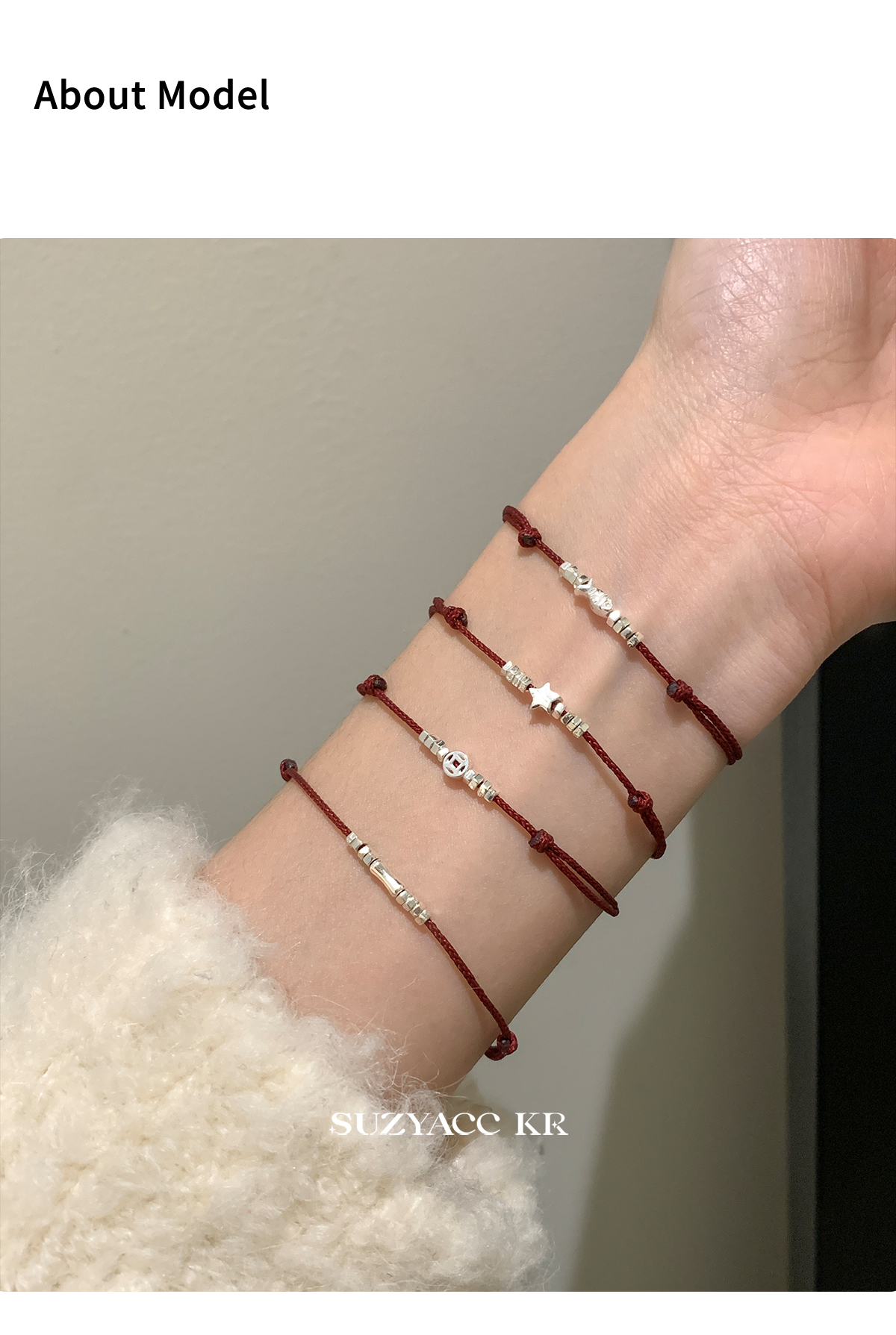 Suzyacc Kr Zodiac Year Silver Fragment Red String Simple Niche Design Bracelet Atmospheric Versatile Layered Bracelet