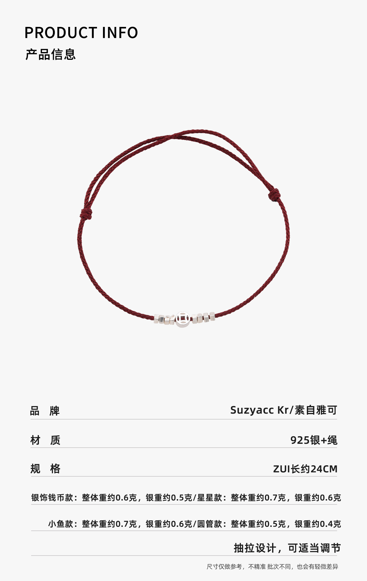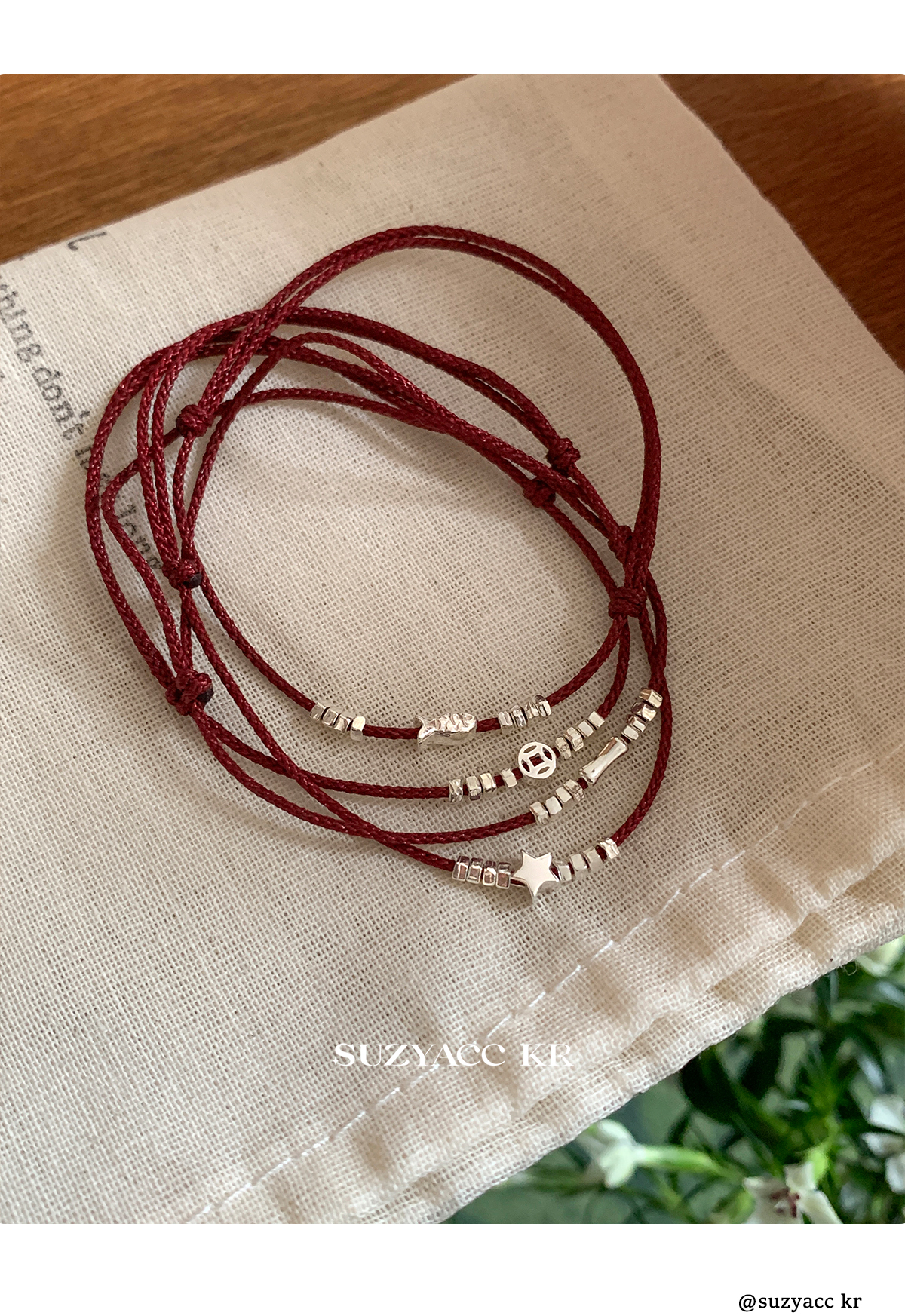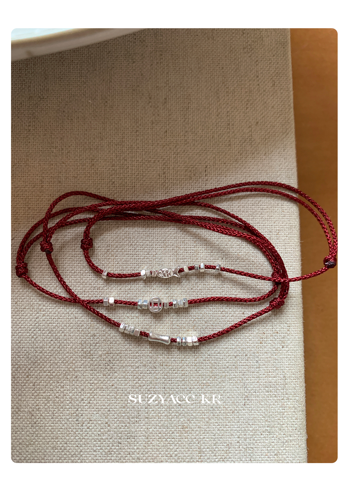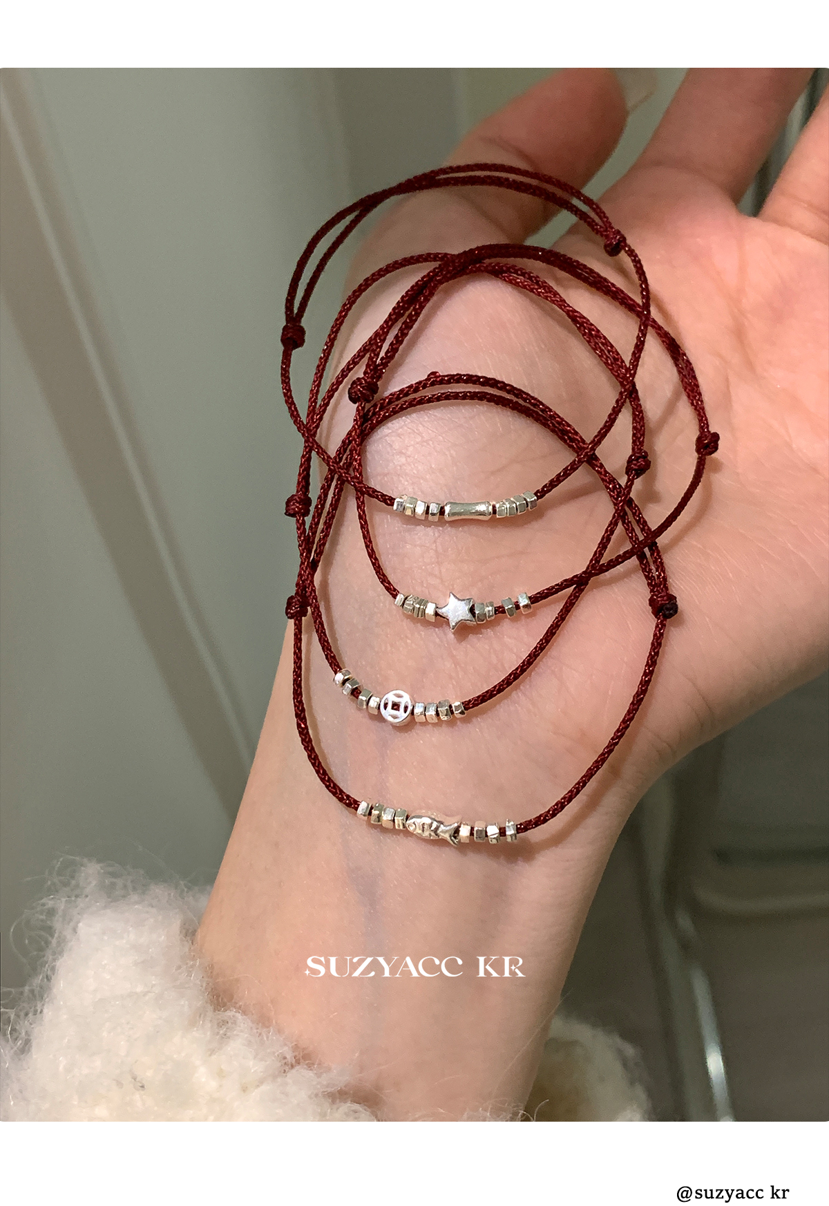 Suzyacc Kr Zodiac Year Silver Fragment Red String Simple Niche Design Bracelet Atmospheric Versatile Layered Bracelet