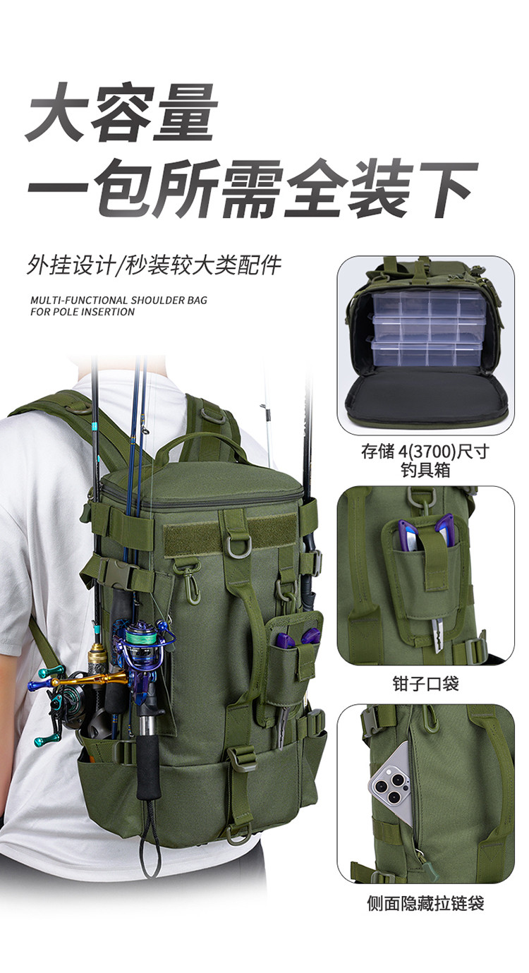 Outdoor Multifunctional Waterproof Lure Bag Men's Backpack Hand-Held Crossbody Bag Travel Sports Backpack Fishing