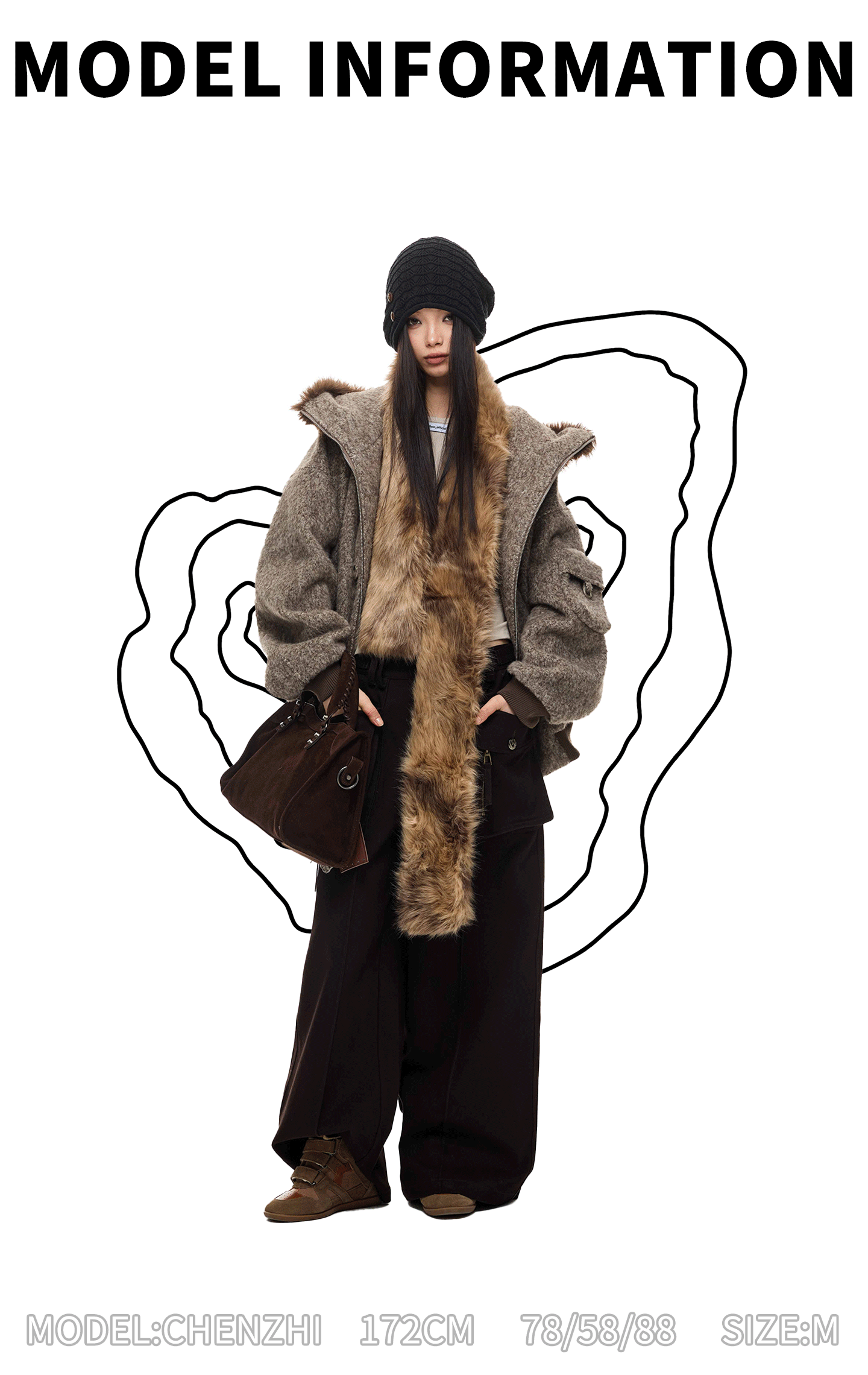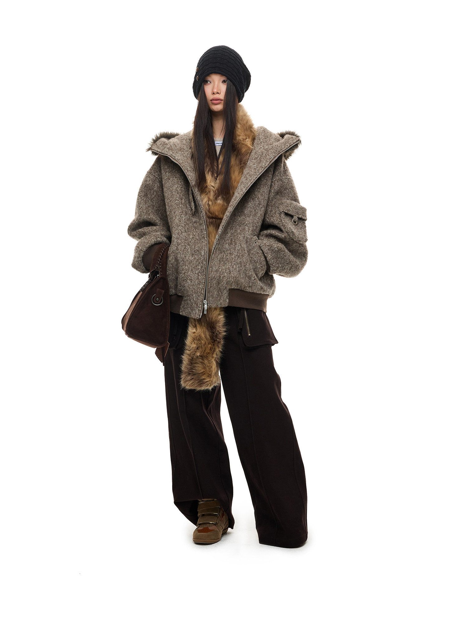 Jikoo【Sunset Boulevard】Design-Inspired Fur Collar Hooded Workwear Short Woolen Coat with Fleece Lining for Women