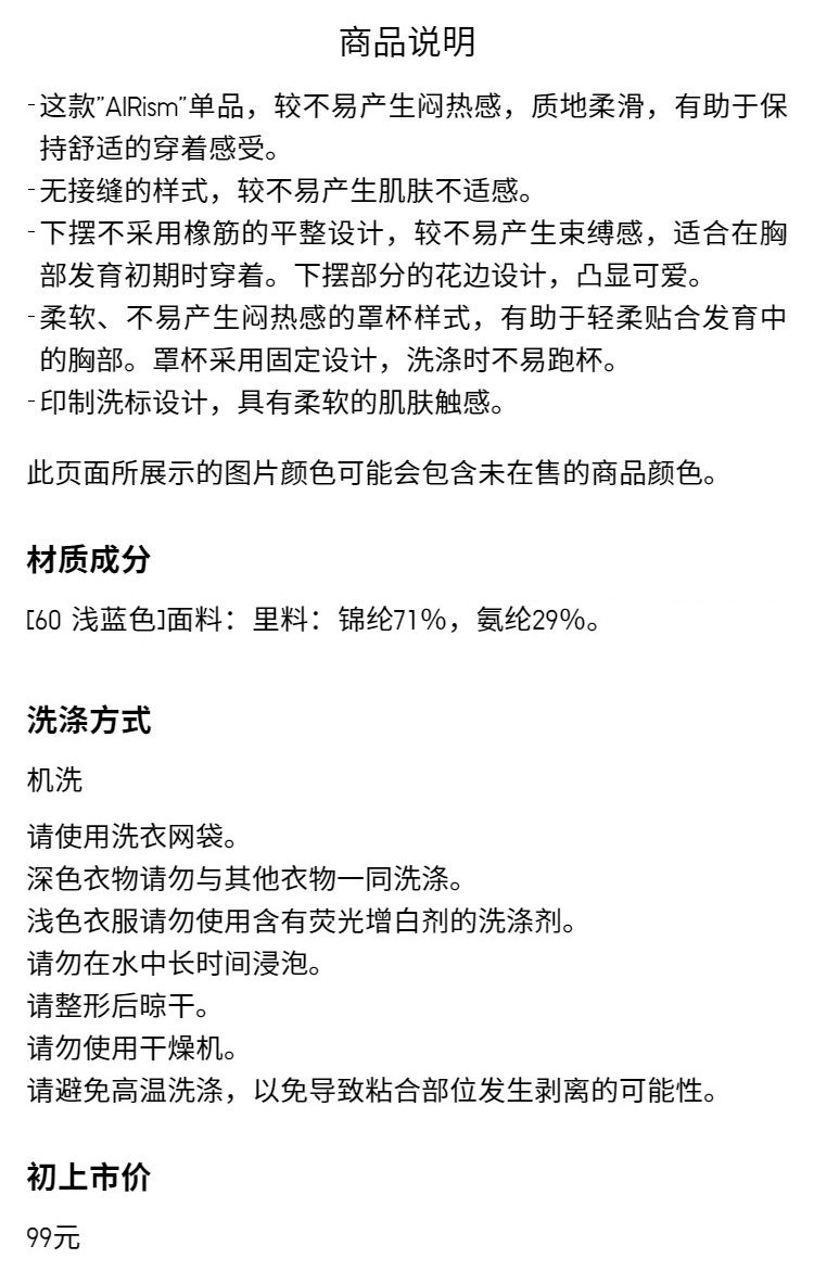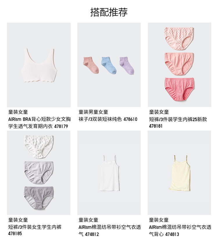 Priority Express Uniqlo Children's Clothing Girls' Airism Bra Vest Short Air Shirt for Teenagers 474684