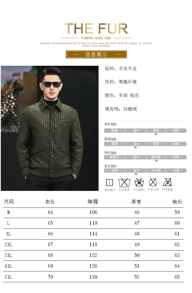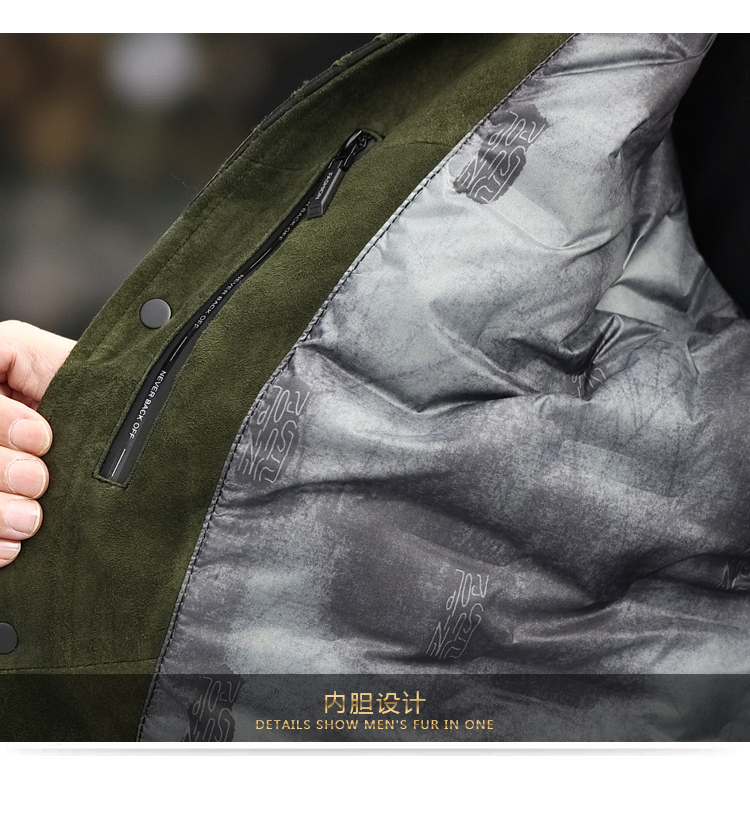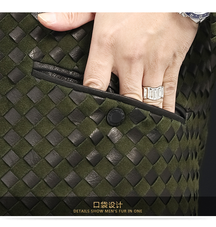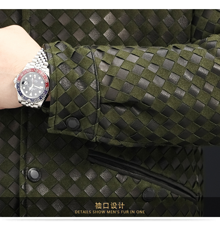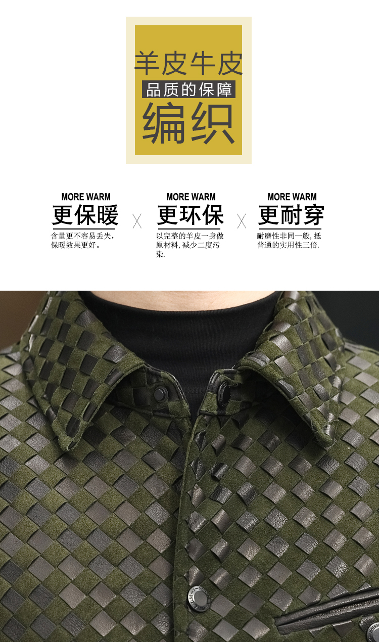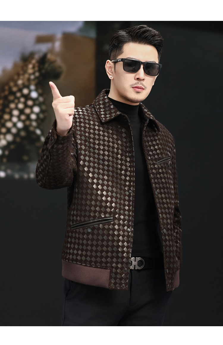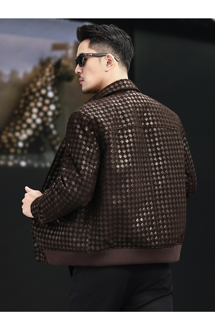 High-End Light Luxury Trendy Handmade Woven Jacket Genuine Leather Goose down Coat Men's Leather Jacket Short Style with Lapel