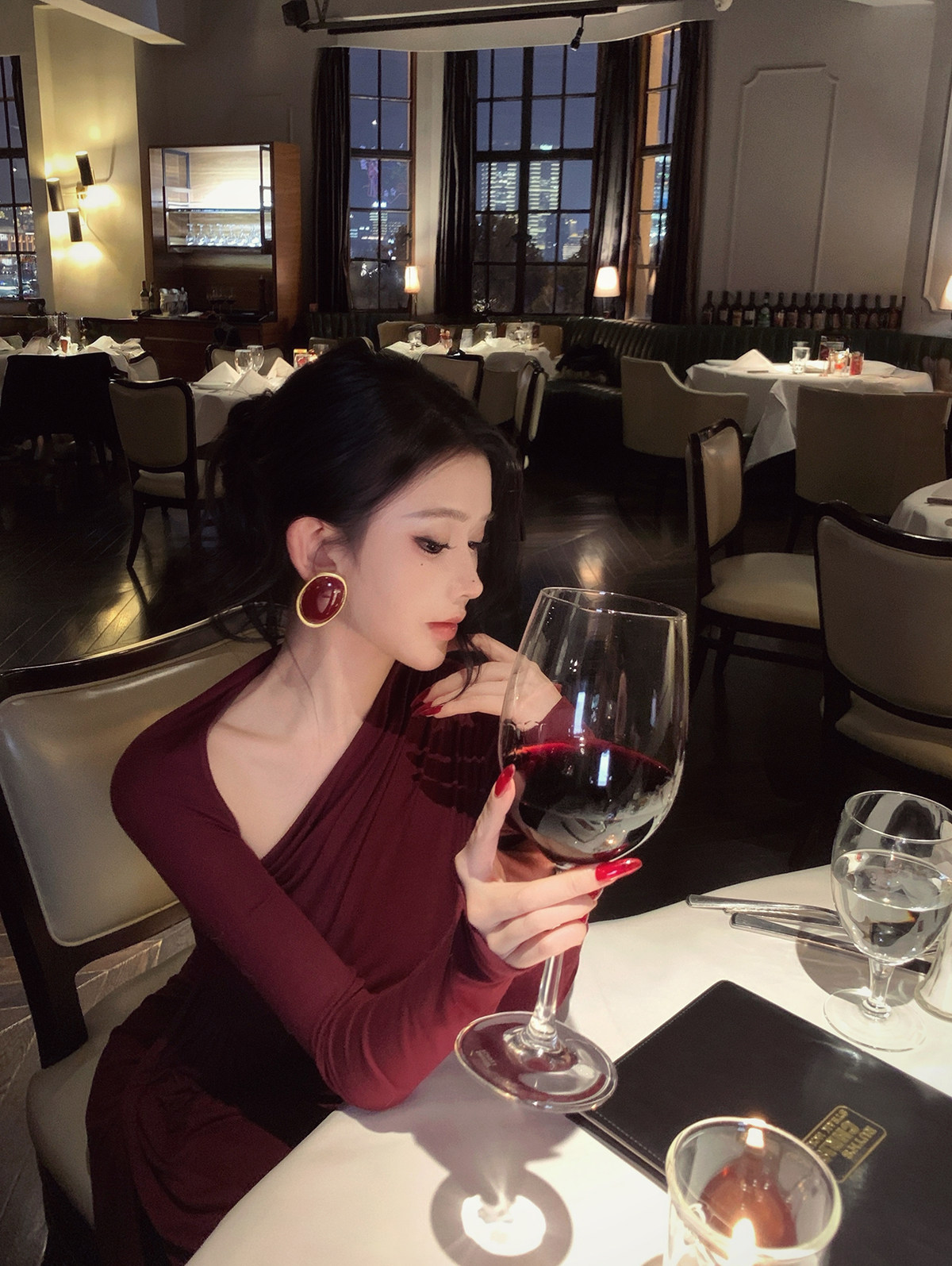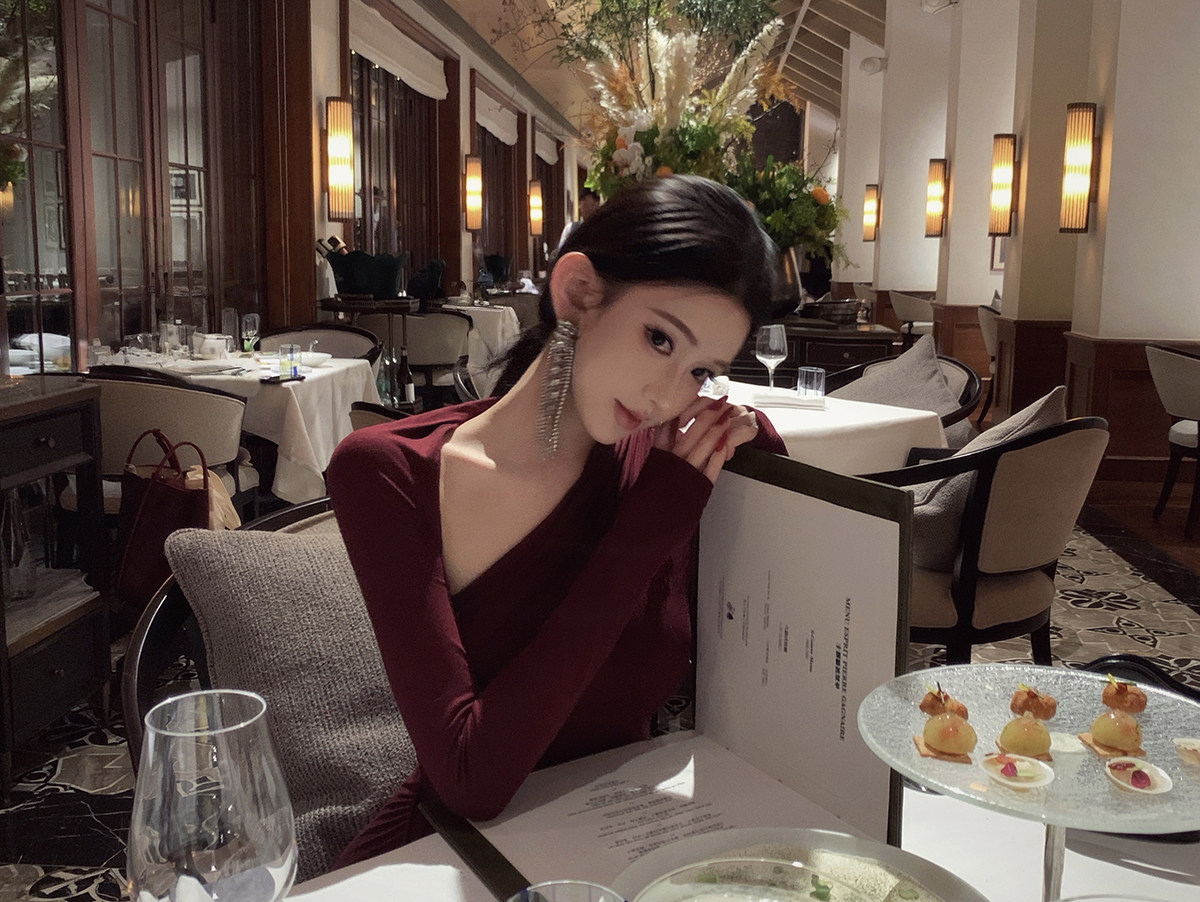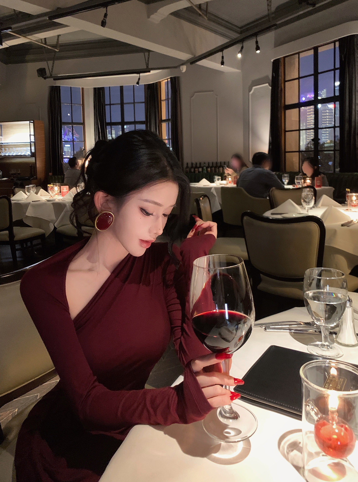 垂坠感佳,完全诠释了关于优雅的另一种定义,酒红色神秘深邃,