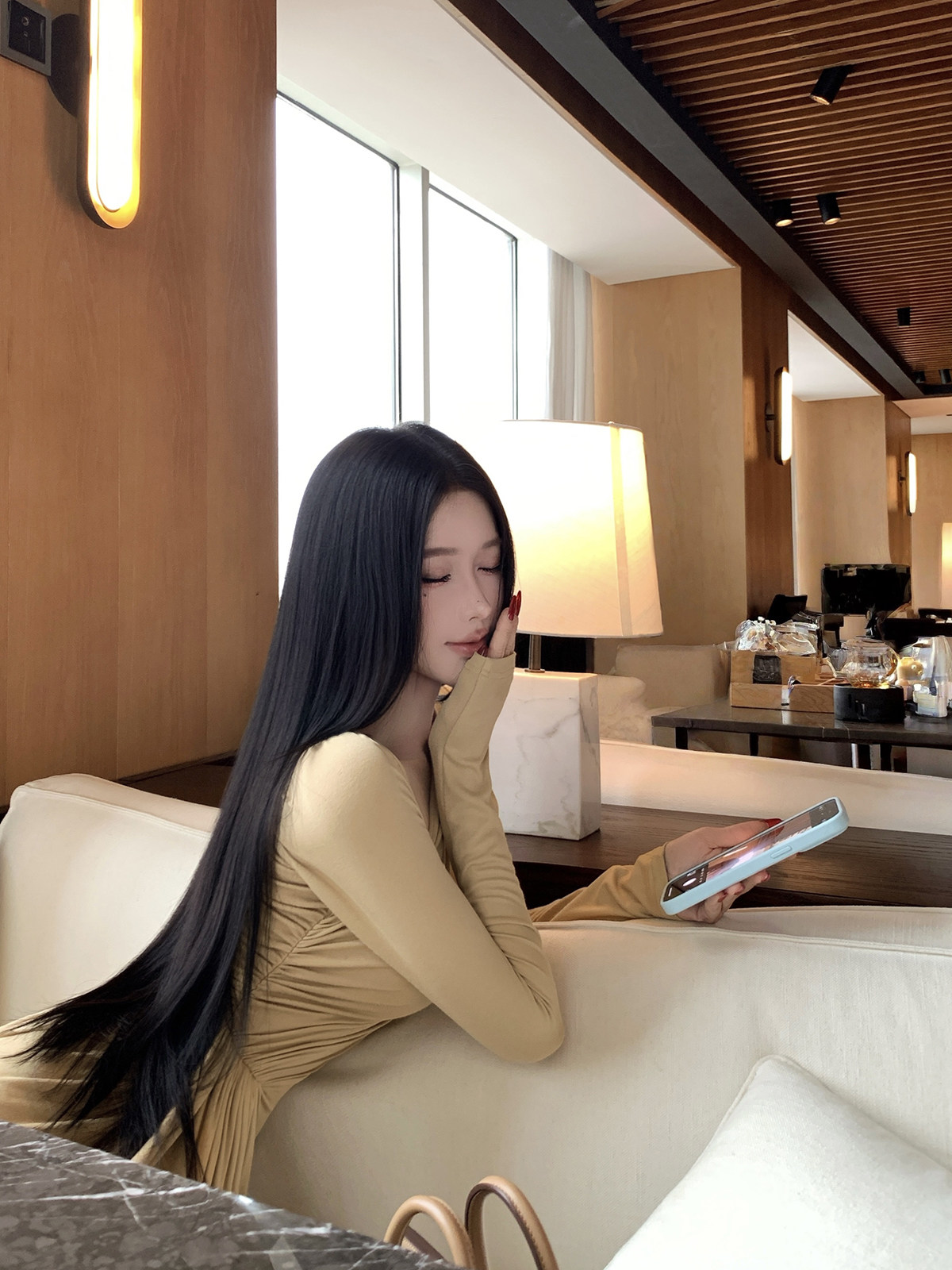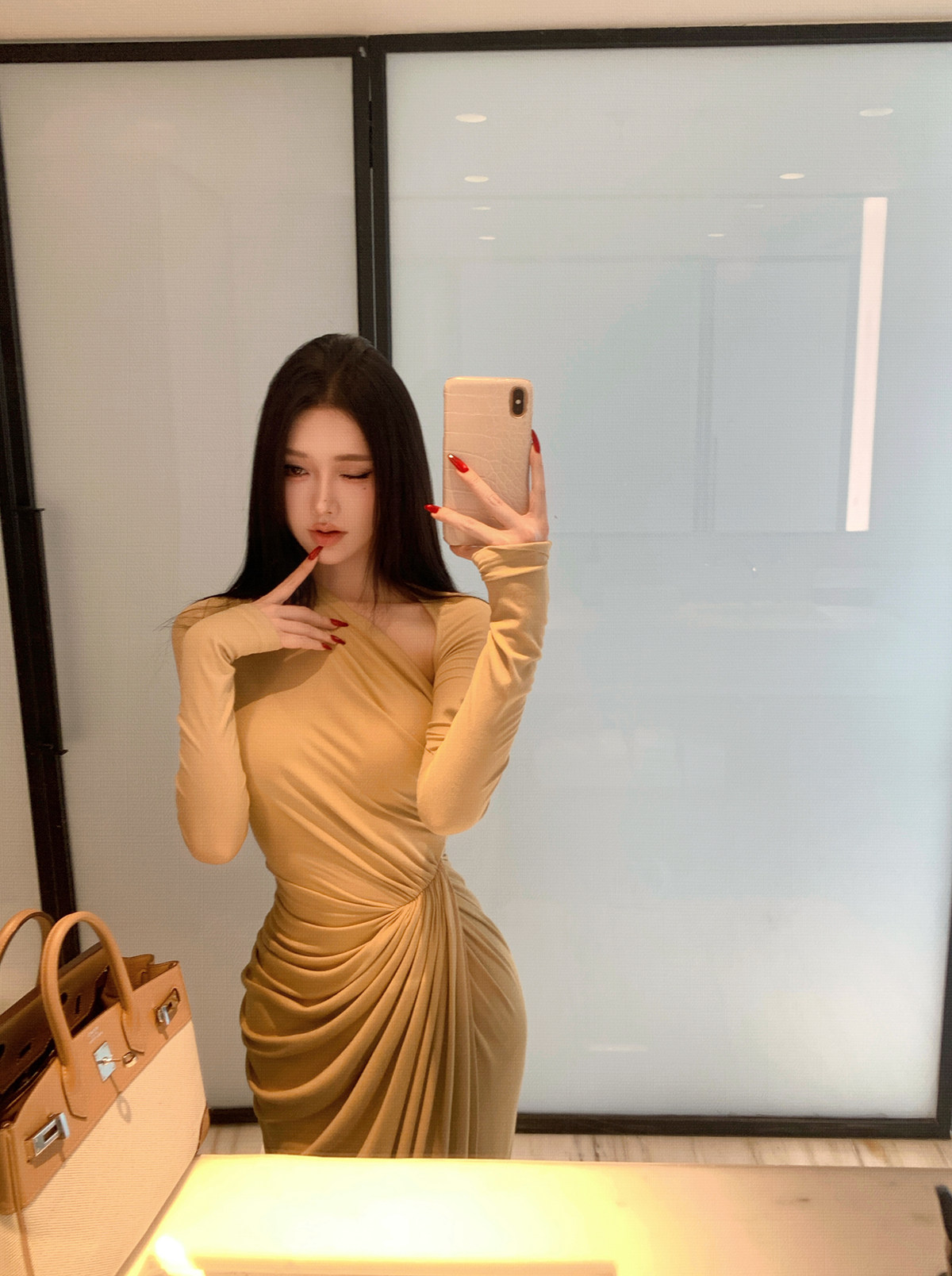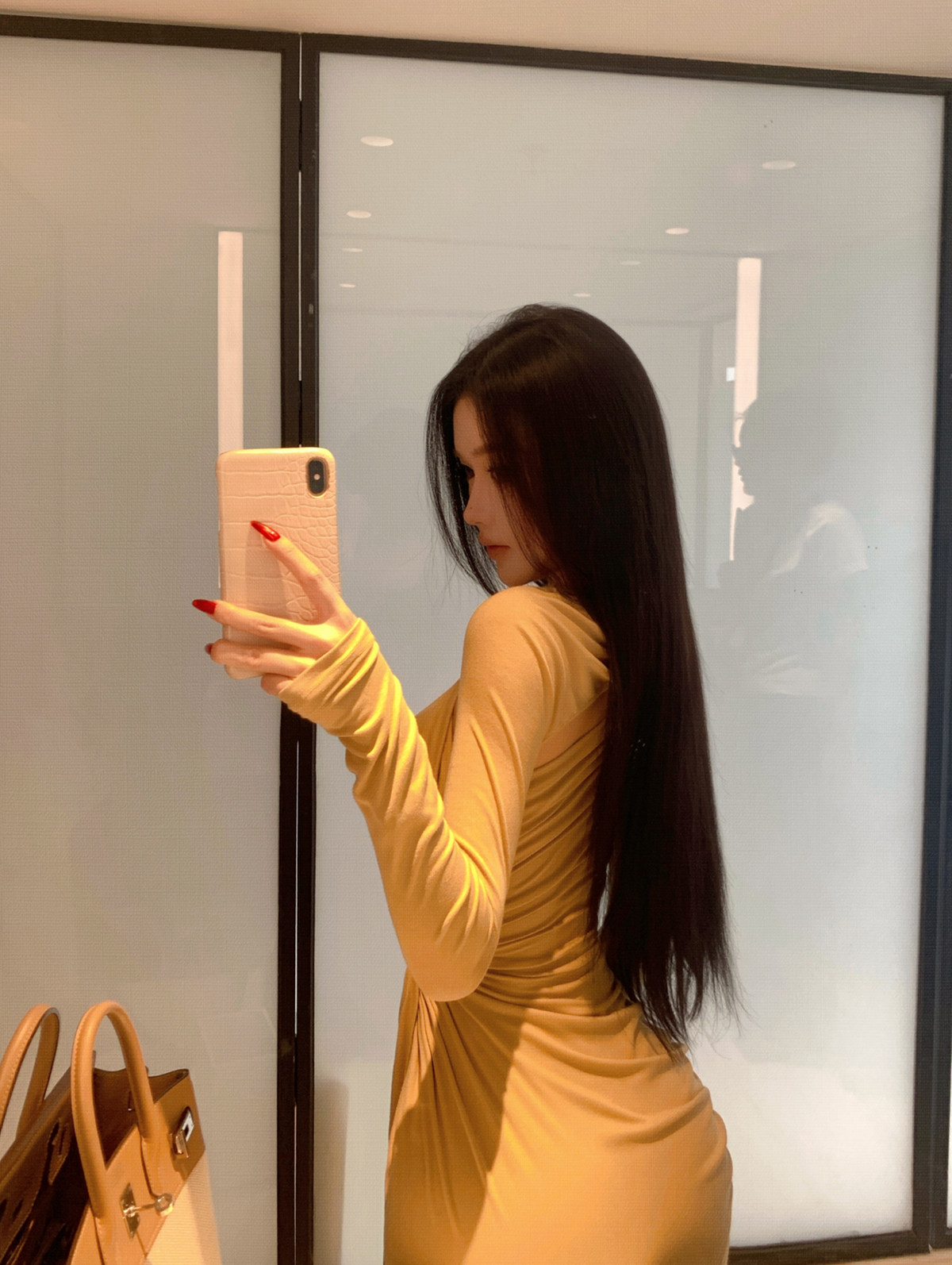 修身包臀的长裙版型,上身尽显曼妙身材曲线,
