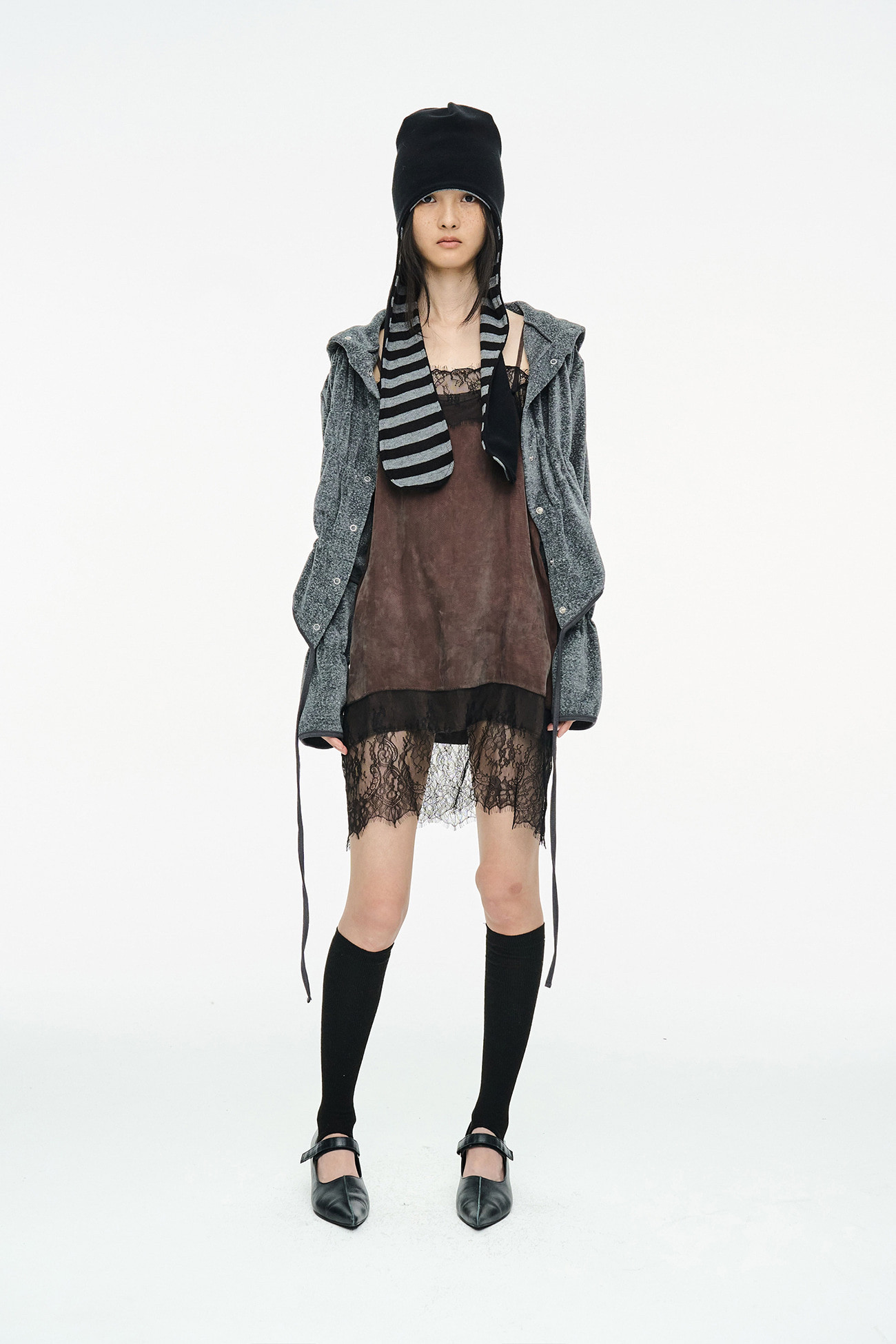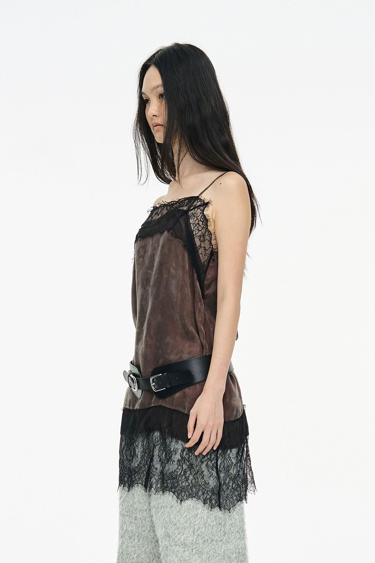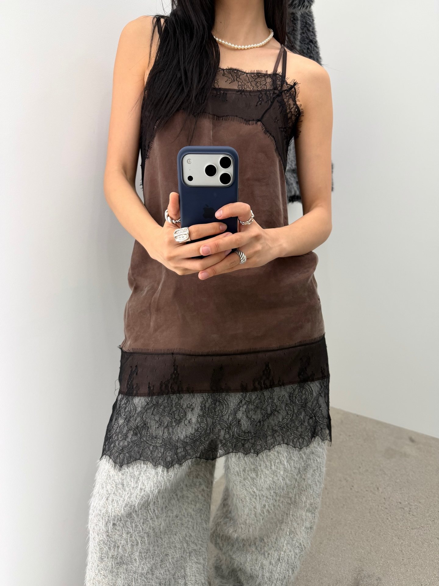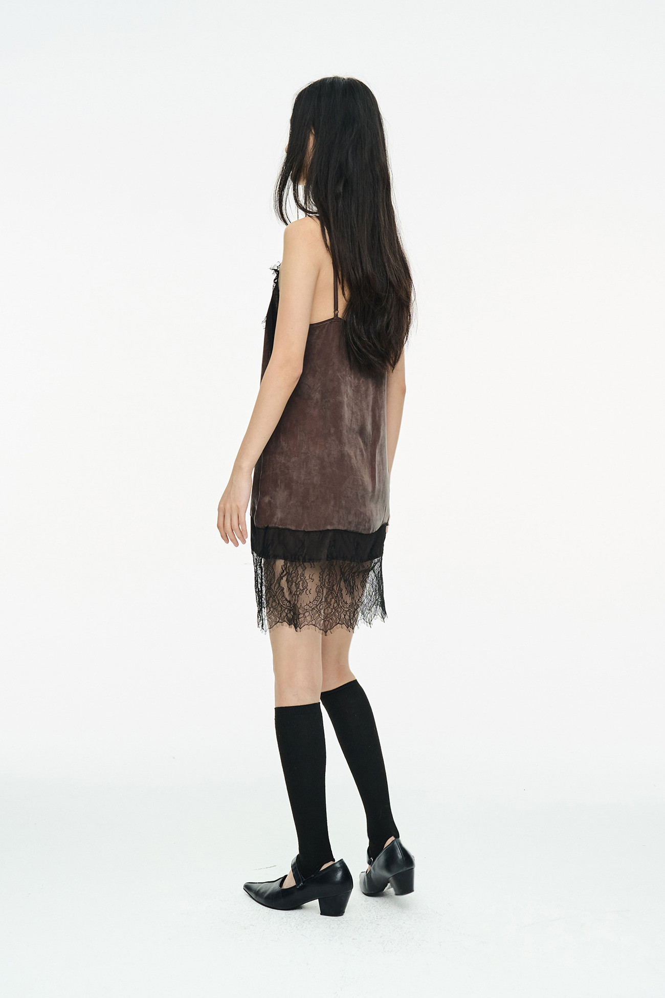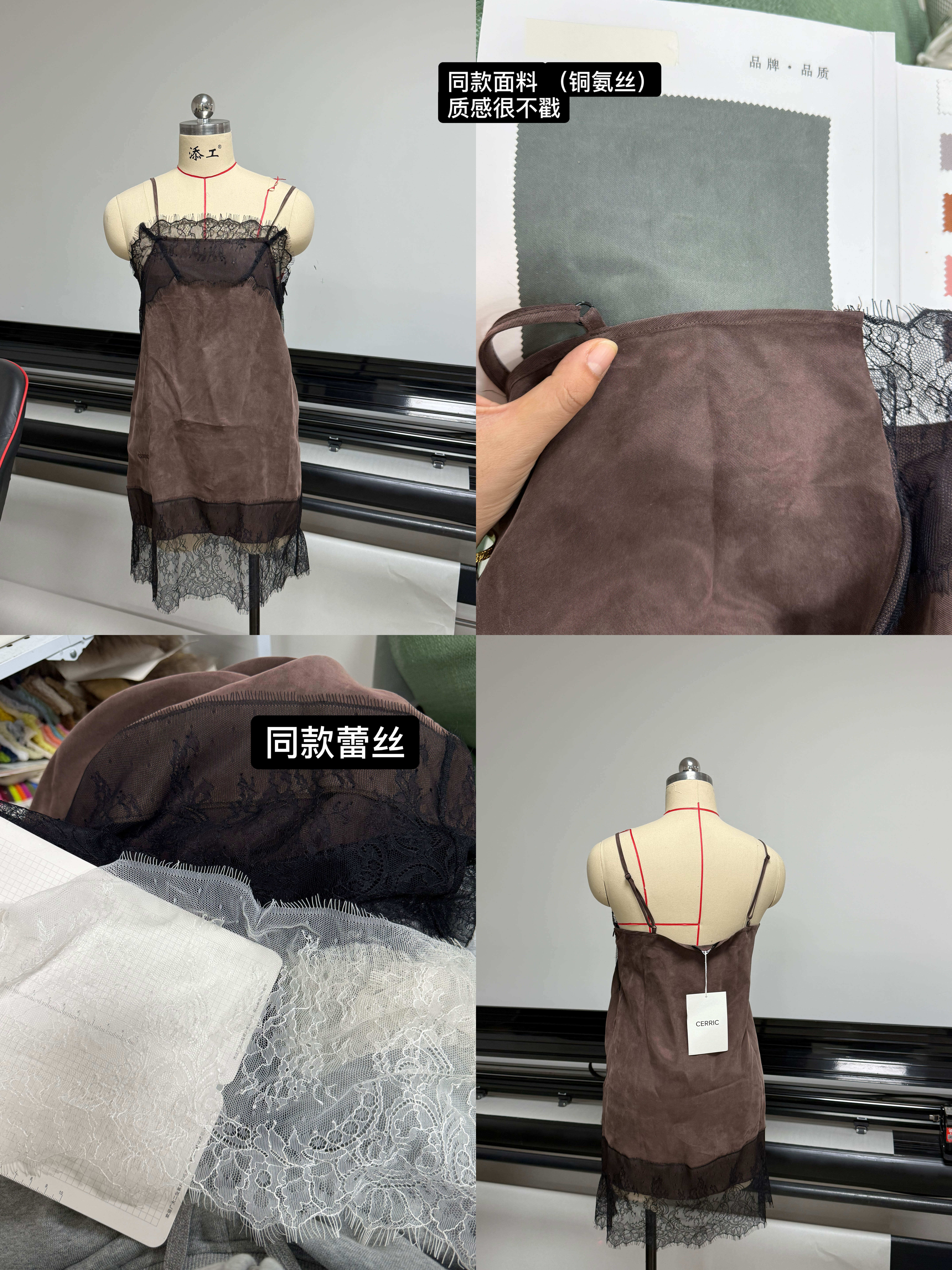 Cerric Same Style Korean Niche Design 25 Autumn/Winter New Lace Nightgown Style Spaghetti Strap Dress Short Skirt