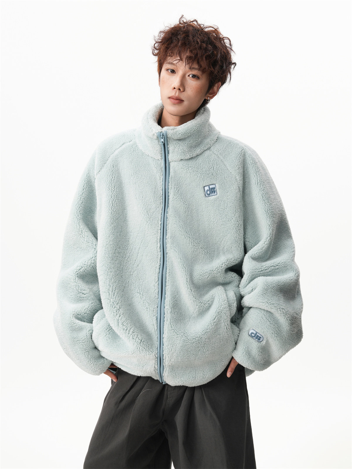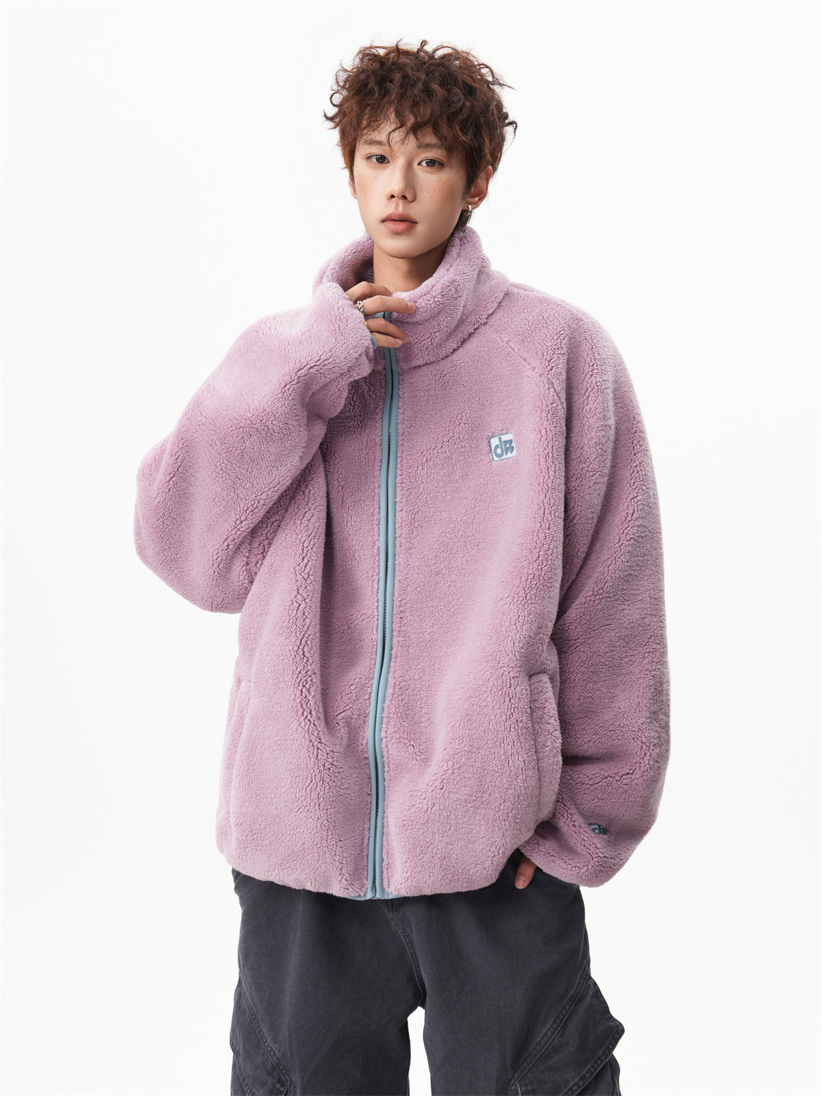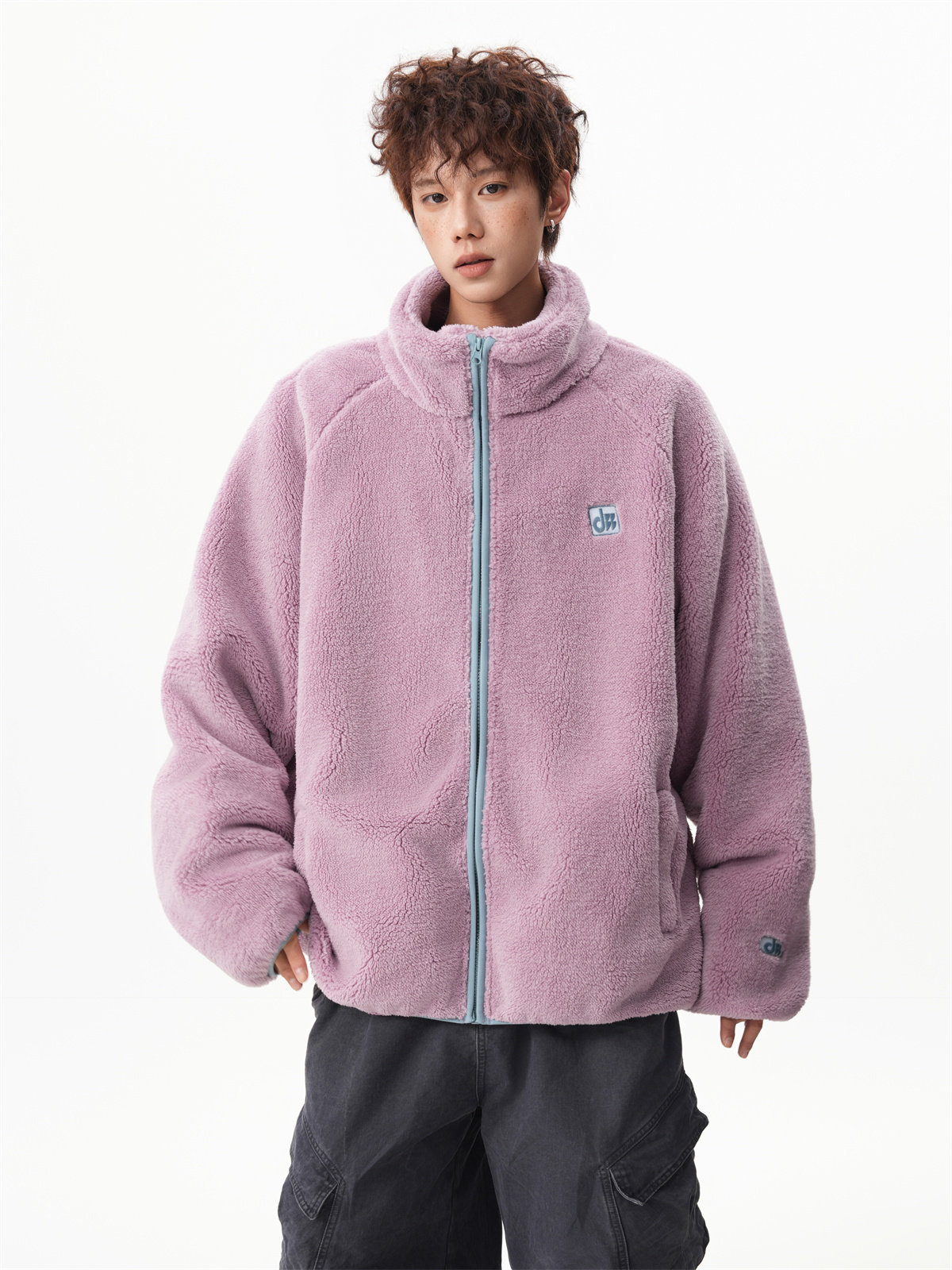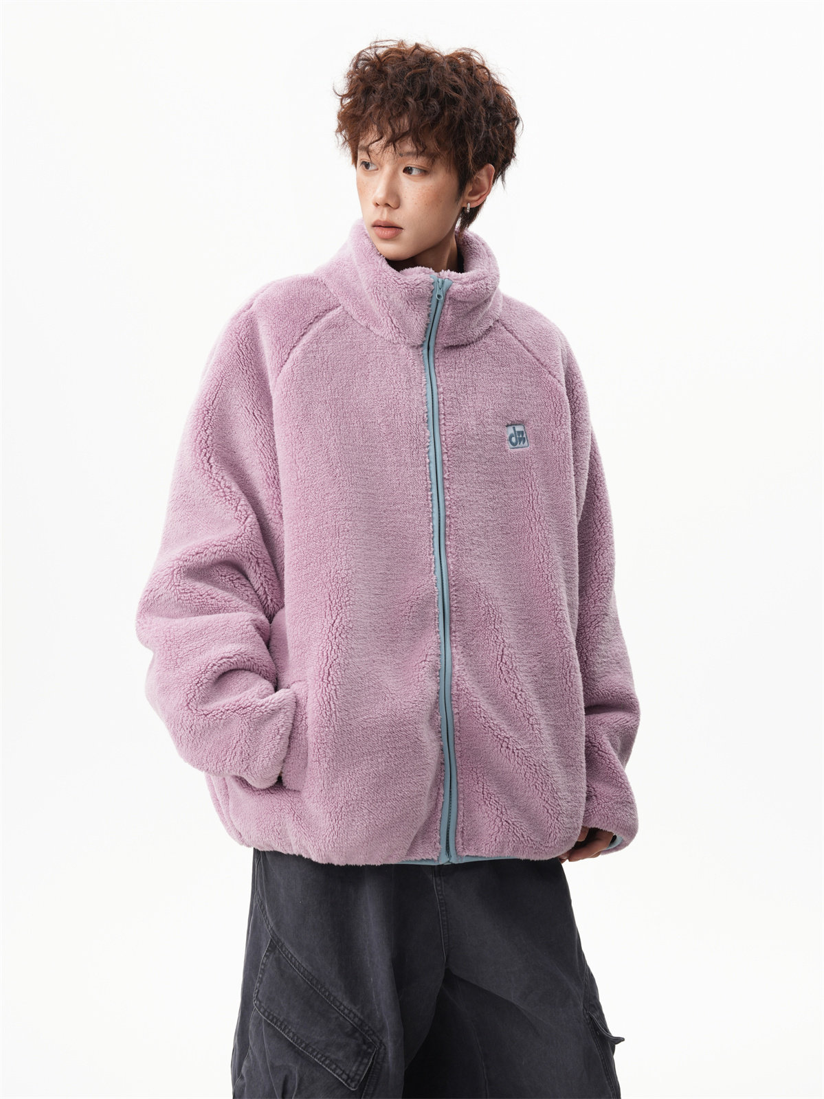 American-Style Couple's Fleece Stand-Up Collar Cotton Jacket for Men and Women, Winter Loose Soft Plush Jacket, Thickened Warm Plush Coat