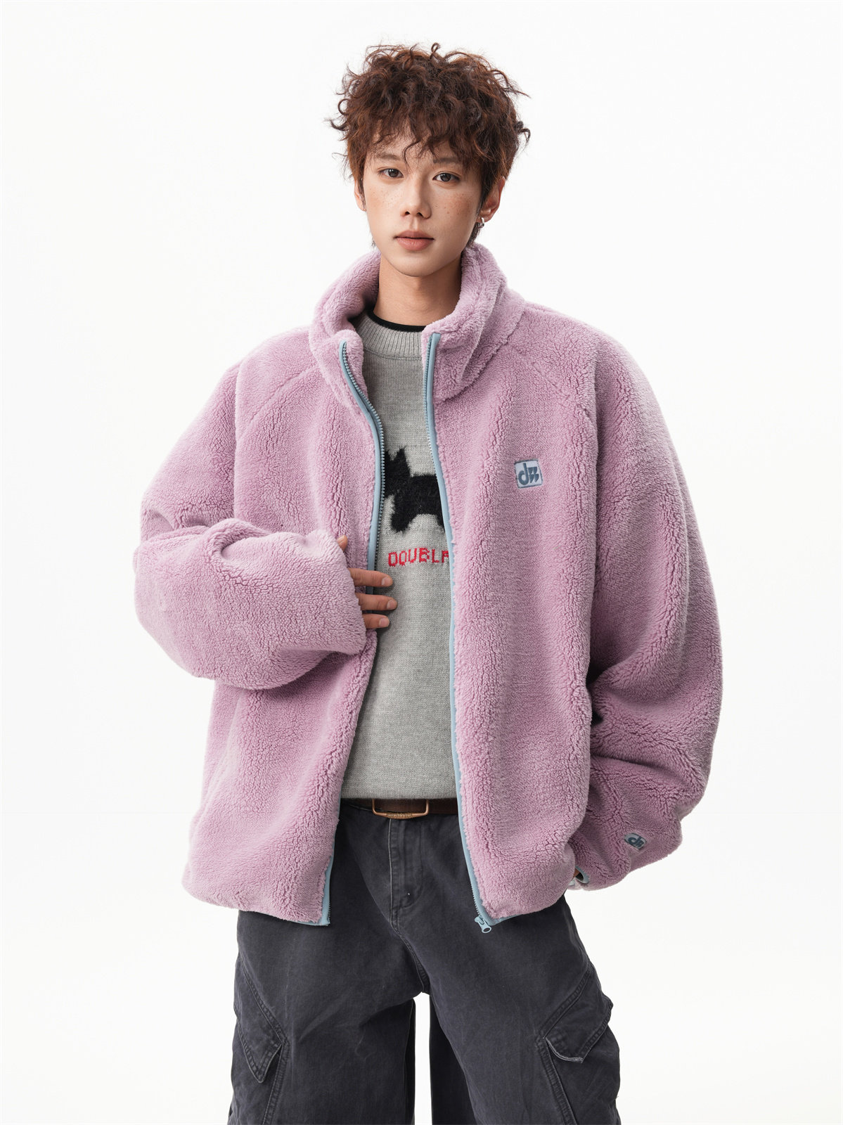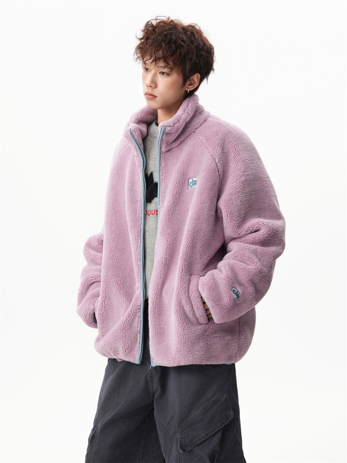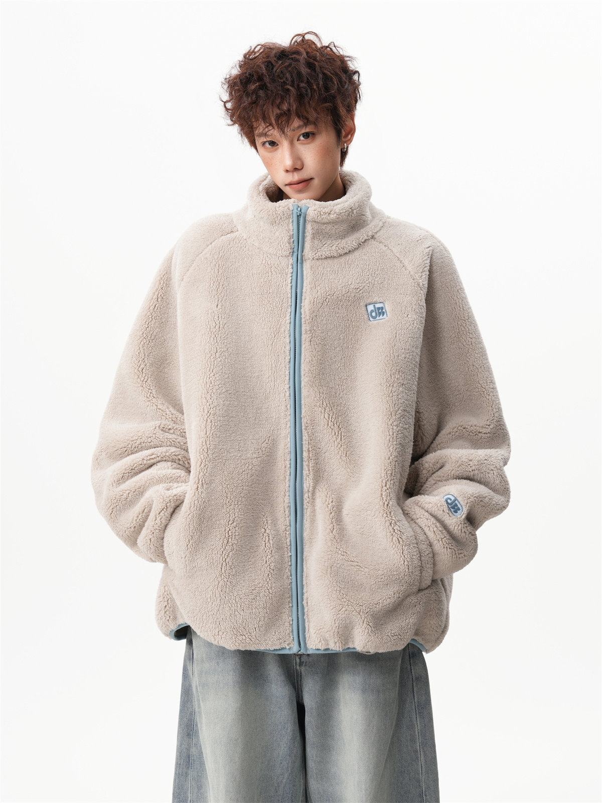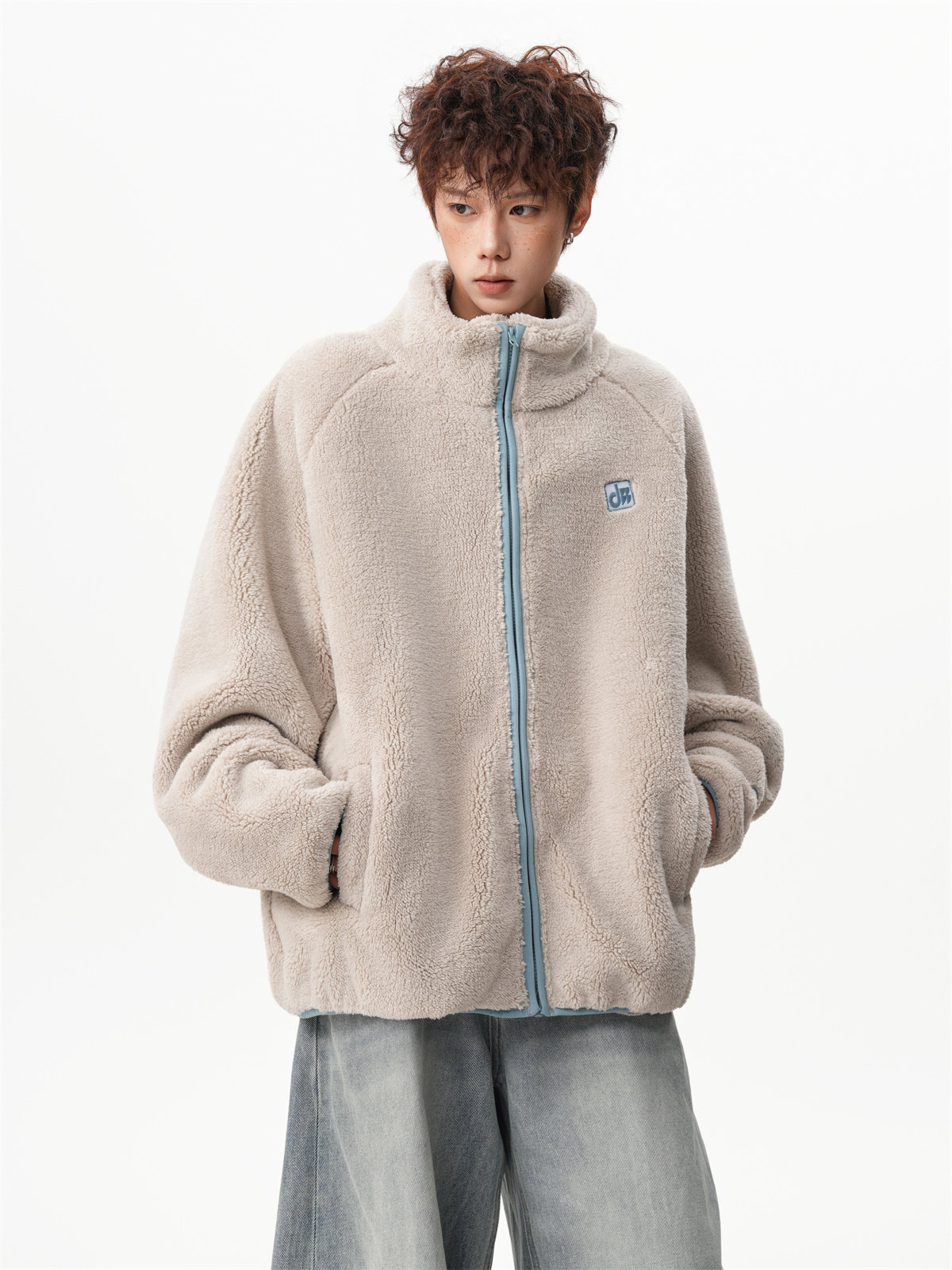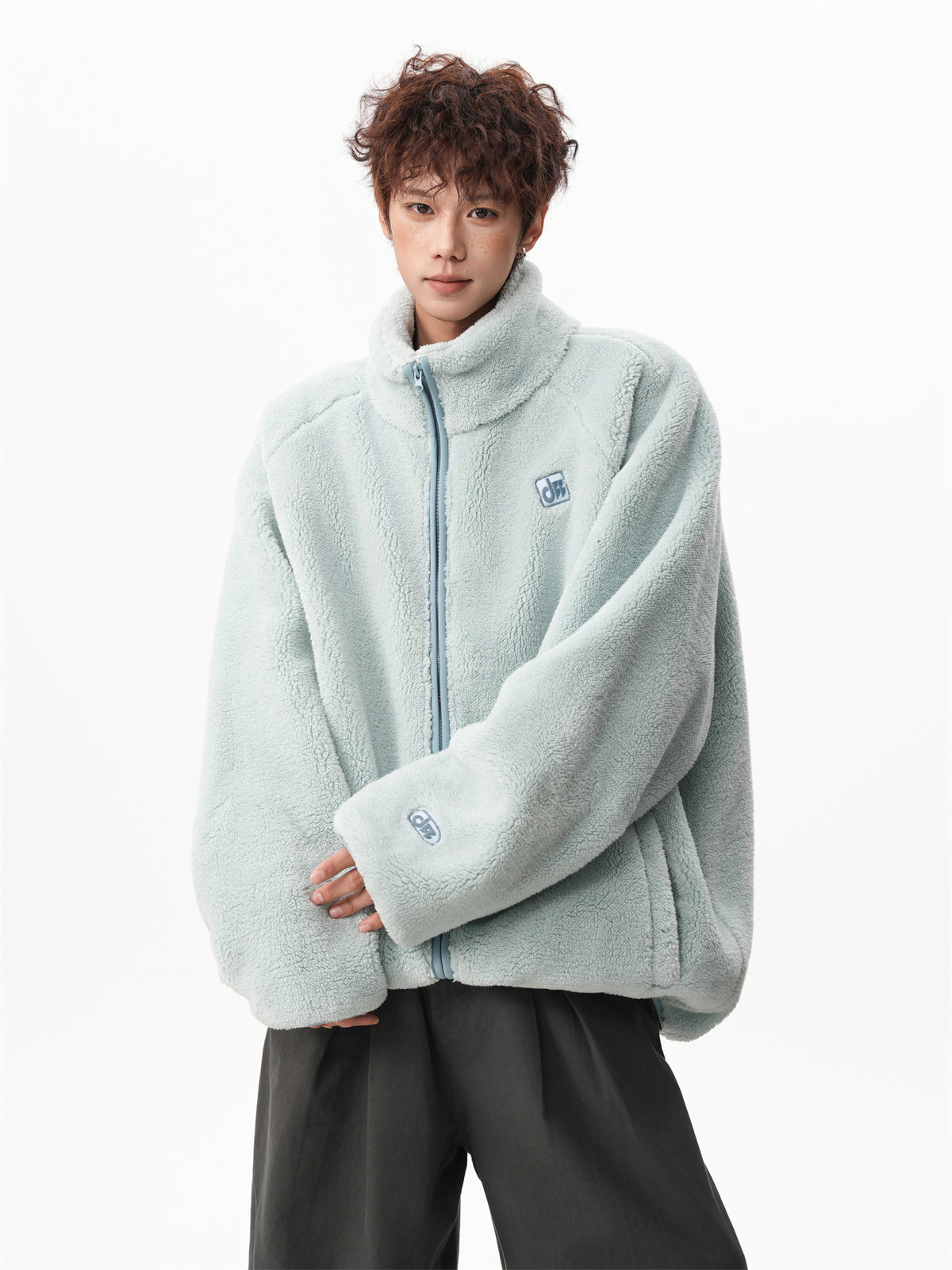 American-Style Couple's Fleece Stand-Up Collar Cotton Jacket for Men and Women, Winter Loose Soft Plush Jacket, Thickened Warm Plush Coat