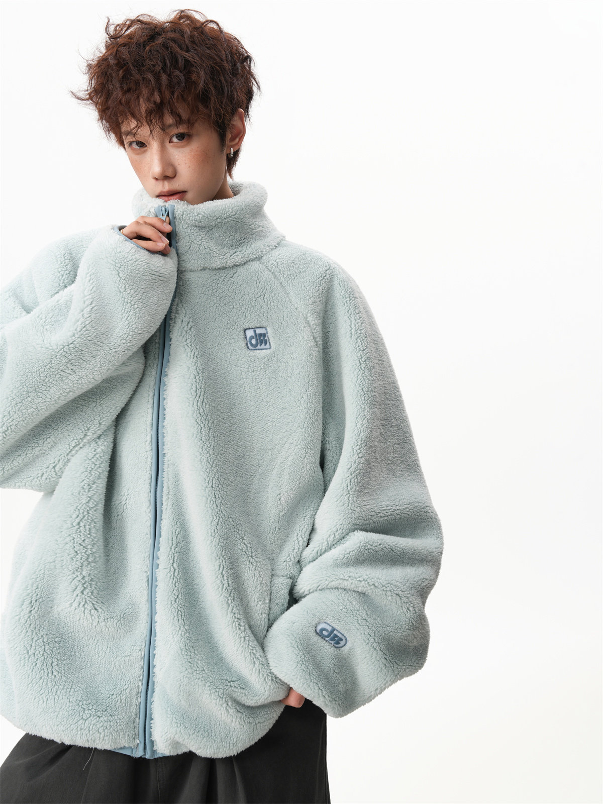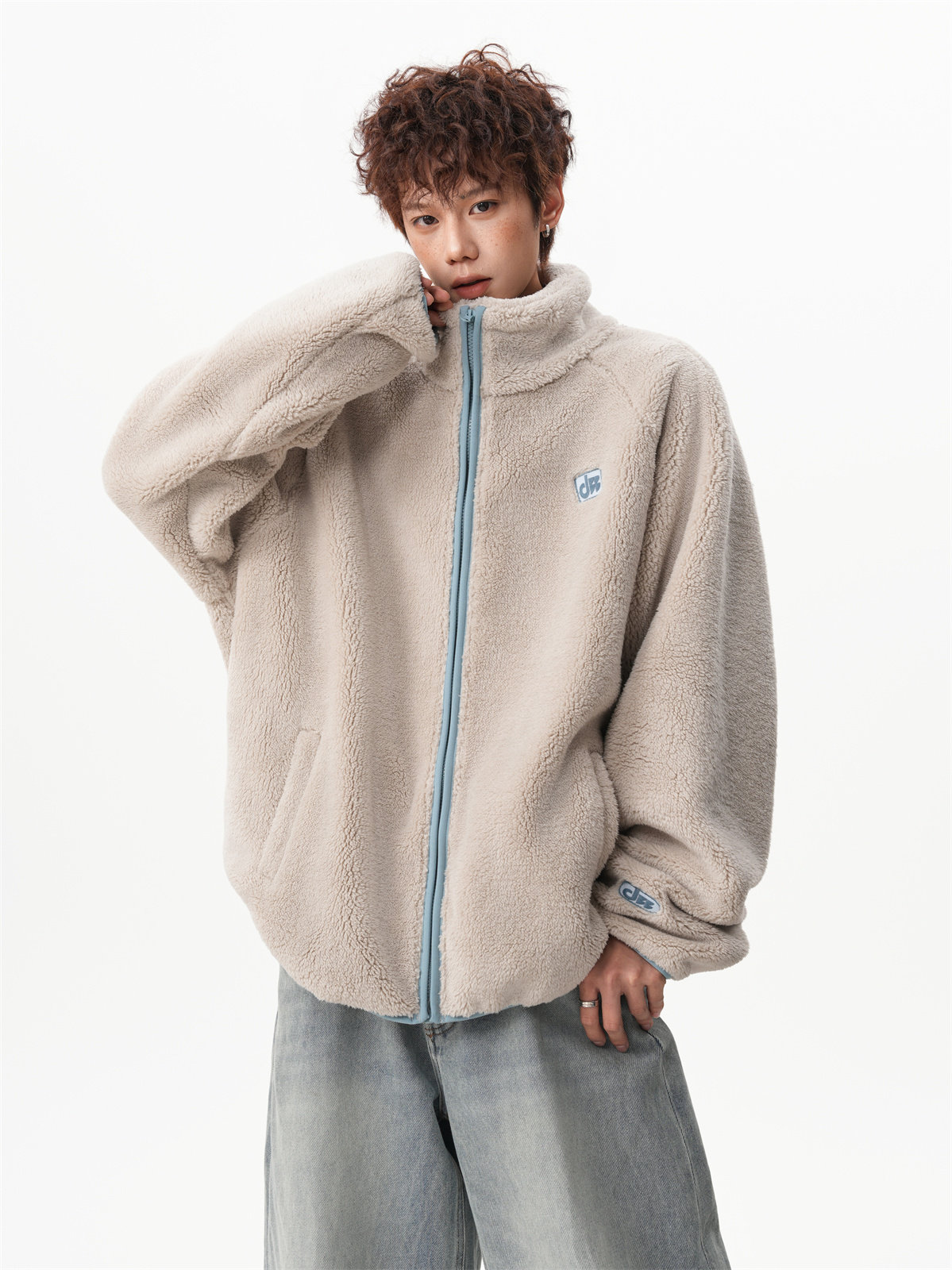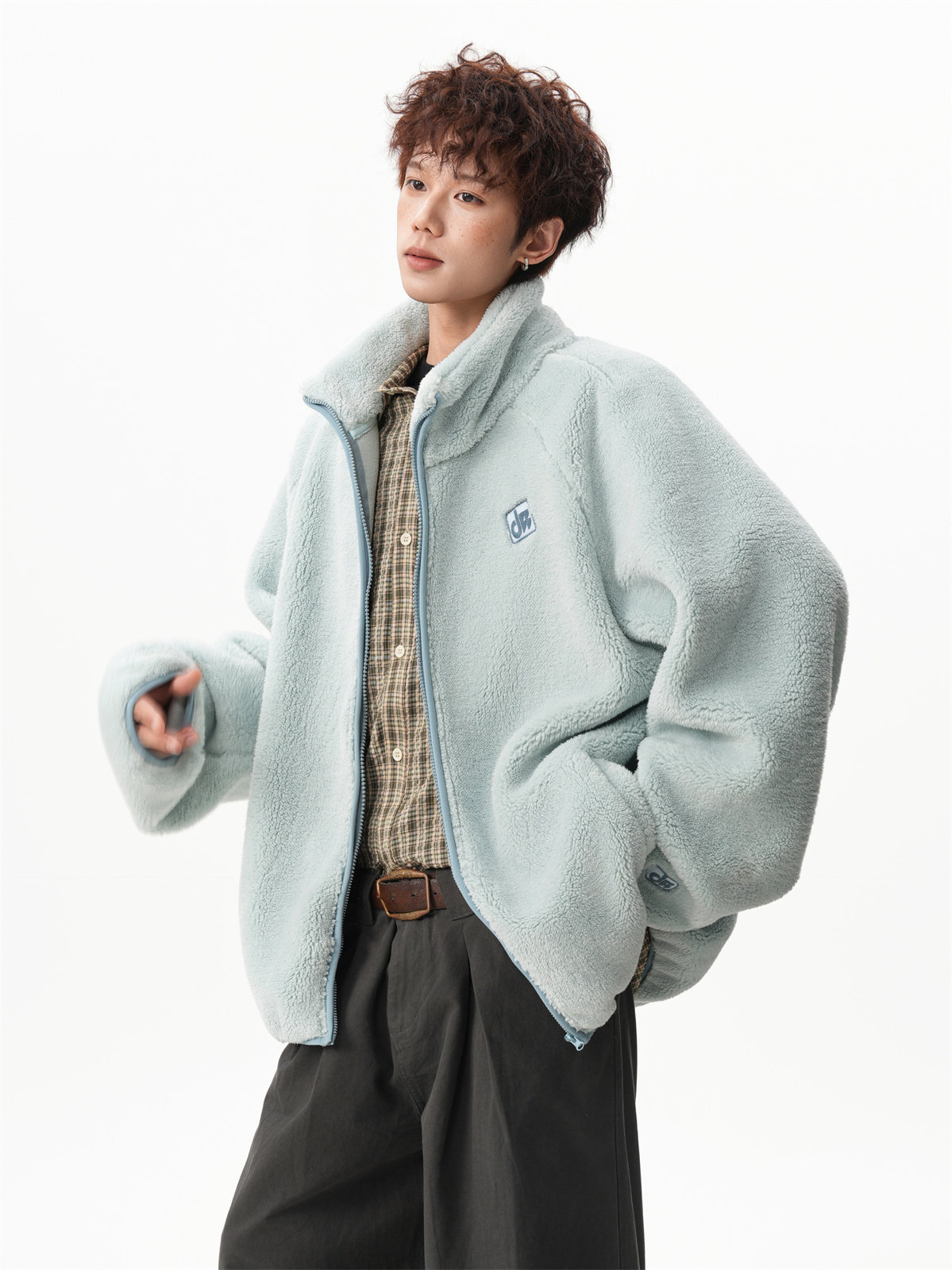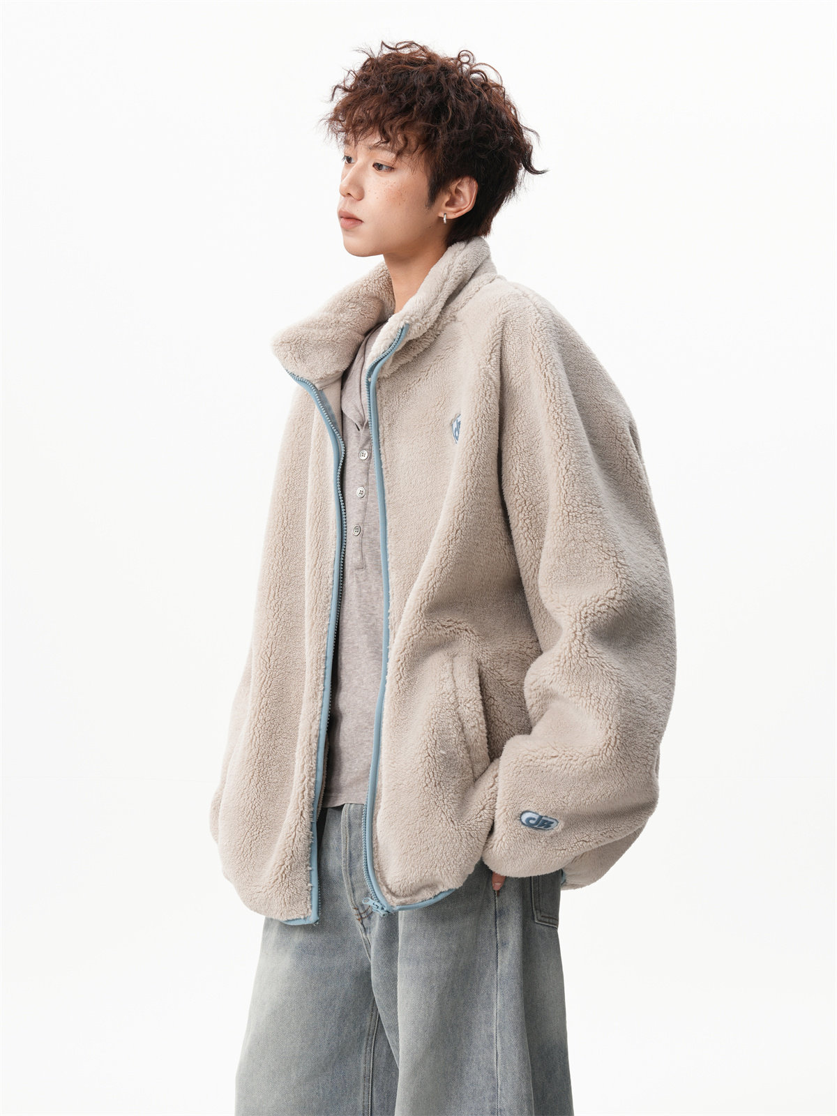 American-Style Couple's Fleece Stand-Up Collar Cotton Jacket for Men and Women, Winter Loose Soft Plush Jacket, Thickened Warm Plush Coat