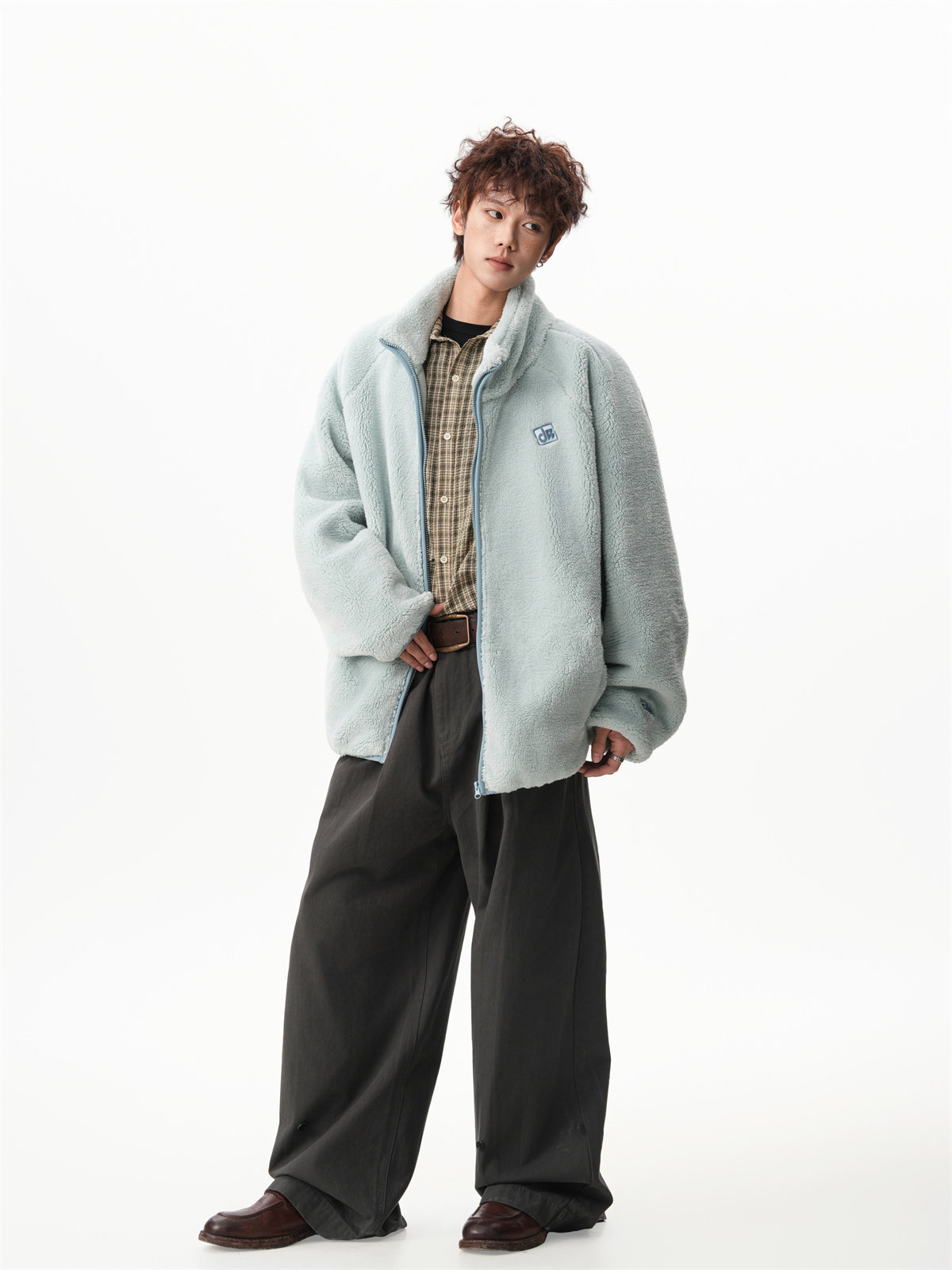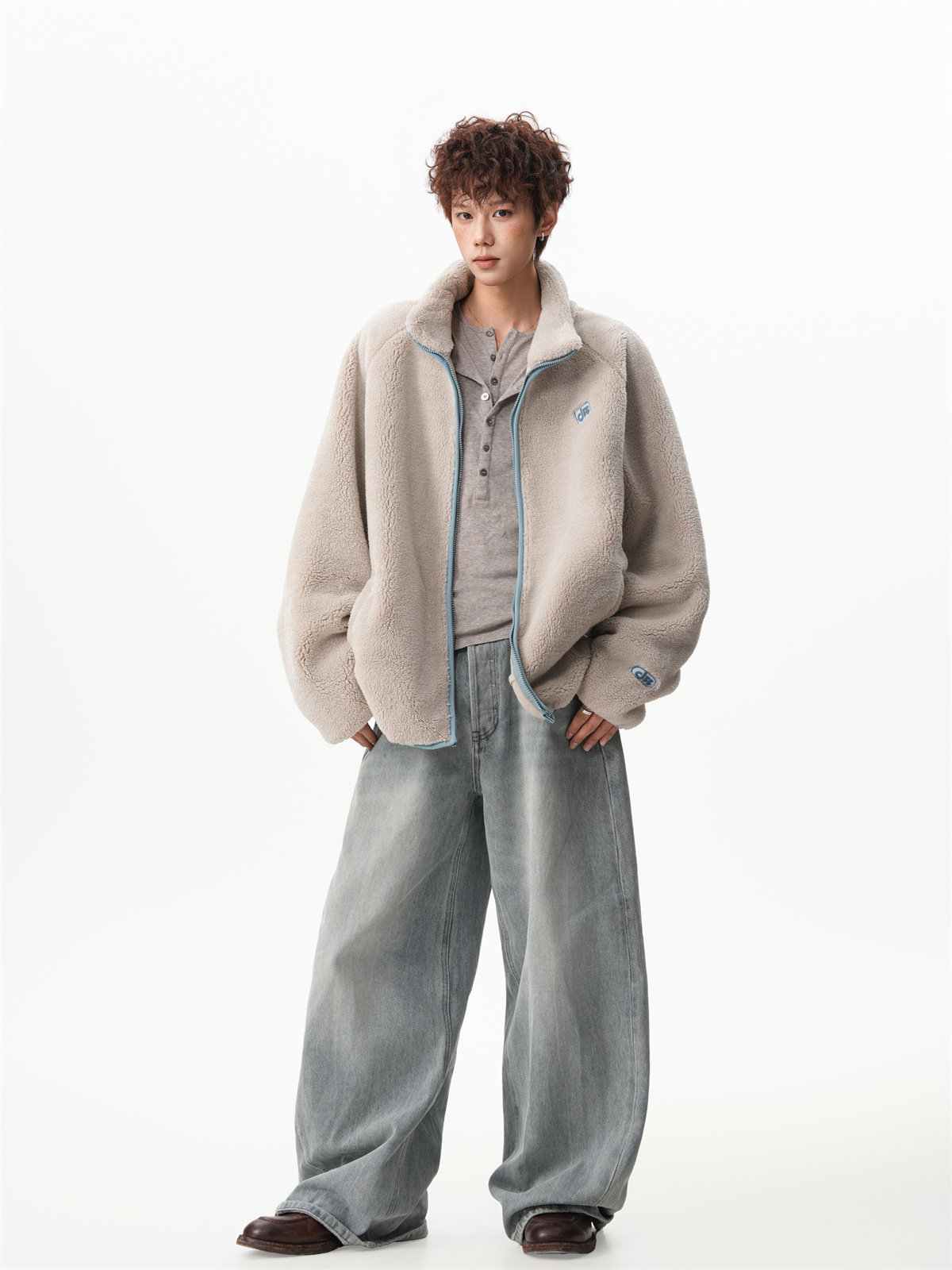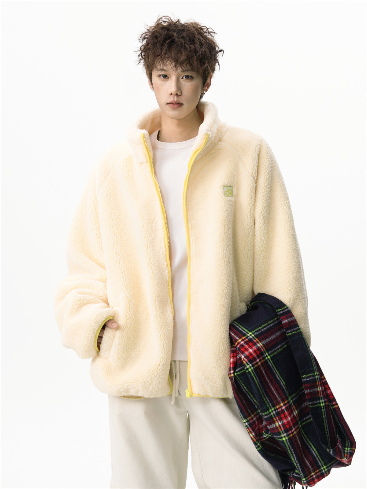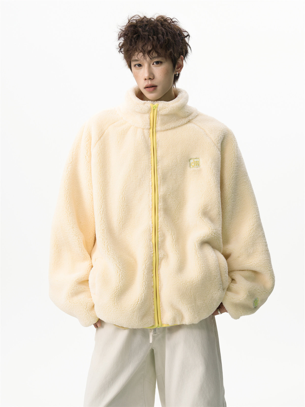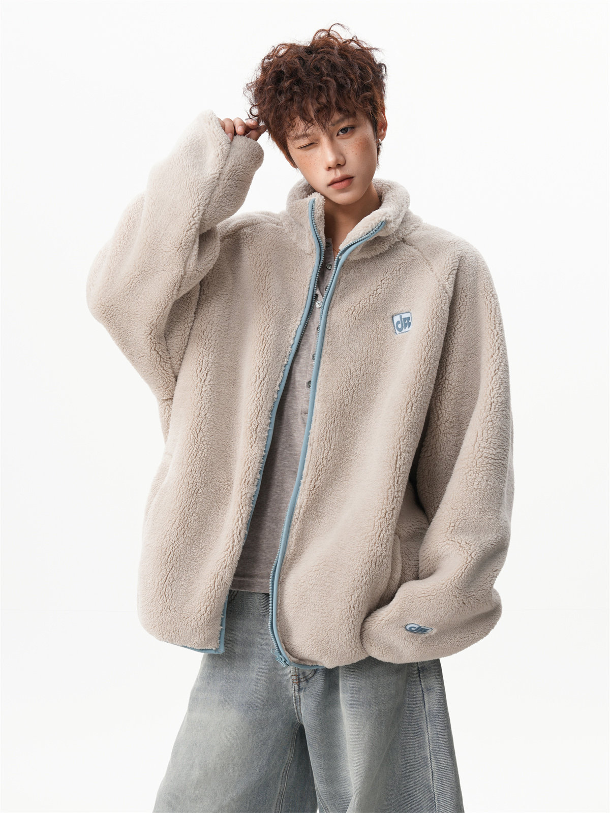 American-Style Couple's Fleece Stand-Up Collar Cotton Jacket for Men and Women, Winter Loose Soft Plush Jacket, Thickened Warm Plush Coat