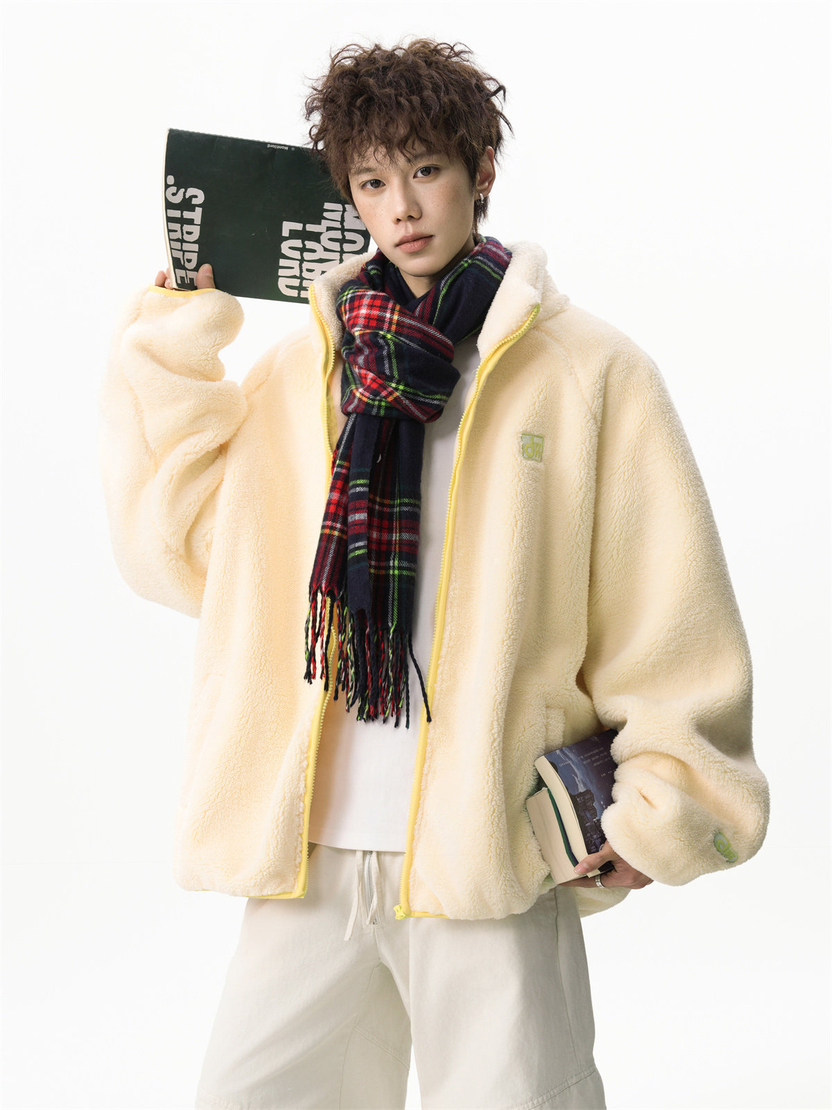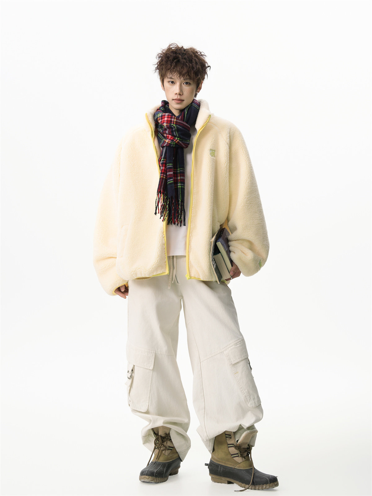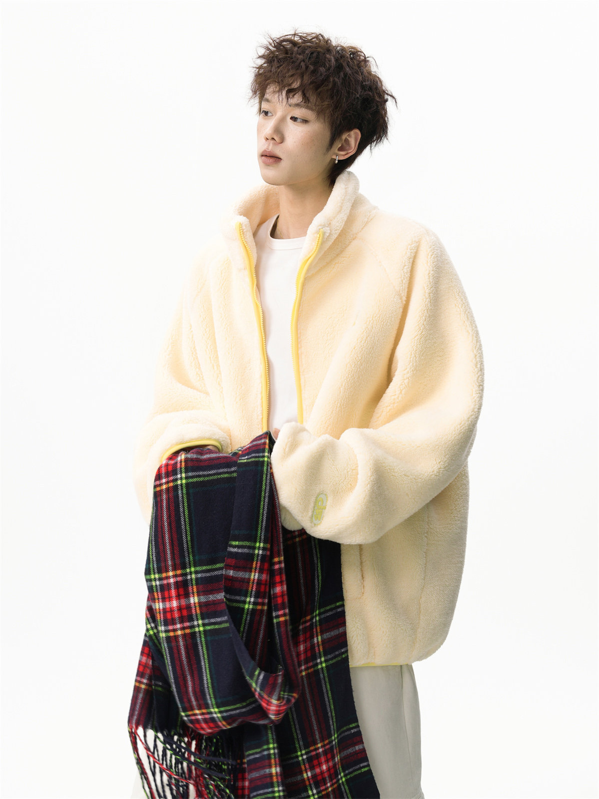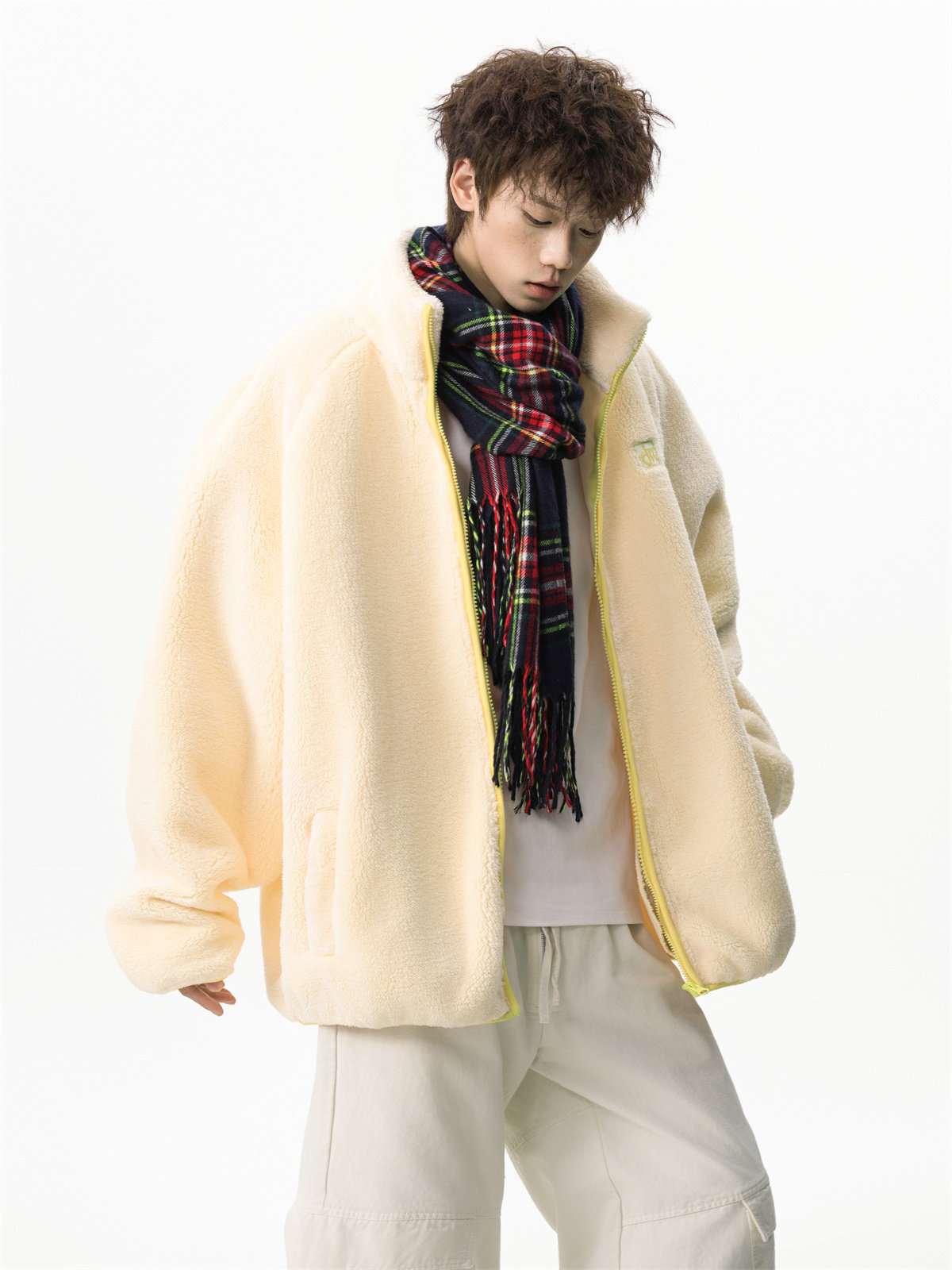American-Style Couple's Fleece Stand-Up Collar Cotton Jacket for Men and Women, Winter Loose Soft Plush Jacket, Thickened Warm Plush Coat