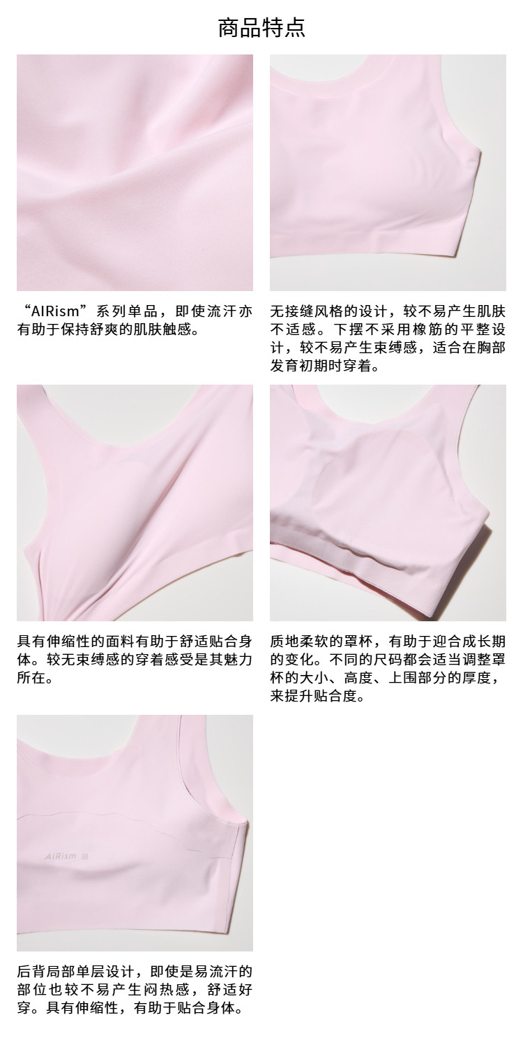 Uniqlo Children's Clothing Girls' Airism Vest-Style Bra for Girls, Anti-Bump Bra 482006