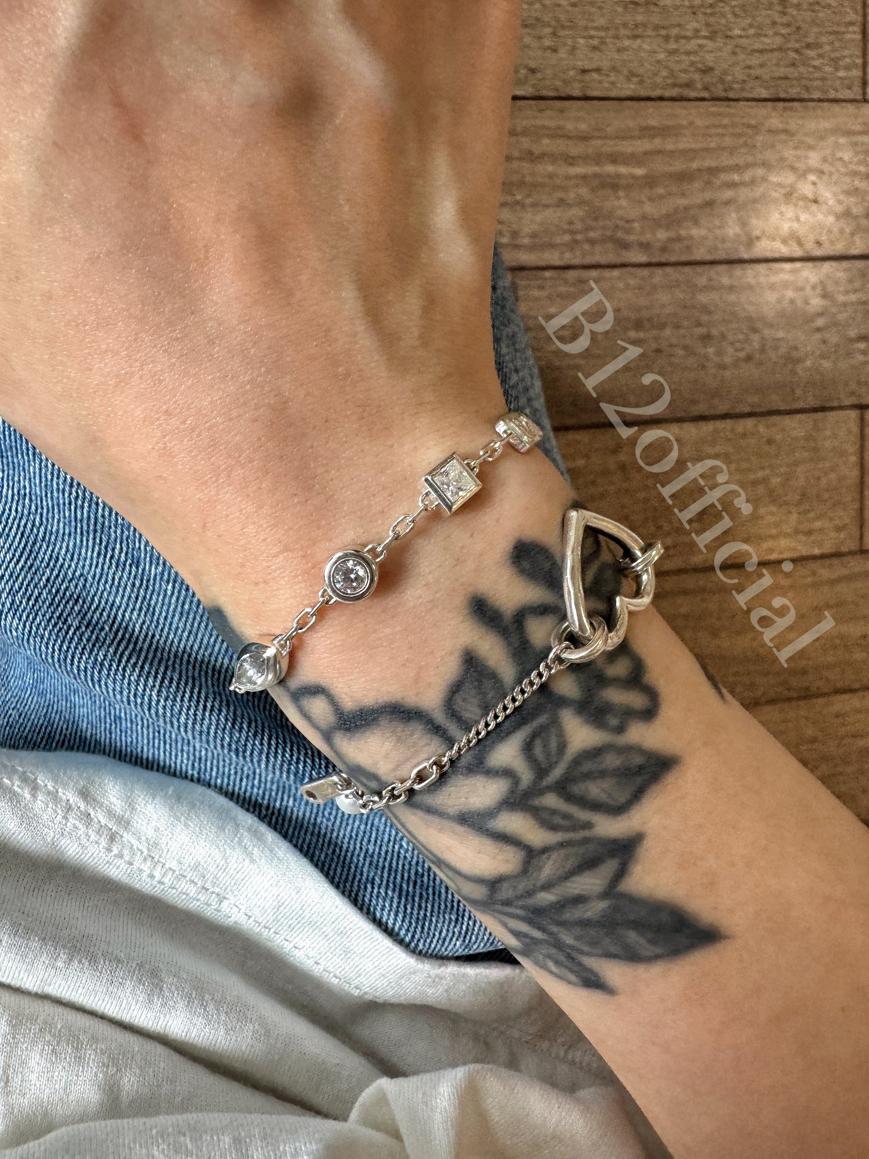 B12 Official|Calm and Serene Irregular Shaped Diamond Bracelet Handmade with Micro-Inlay 925 Silver Platinum Plated