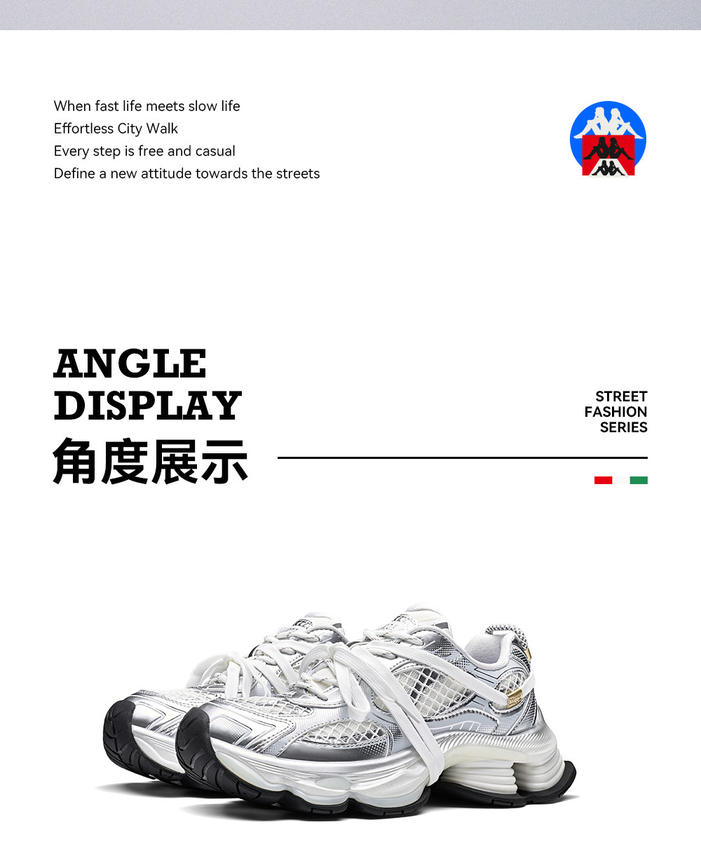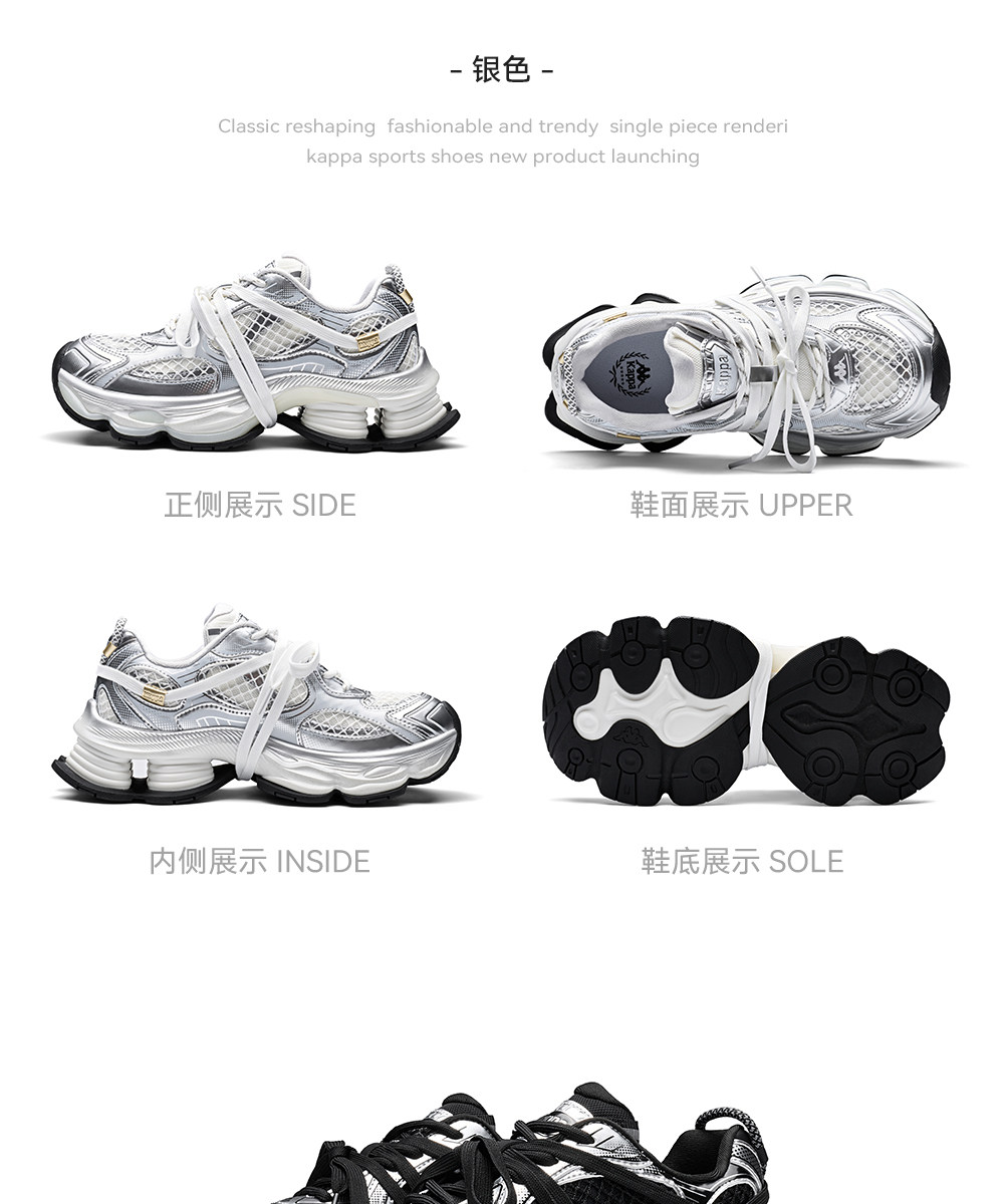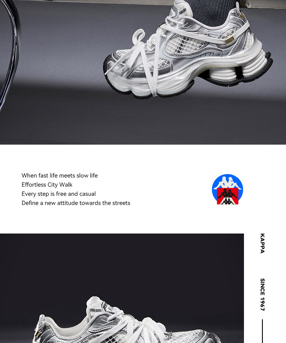 Kappa Spring Women's Shoes 2026 New Models, Very Stylish Dad Shoes, Versatile Thick-Soled Shoes, Women's Silver Sneakers