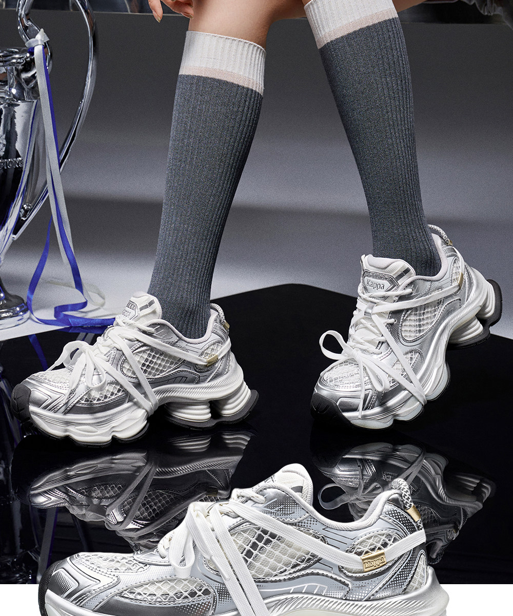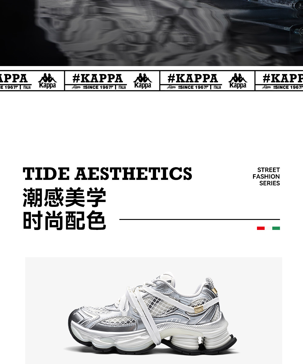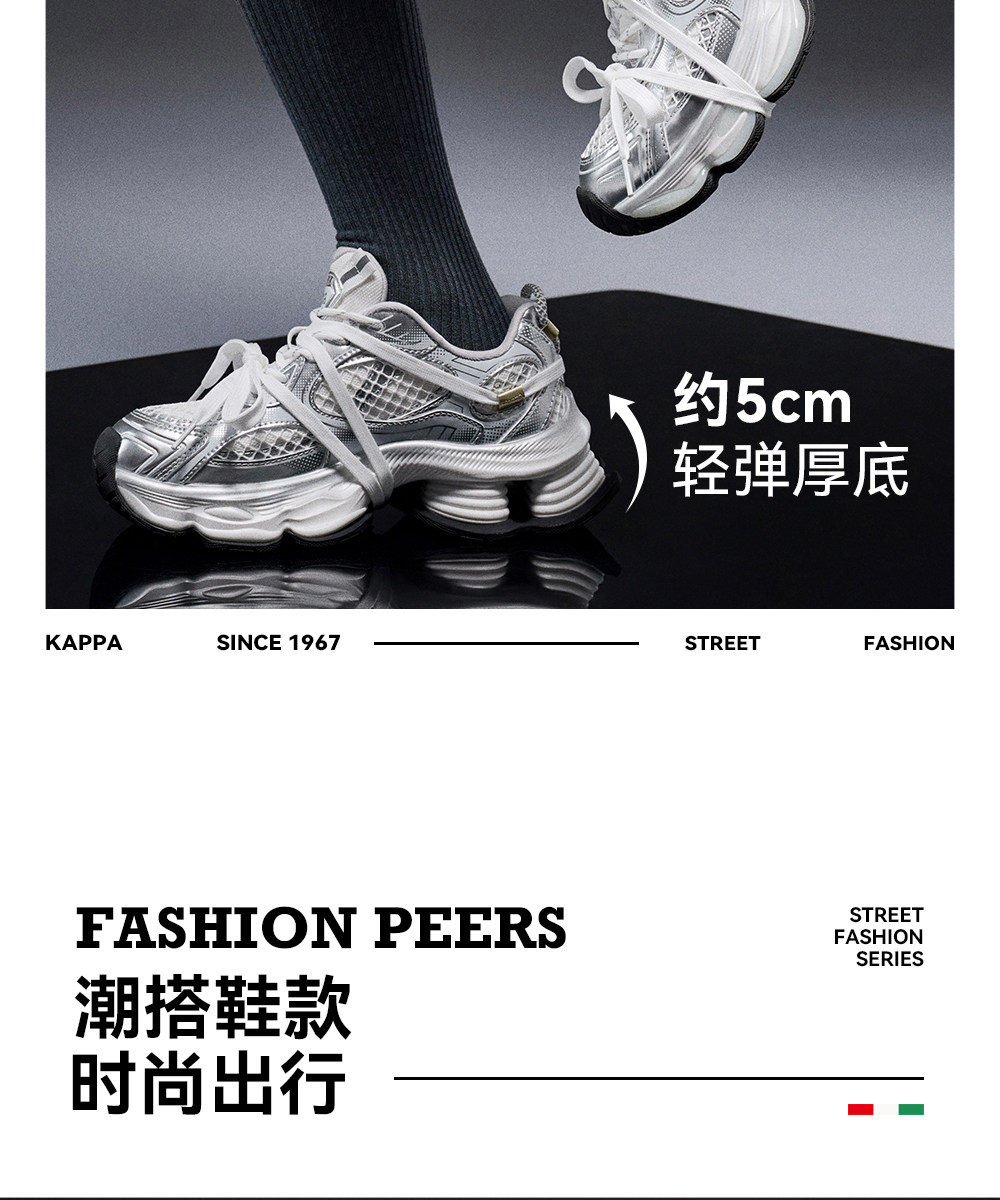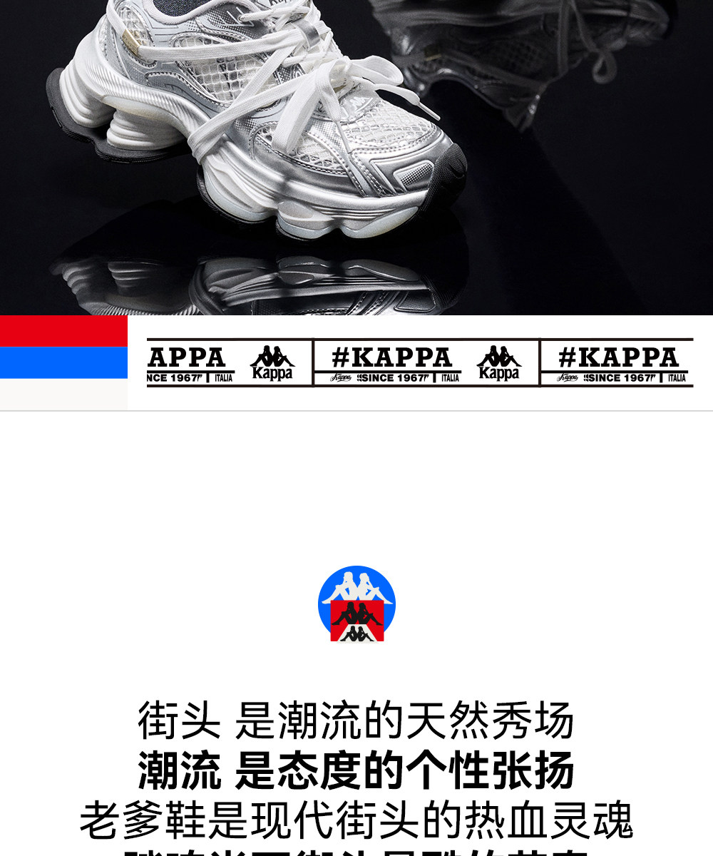 Kappa Spring Women's Shoes 2026 New Models, Very Stylish Dad Shoes, Versatile Thick-Soled Shoes, Women's Silver Sneakers