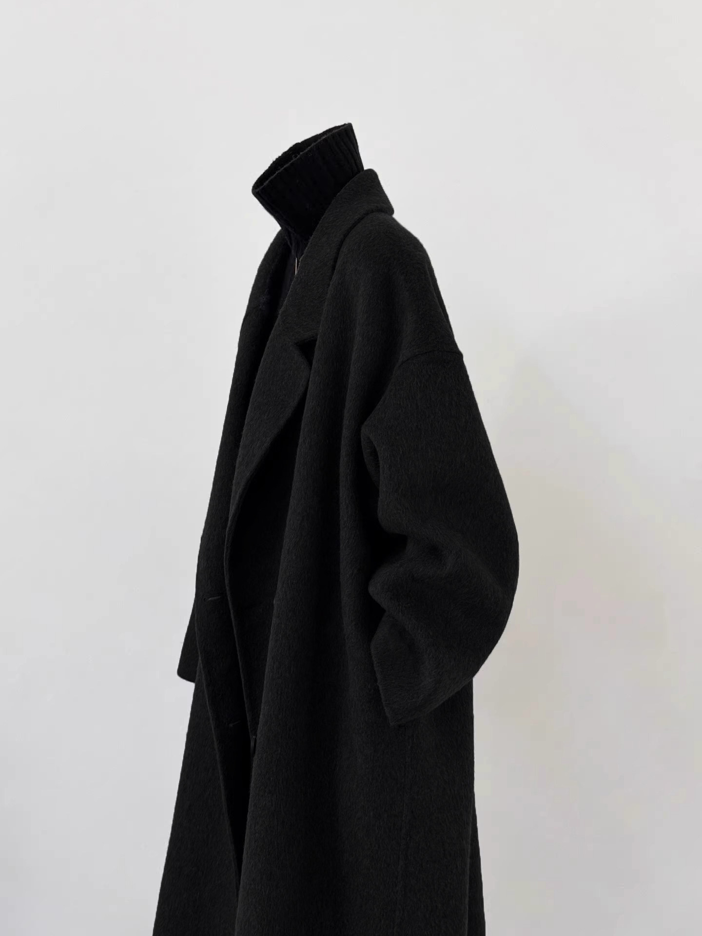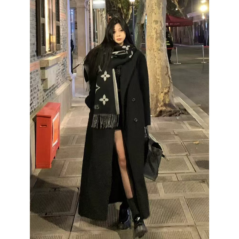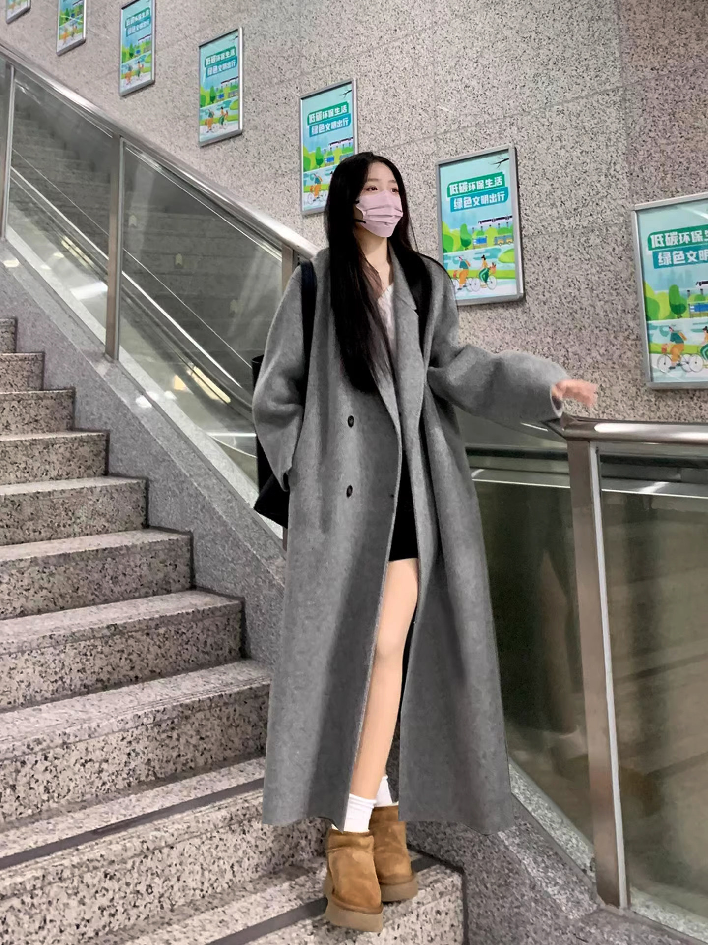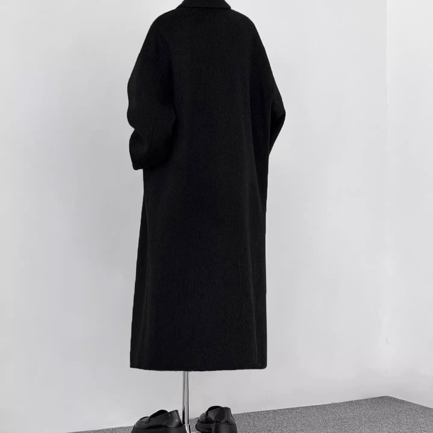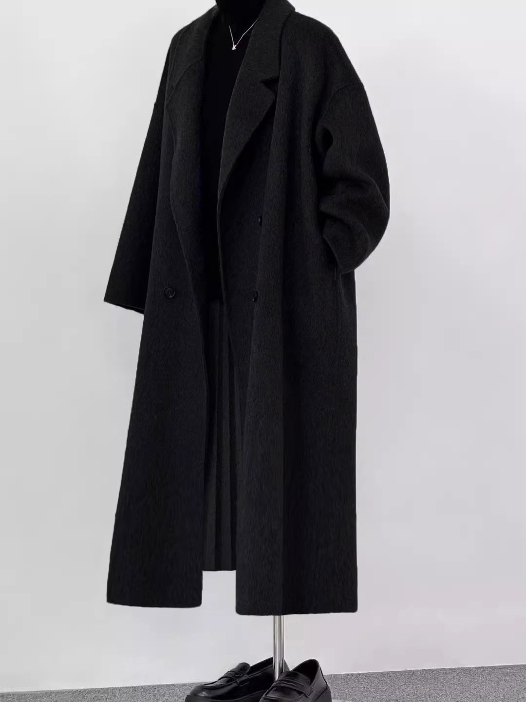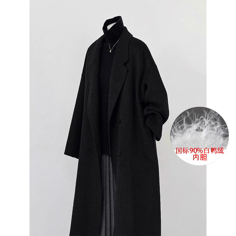 Tall Women's Black Double-Sided Wool Coat, Extended Version, 2025 Winter down Jacket with Thickened Wool Lining