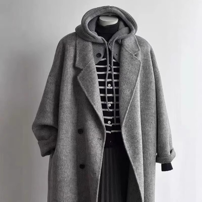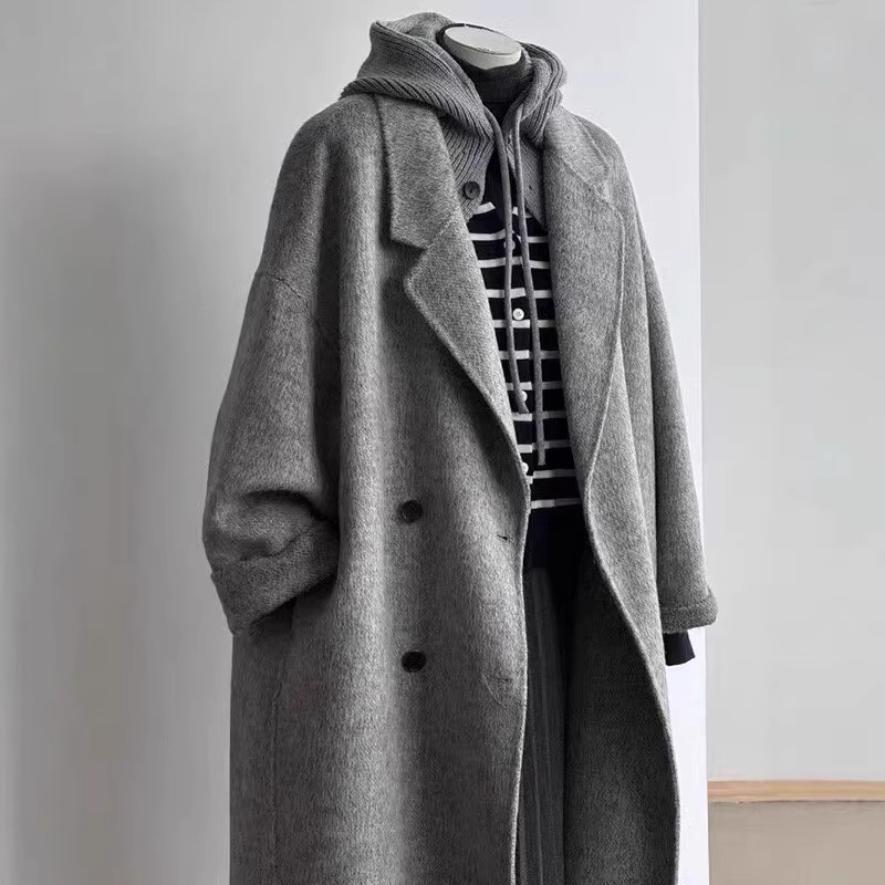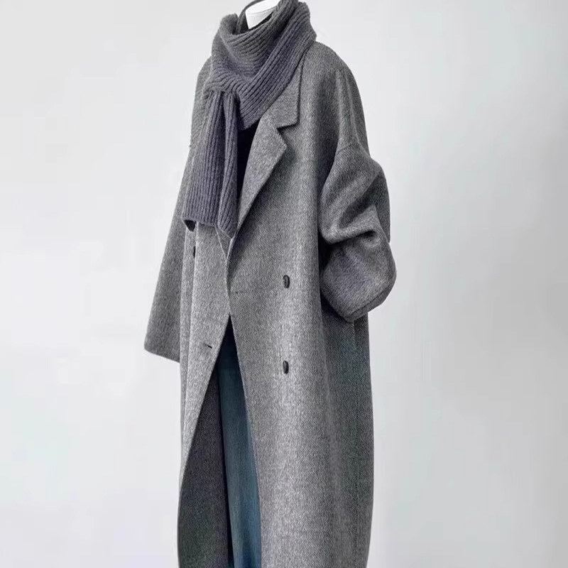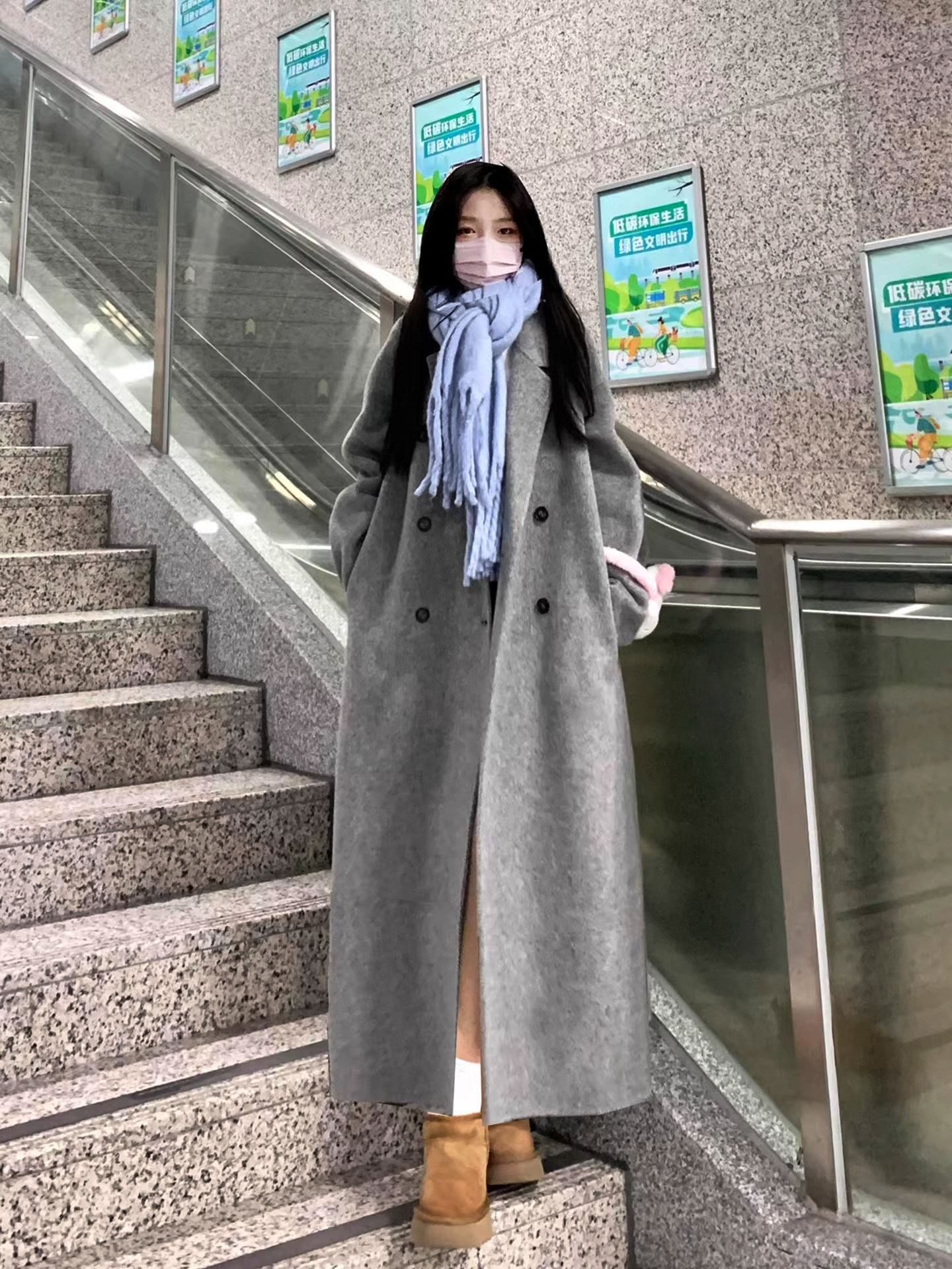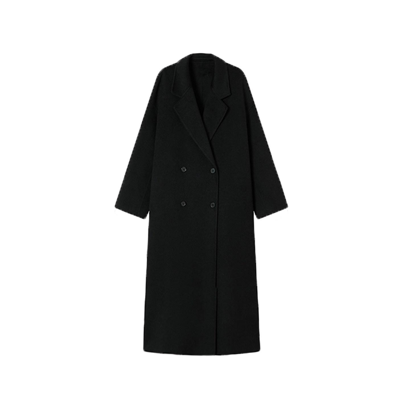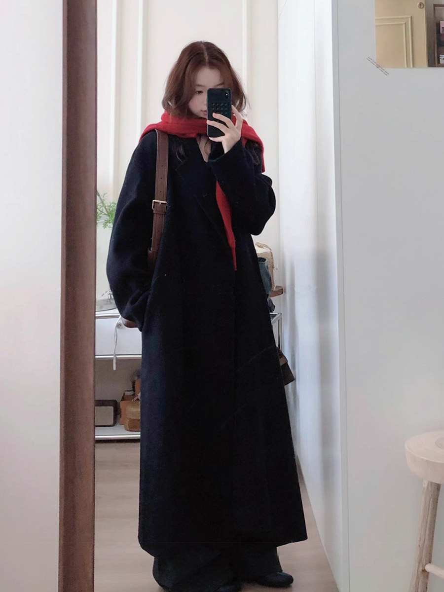 Tall Women's Black Double-Sided Wool Coat, Extended Version, 2025 Winter down Jacket with Thickened Wool Lining