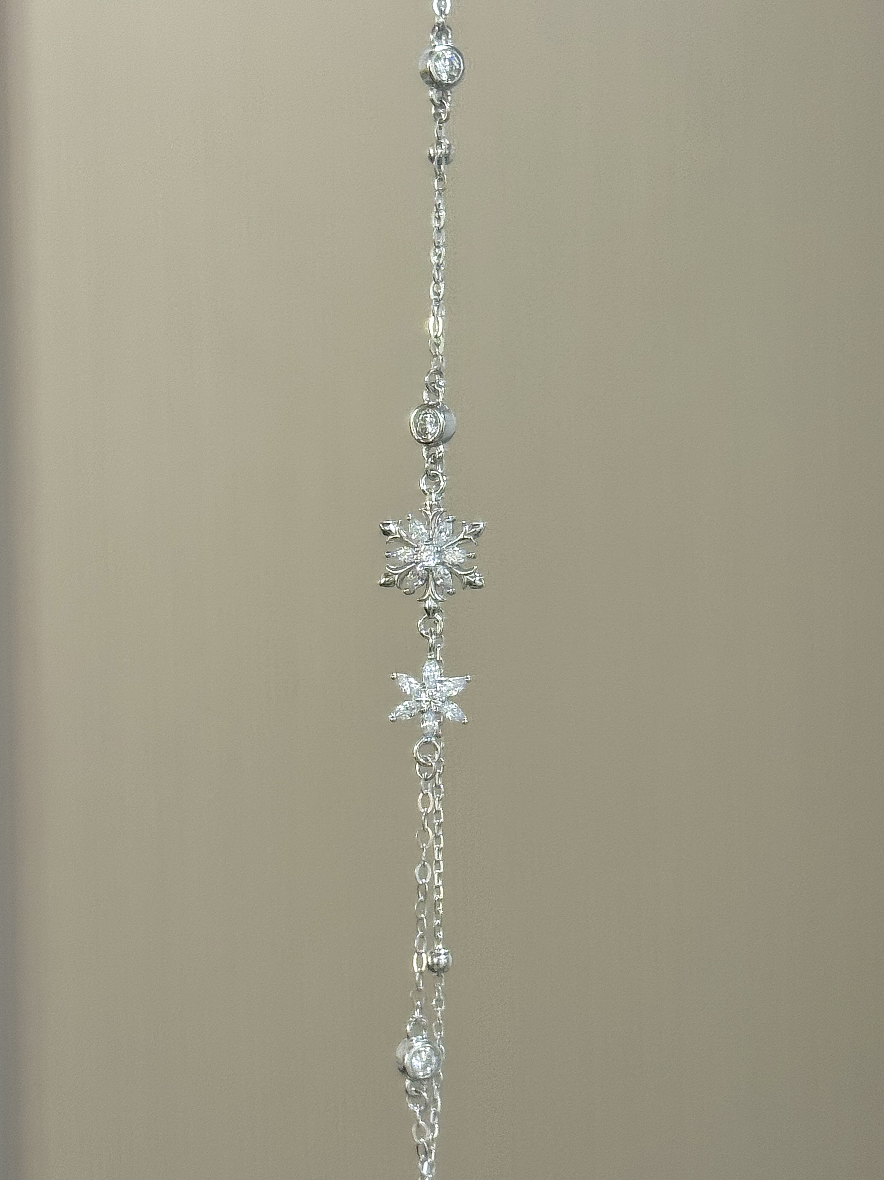 Lolawhite'Snow Mirror' Dreamy Snowflake S925 Sterling Silver Double-Layer Bracelet Light Luxury Niche Gift for Best Friend High-End