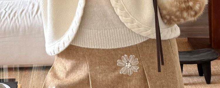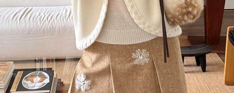 French Retro Style Floral Embroidered Skirt 2025 Winter New High-Waisted Slimming A-Line Mid-Length Skirt Khaki