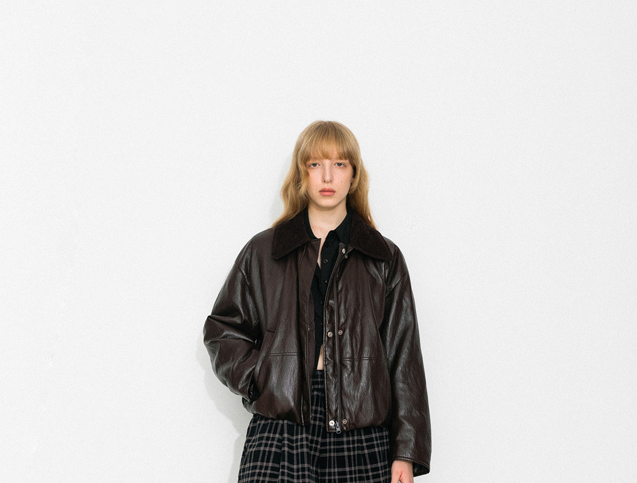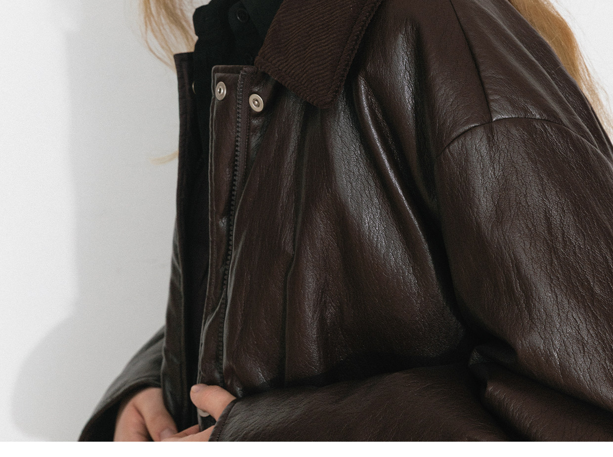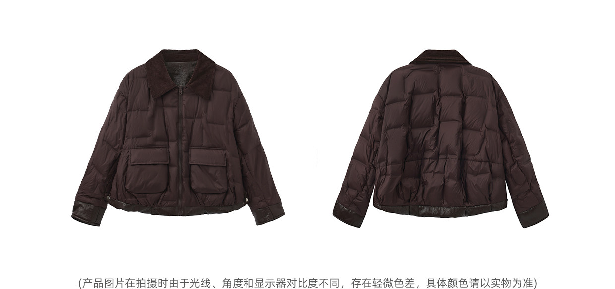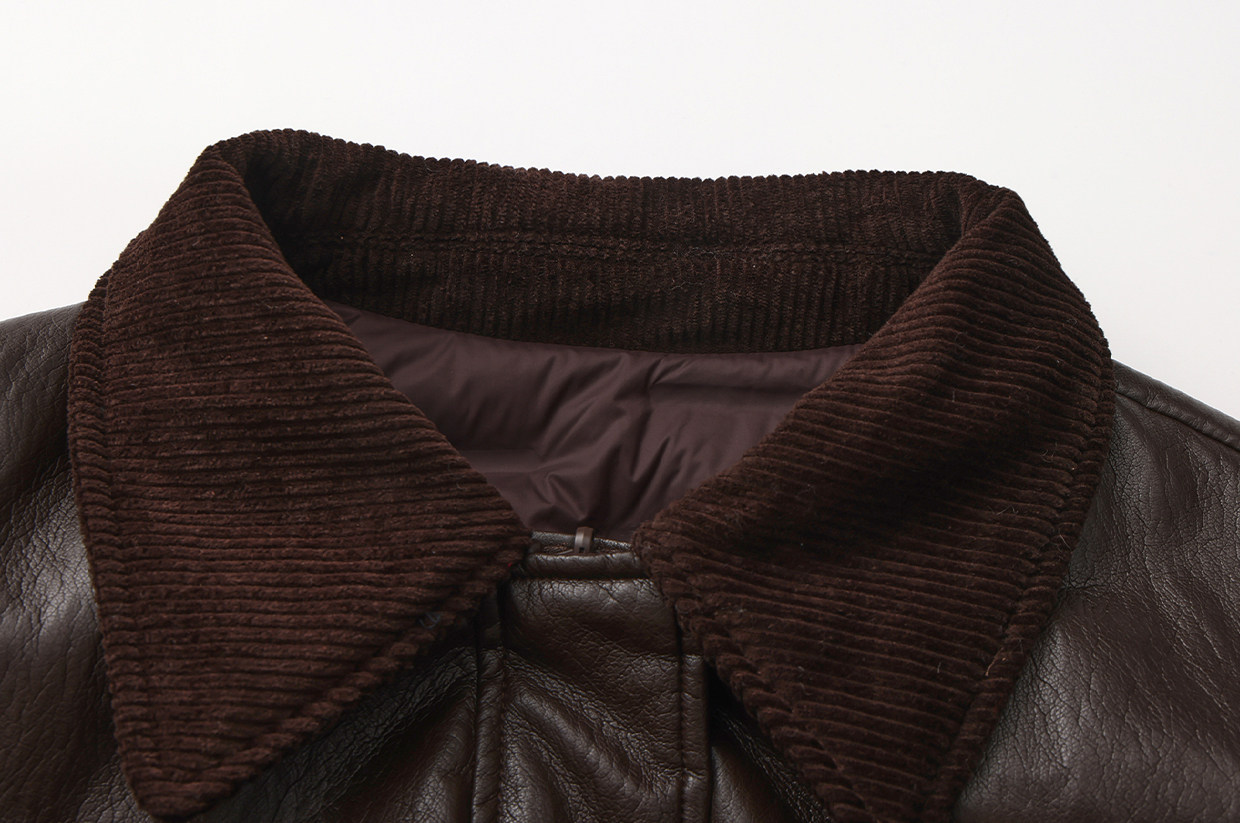 Cubic Retro High-End Dark Brown Short Jacket Corduroy Lapel Reversible Leather Jacket down Jacket