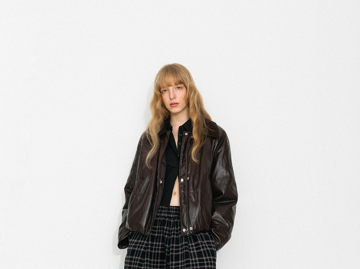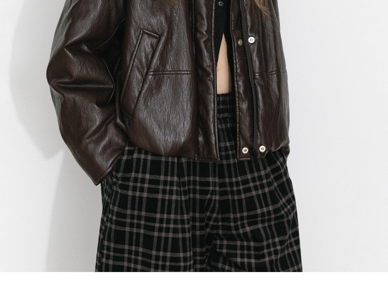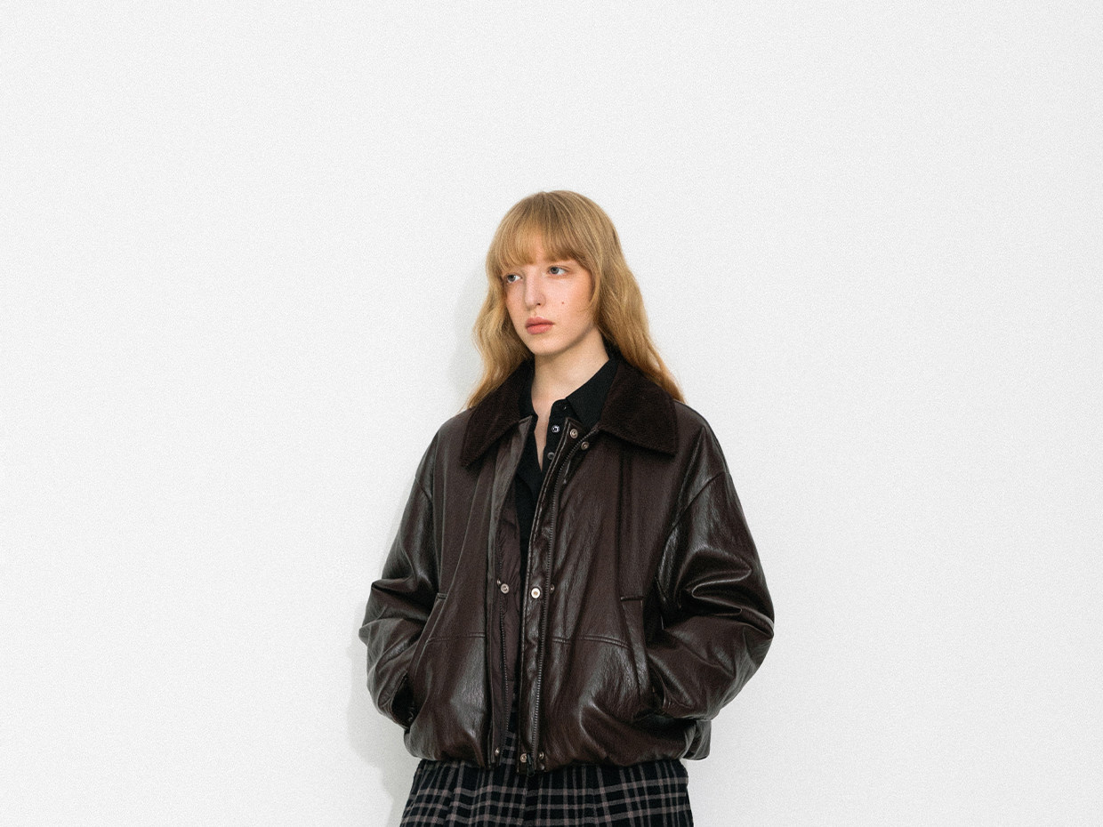 Cubic Retro High-End Dark Brown Short Jacket Corduroy Lapel Reversible Leather Jacket down Jacket