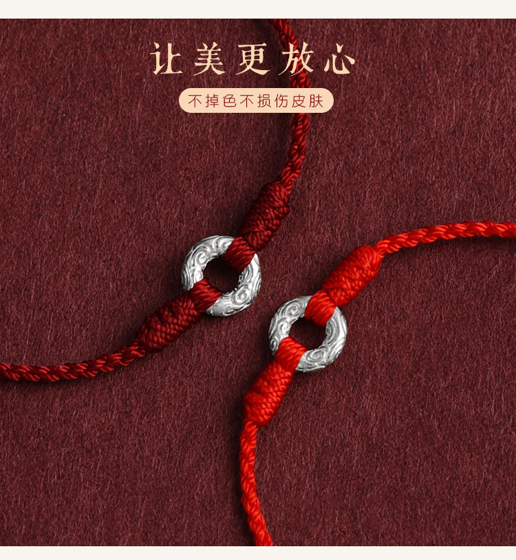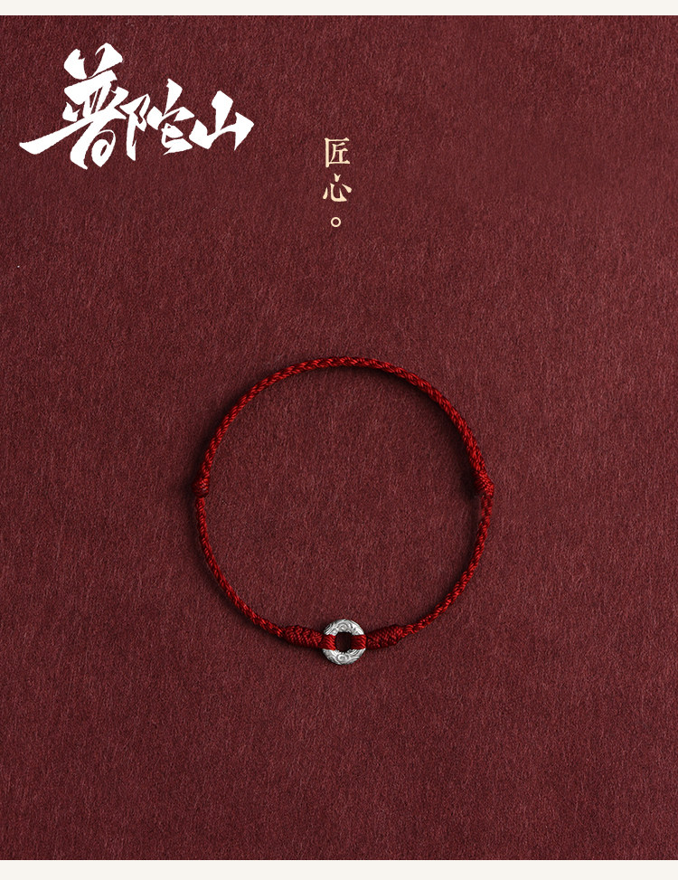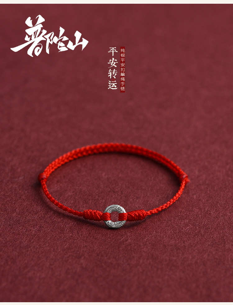 Putuo Mountain Pure Silver Small Perfect Peace Buckle Good Luck Red String Bracelet for Women, Gift Bracelet, New Style for Men