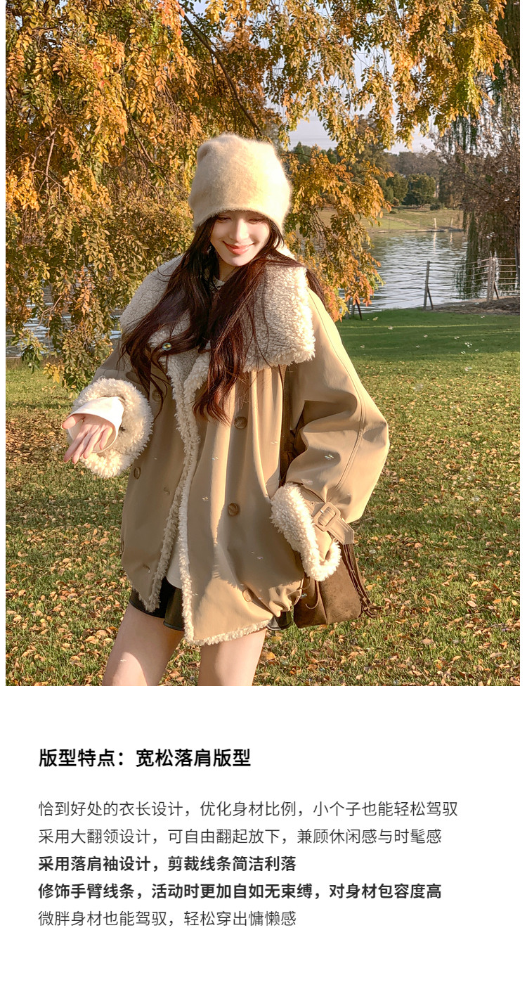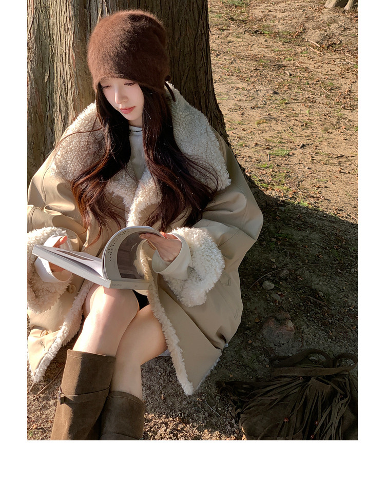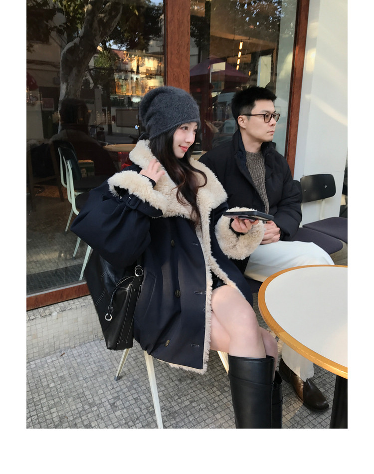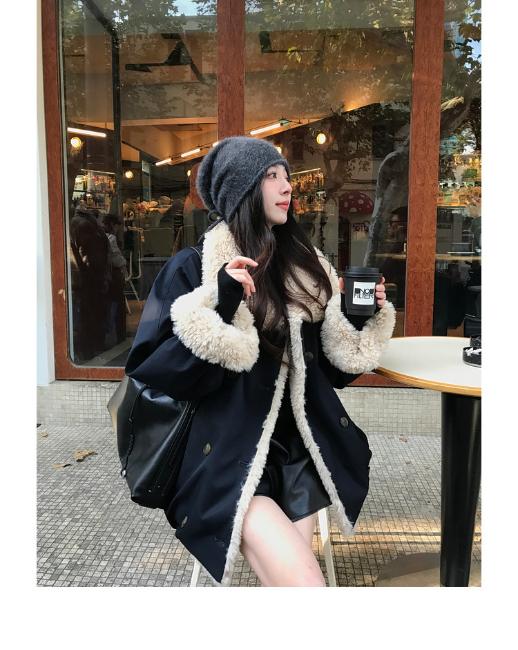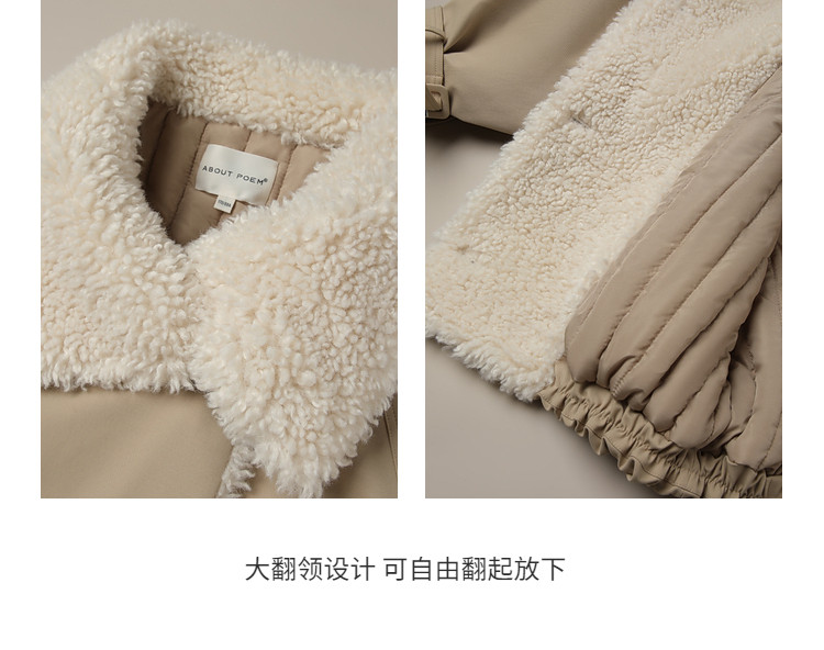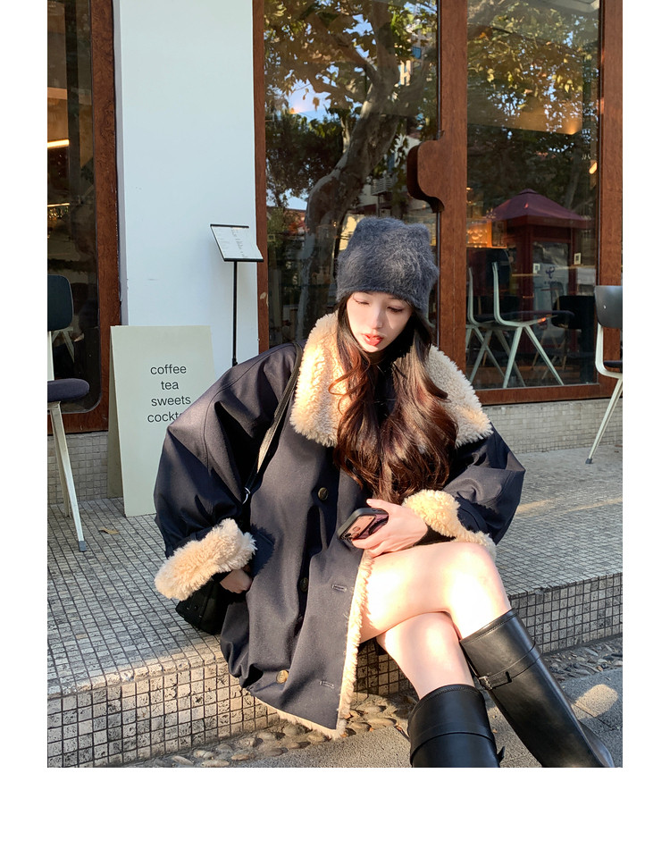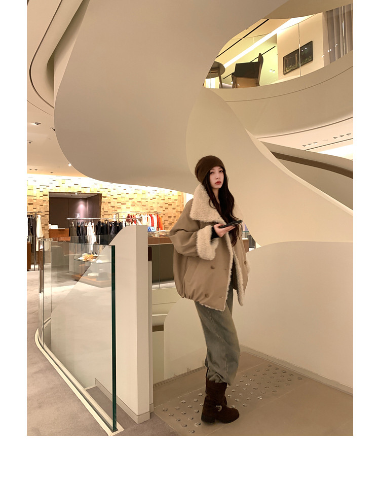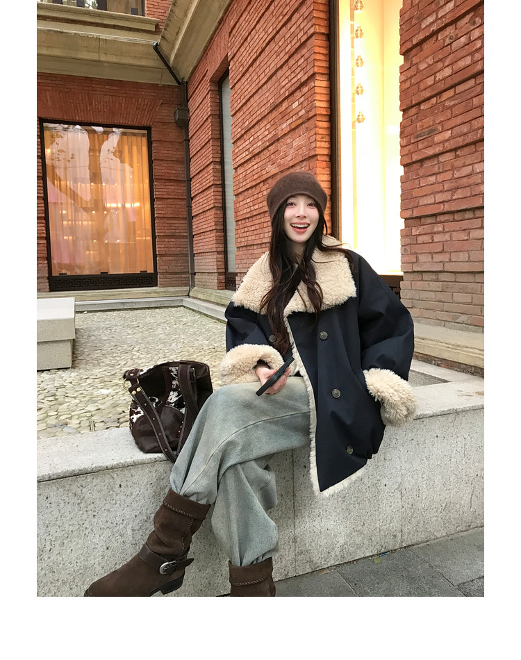 Xia Shiwen Patchwork Eco-Friendly Faux Shearling Quilted Cotton Parka Women's Winter Large Lapel Loose Drop Shoulder Workwear Jacket