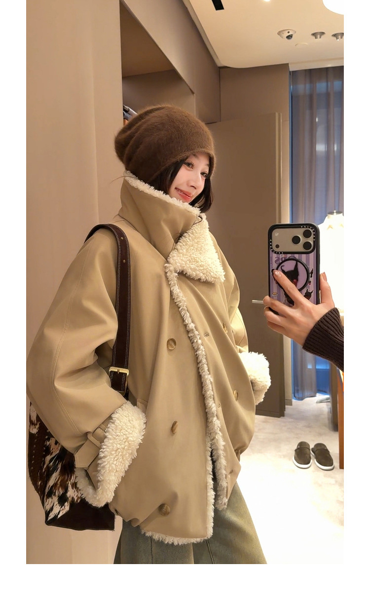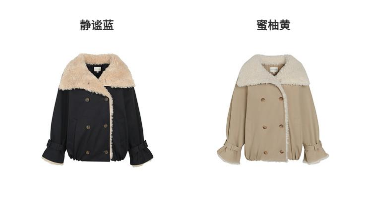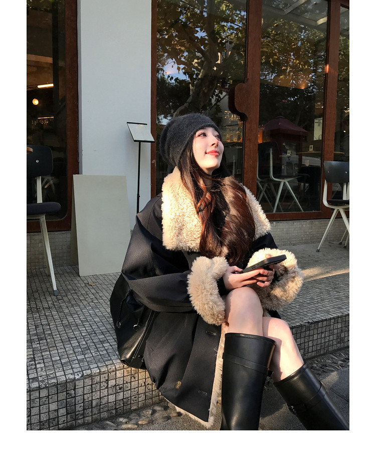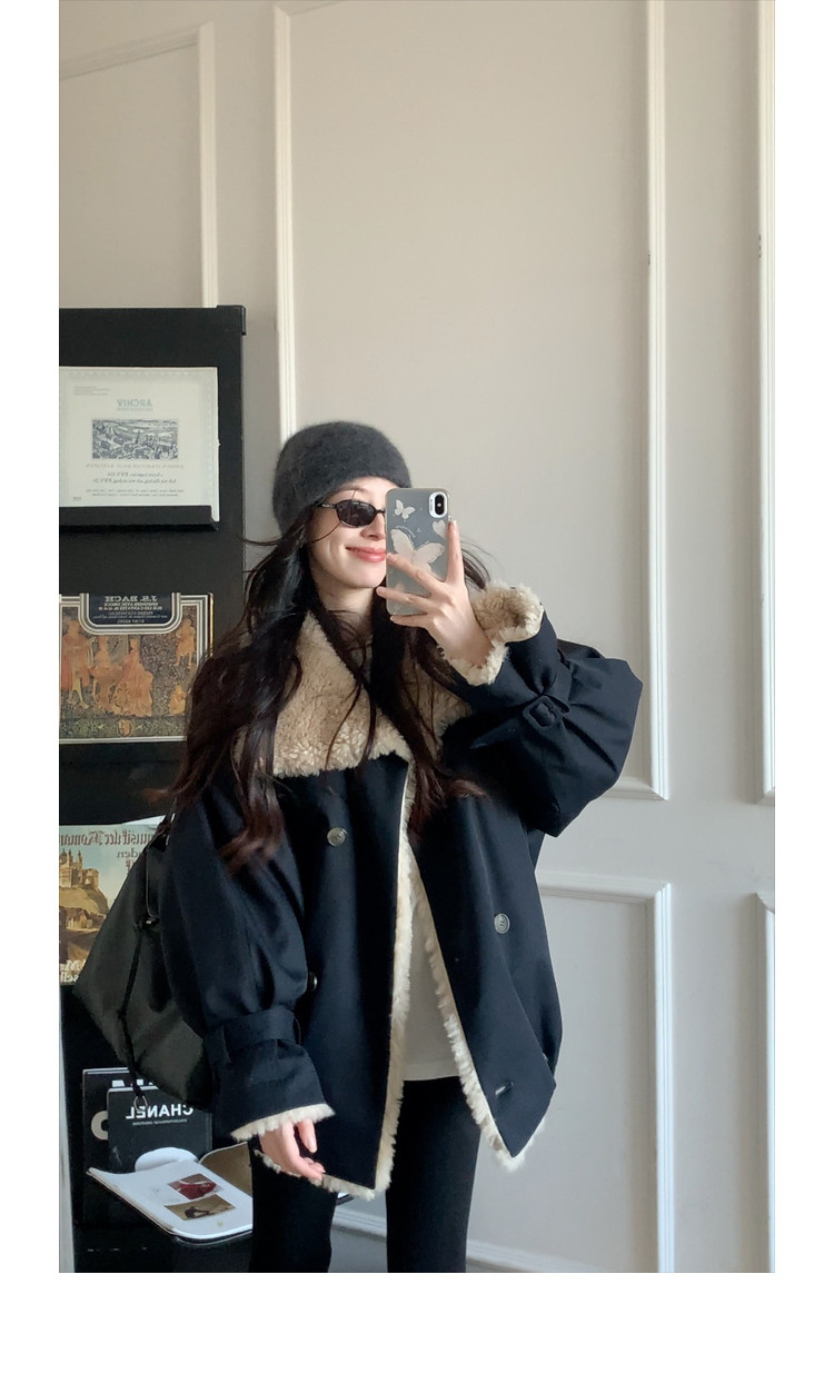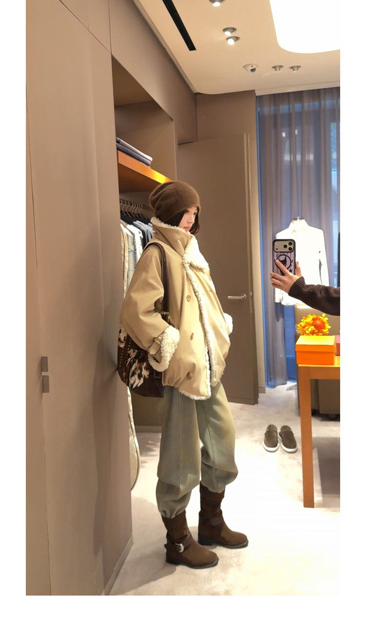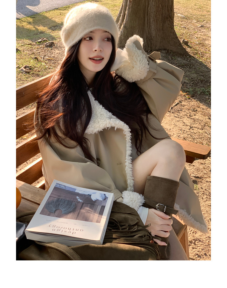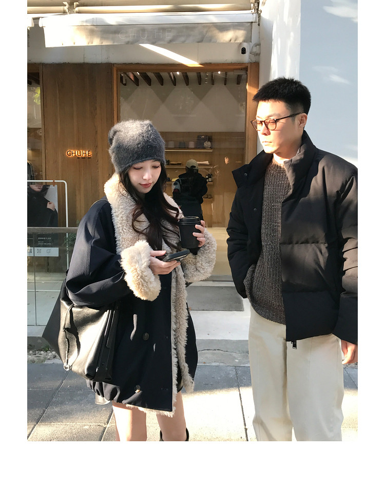 Xia Shiwen Patchwork Eco-Friendly Faux Shearling Quilted Cotton Parka Women's Winter Large Lapel Loose Drop Shoulder Workwear Jacket