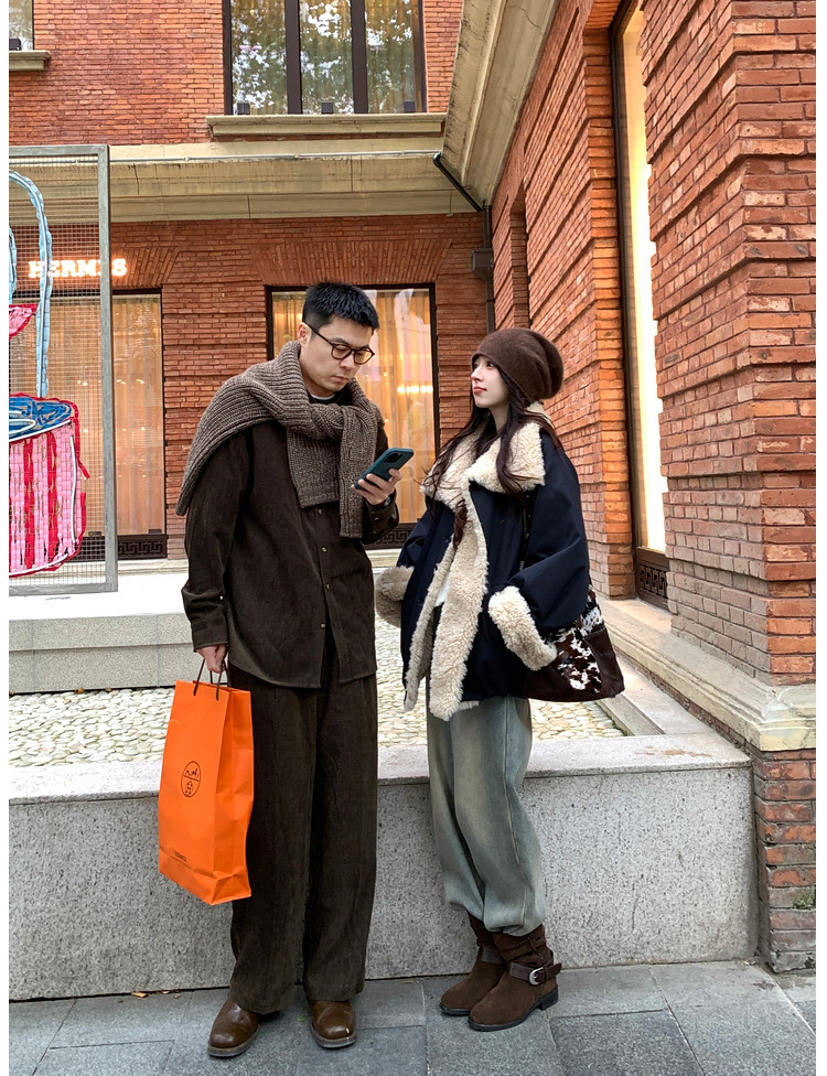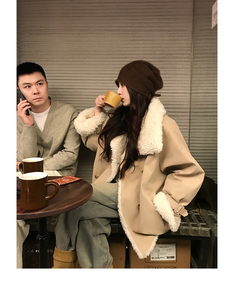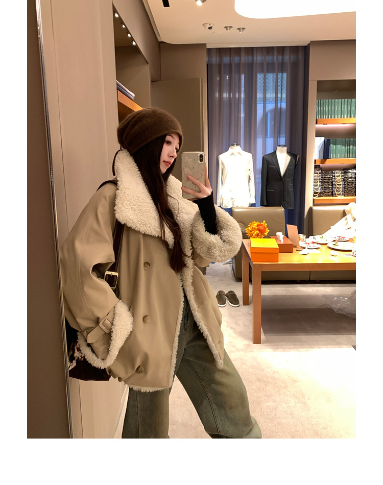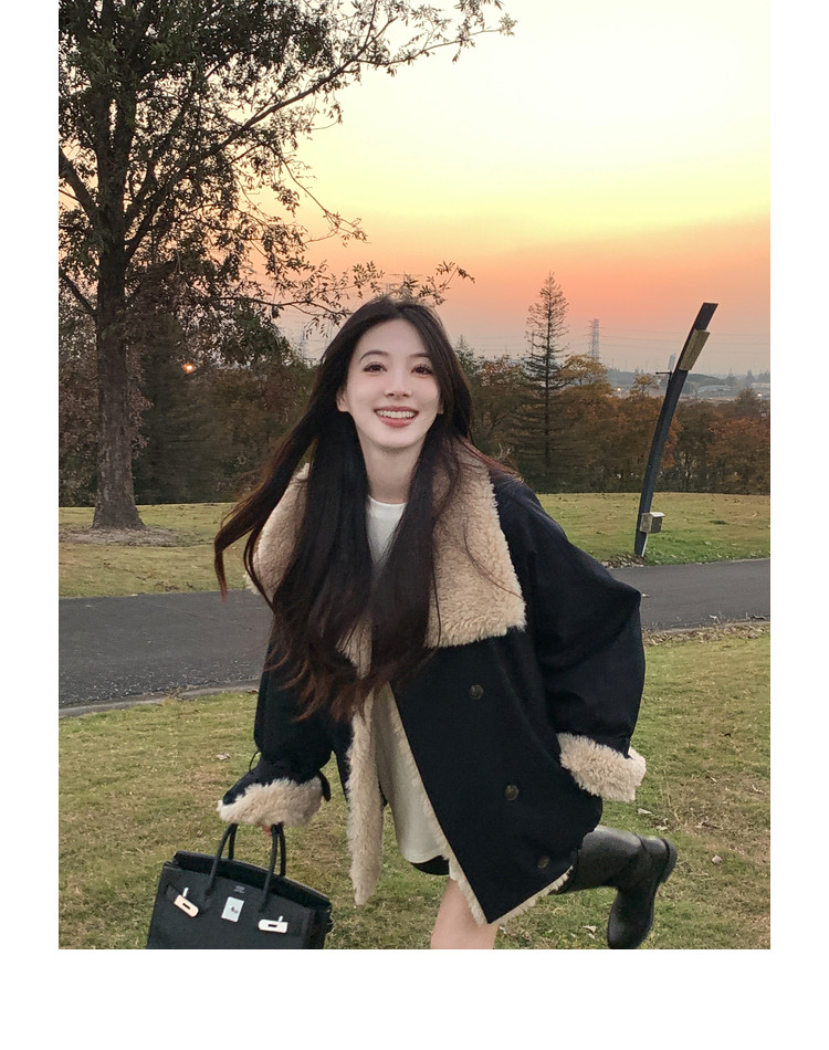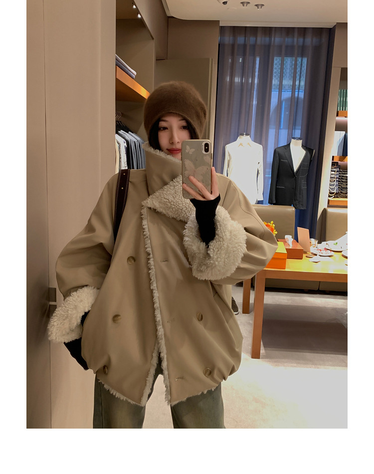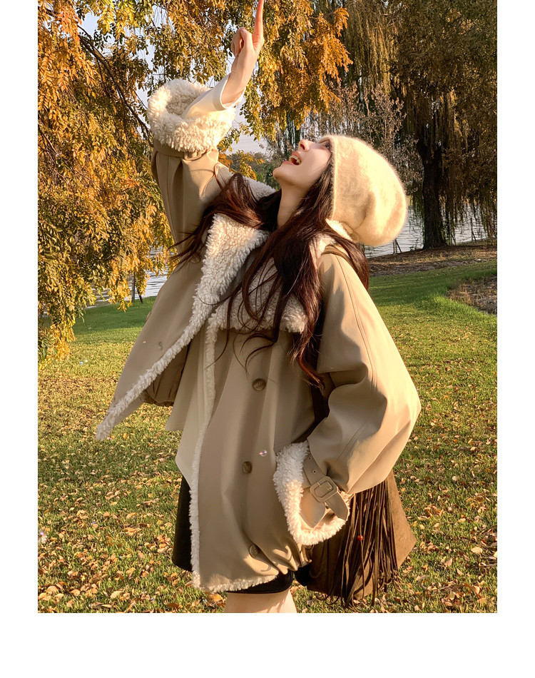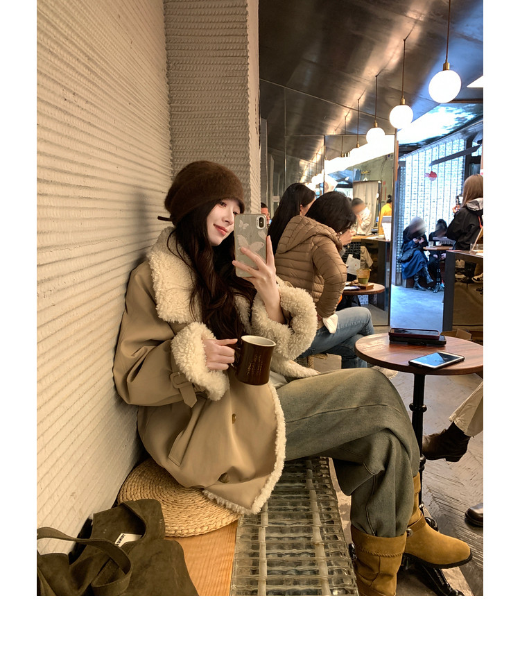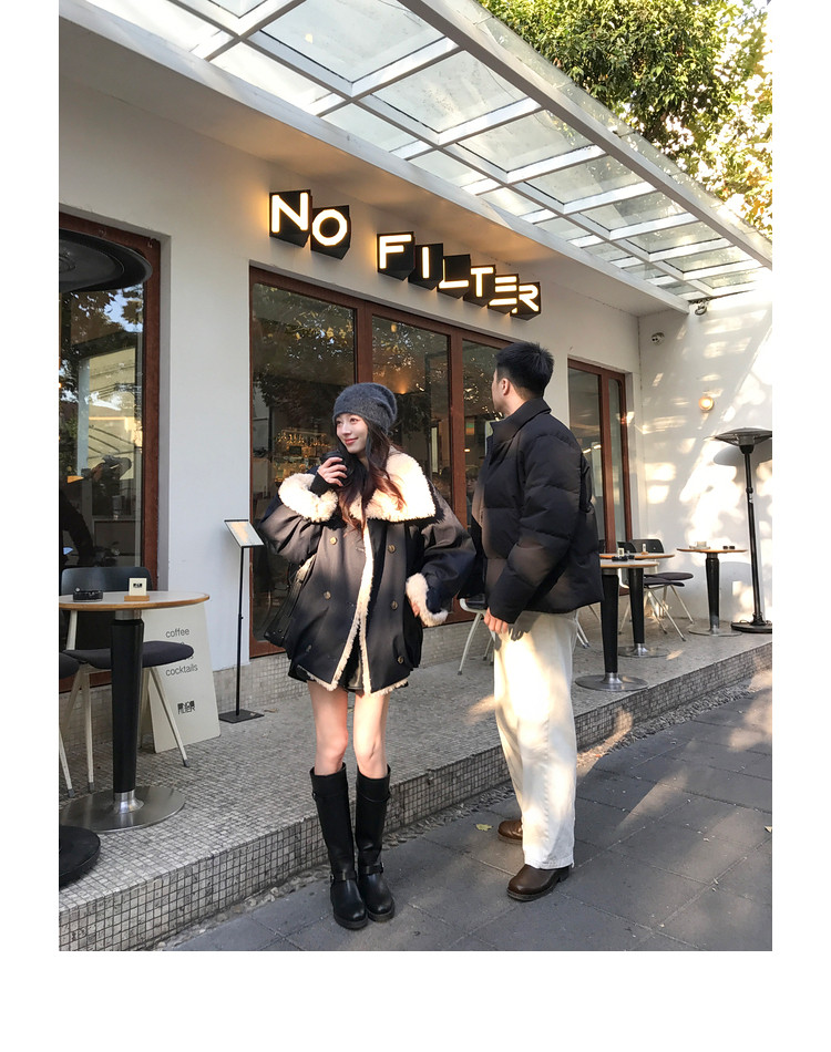 Xia Shiwen Patchwork Eco-Friendly Faux Shearling Quilted Cotton Parka Women's Winter Large Lapel Loose Drop Shoulder Workwear Jacket
