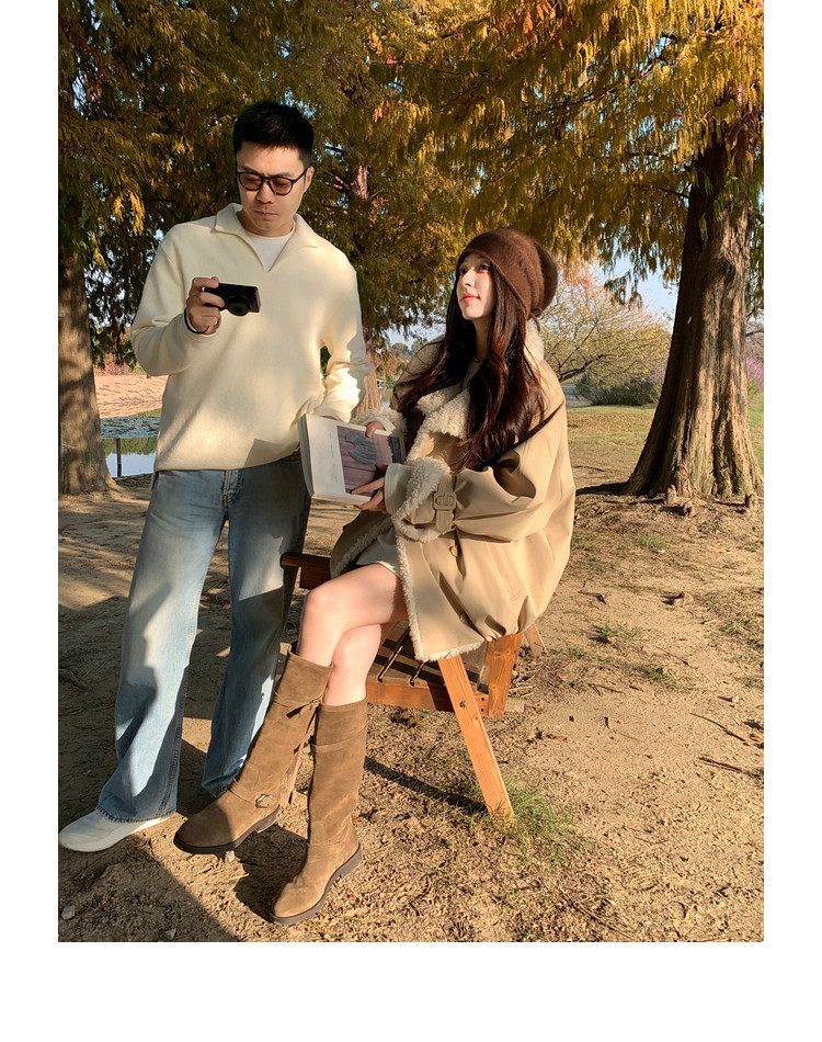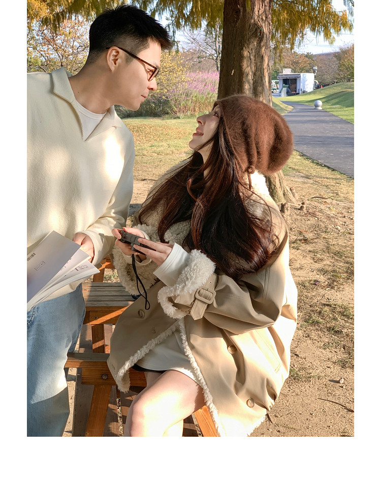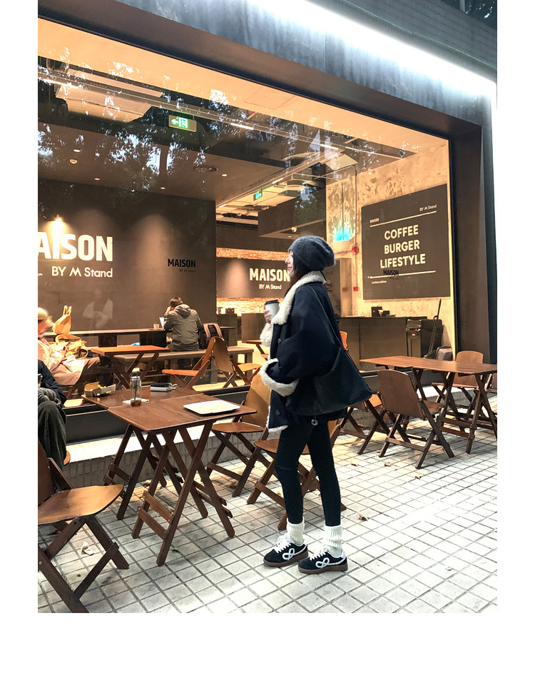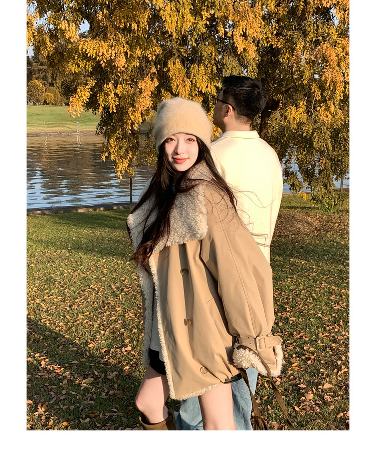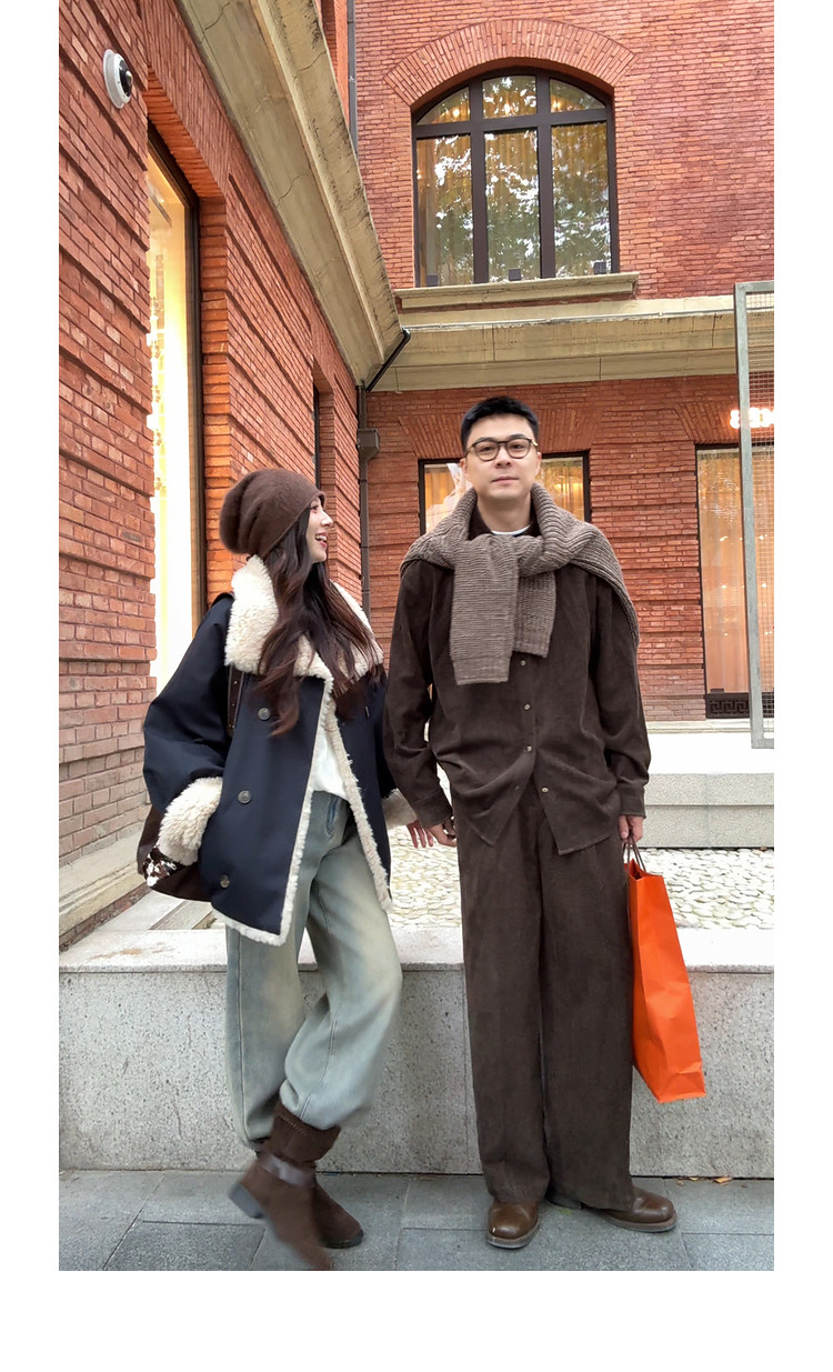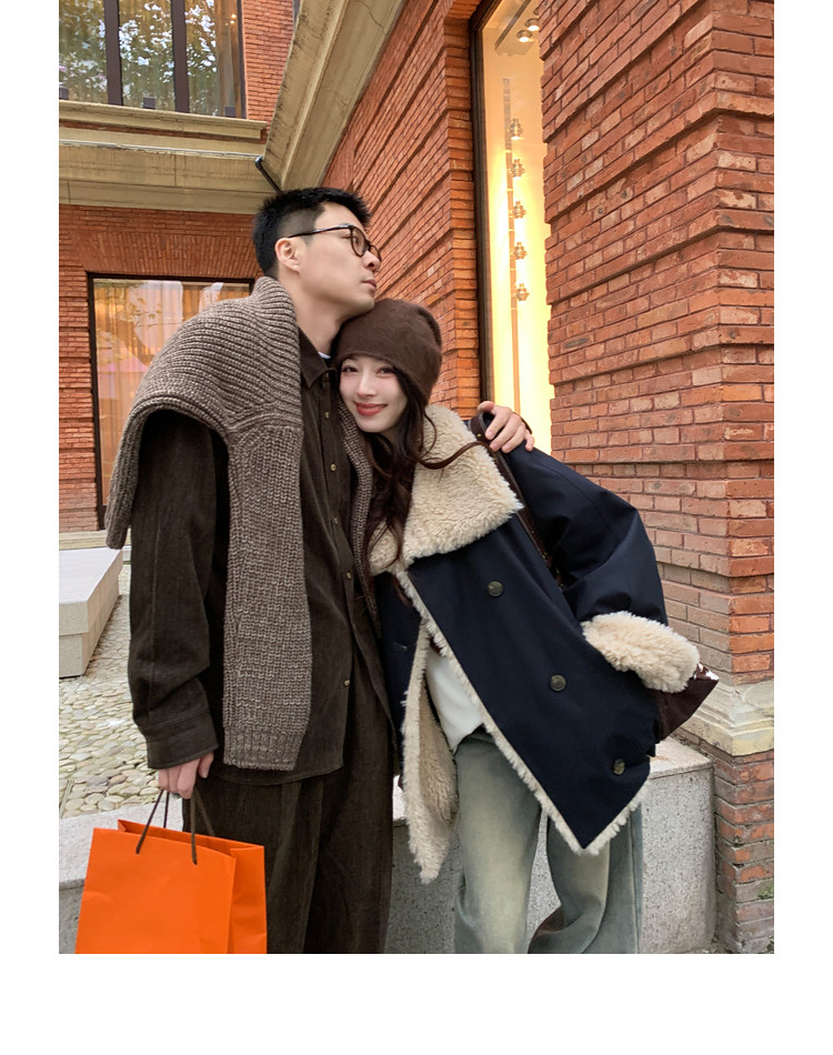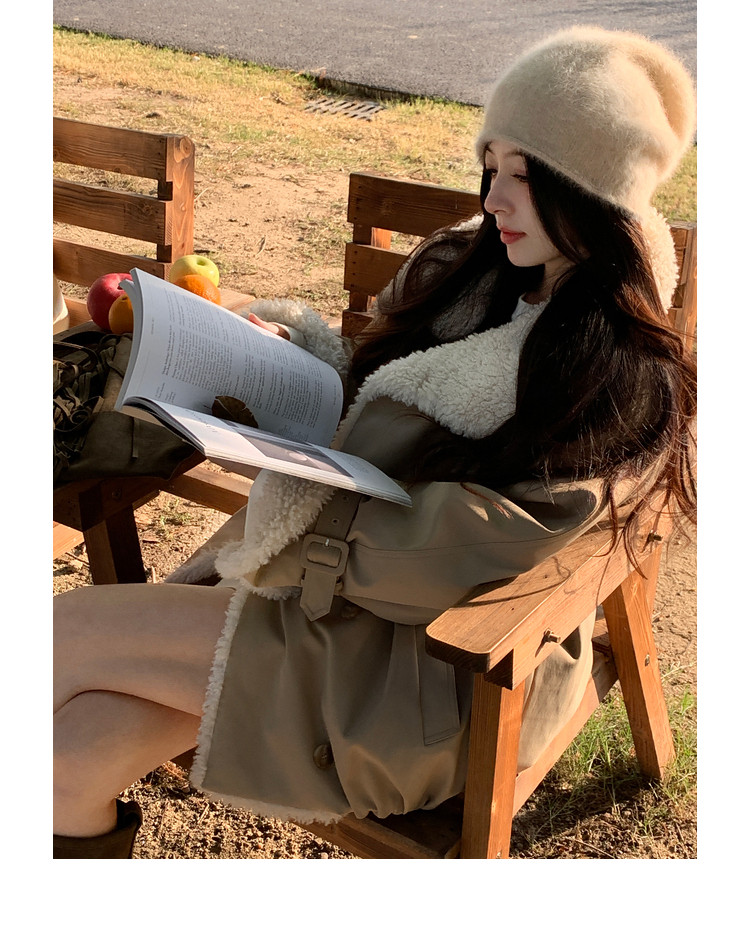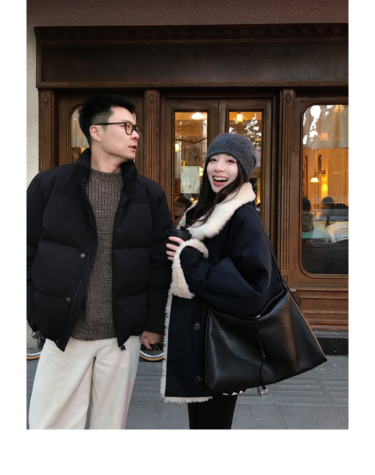 Xia Shiwen Patchwork Eco-Friendly Faux Shearling Quilted Cotton Parka Women's Winter Large Lapel Loose Drop Shoulder Workwear Jacket
