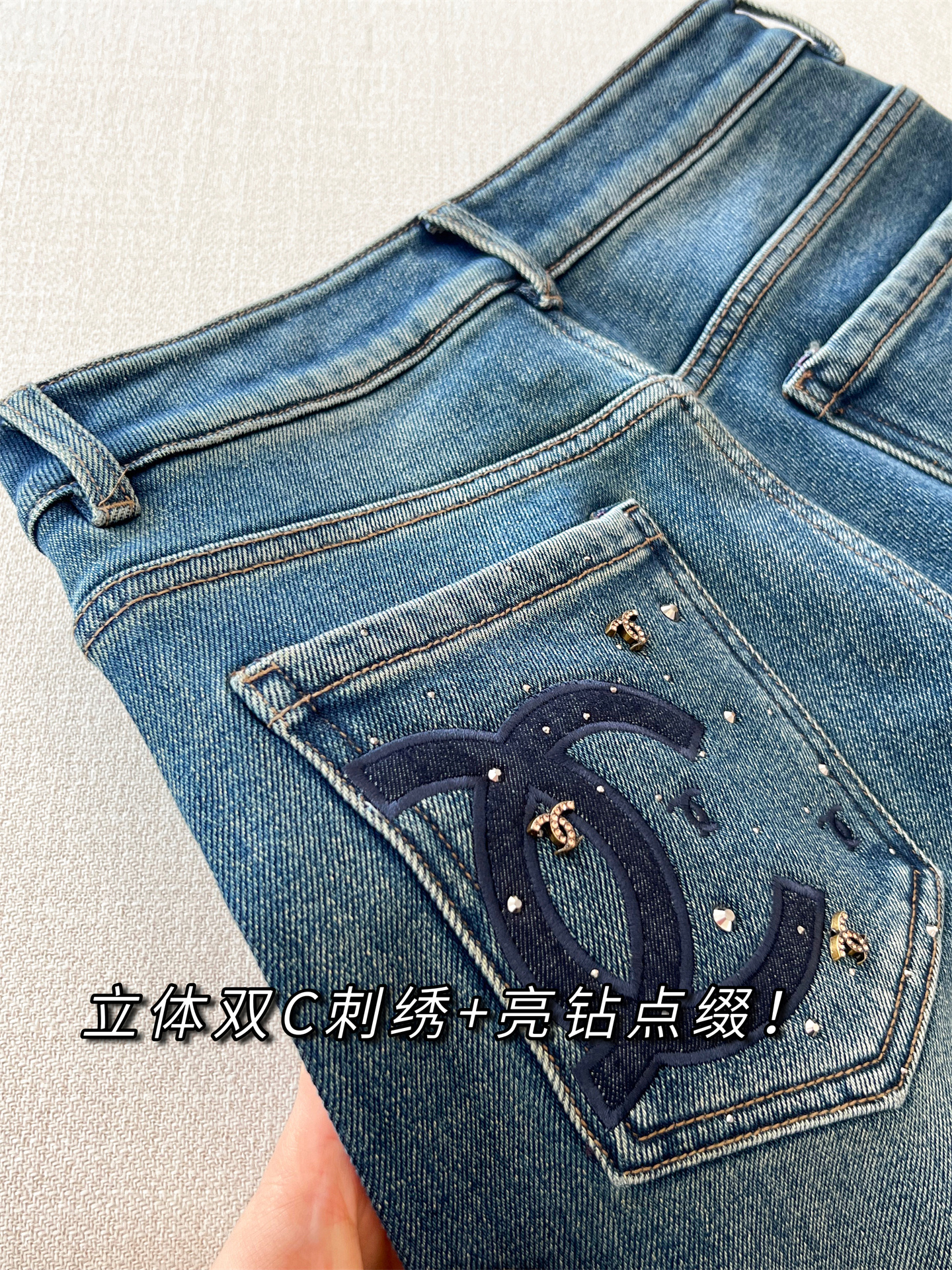 口袋处立体双C刺绣+细碎亮片点缀,超级显贵气!!