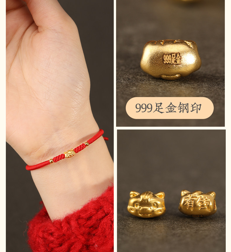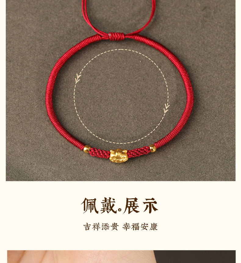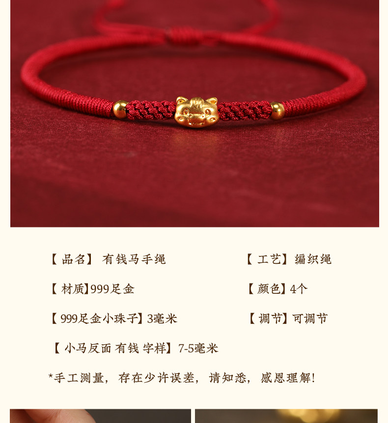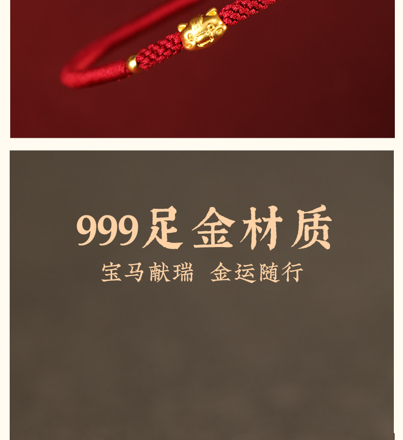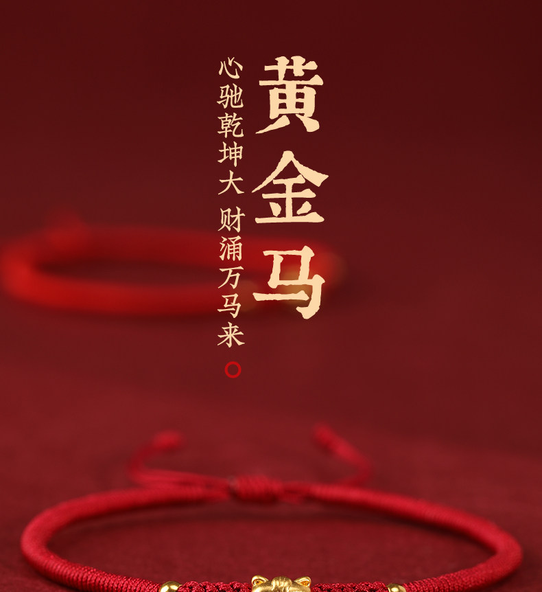 Year of the Horse, Women's High-End Gold Fortune Bead Bracelet, Men's Gift, 999 Pure Gold Little Horse Red String Bracelet