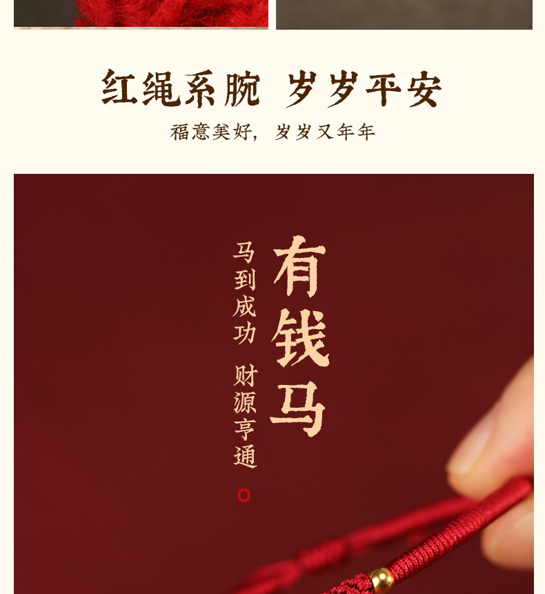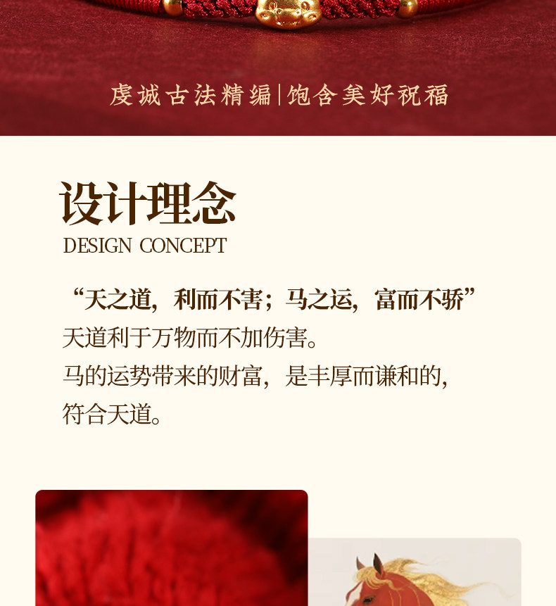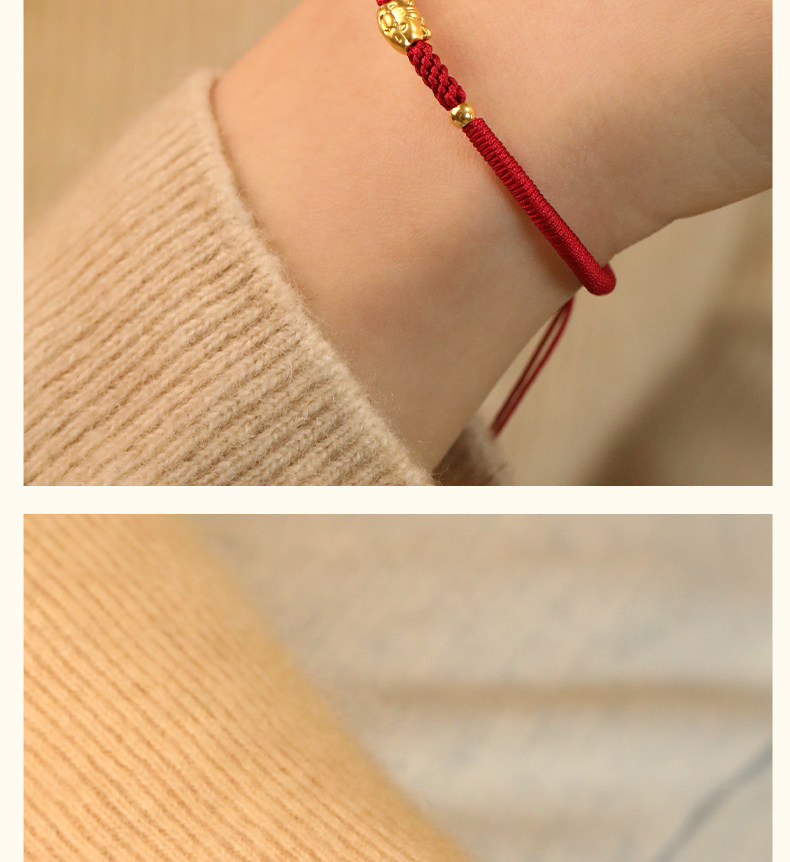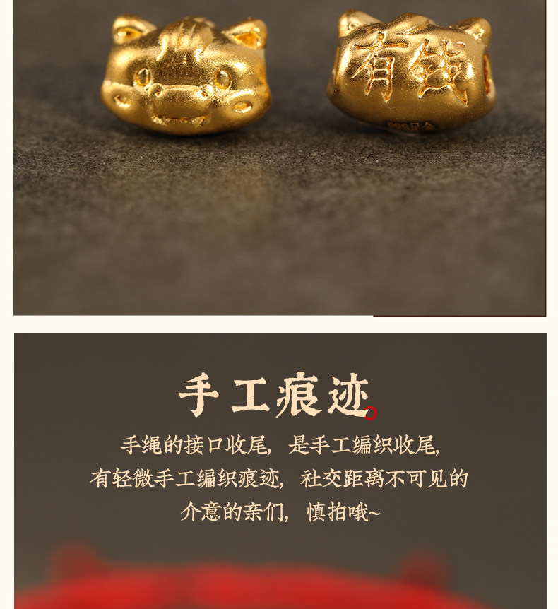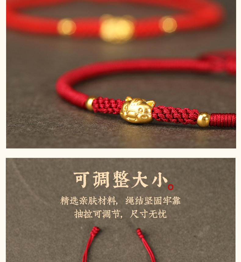Year of the Horse, Women's High-End Gold Fortune Bead Bracelet, Men's Gift, 999 Pure Gold Little Horse Red String Bracelet