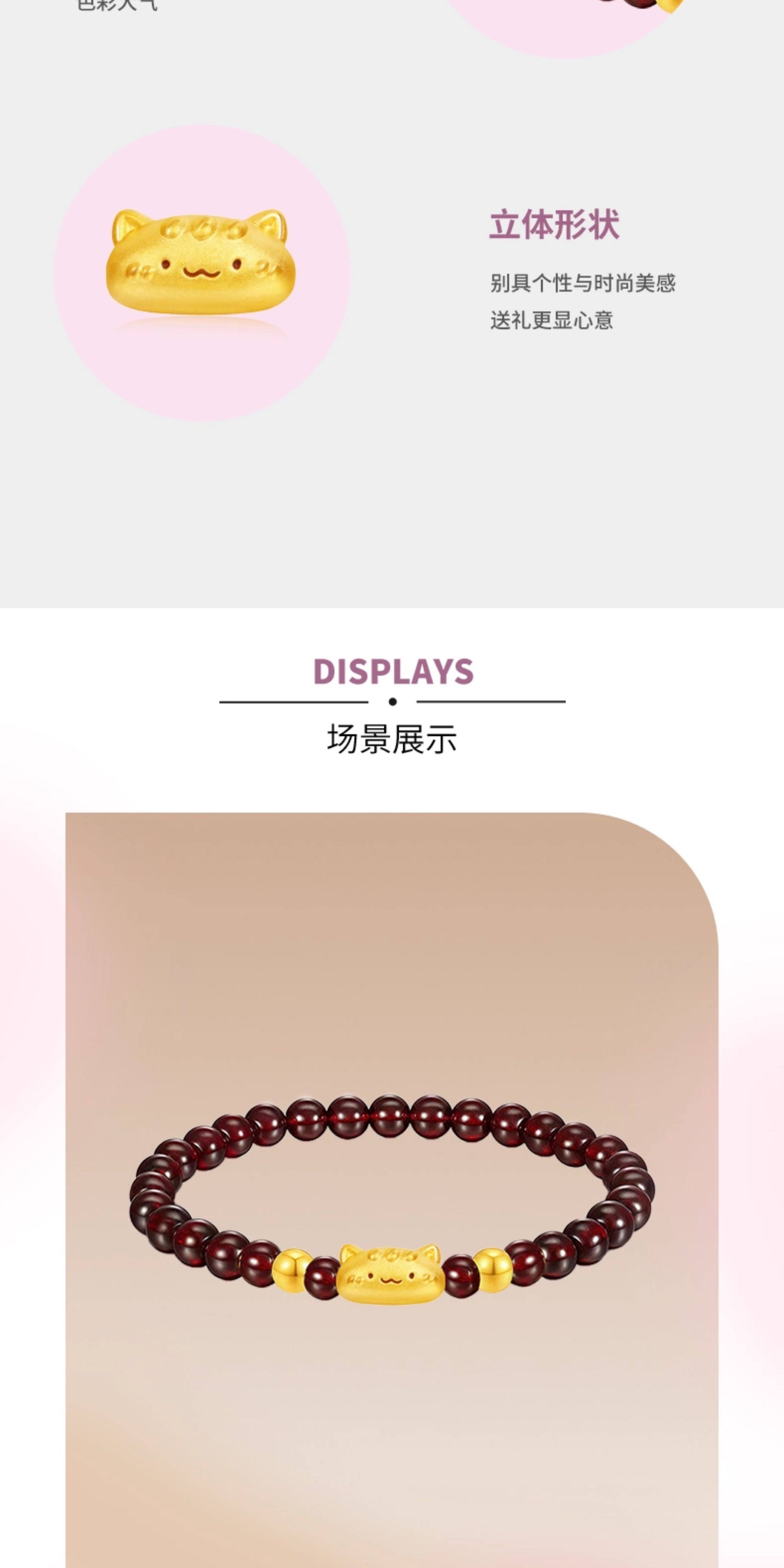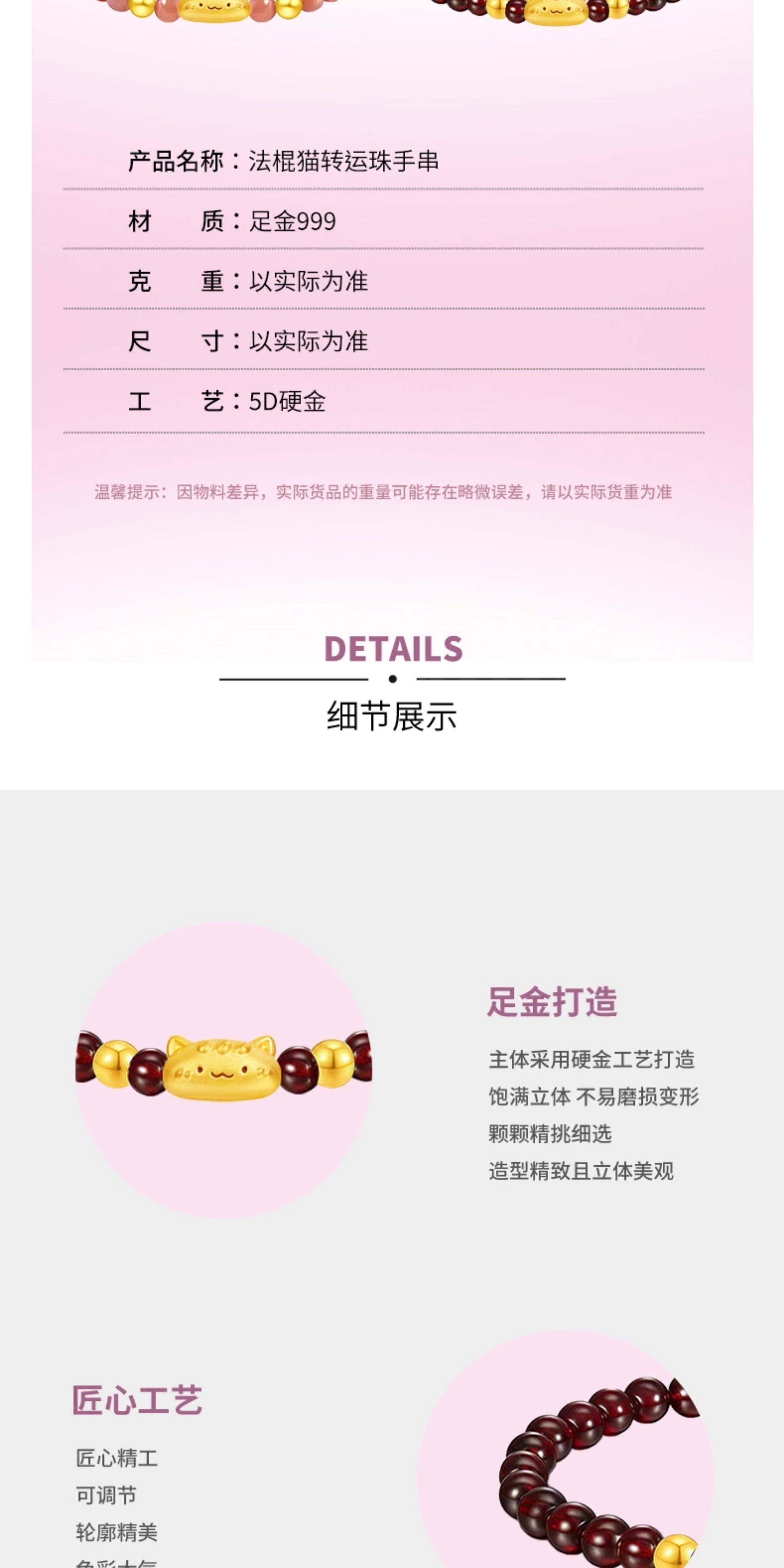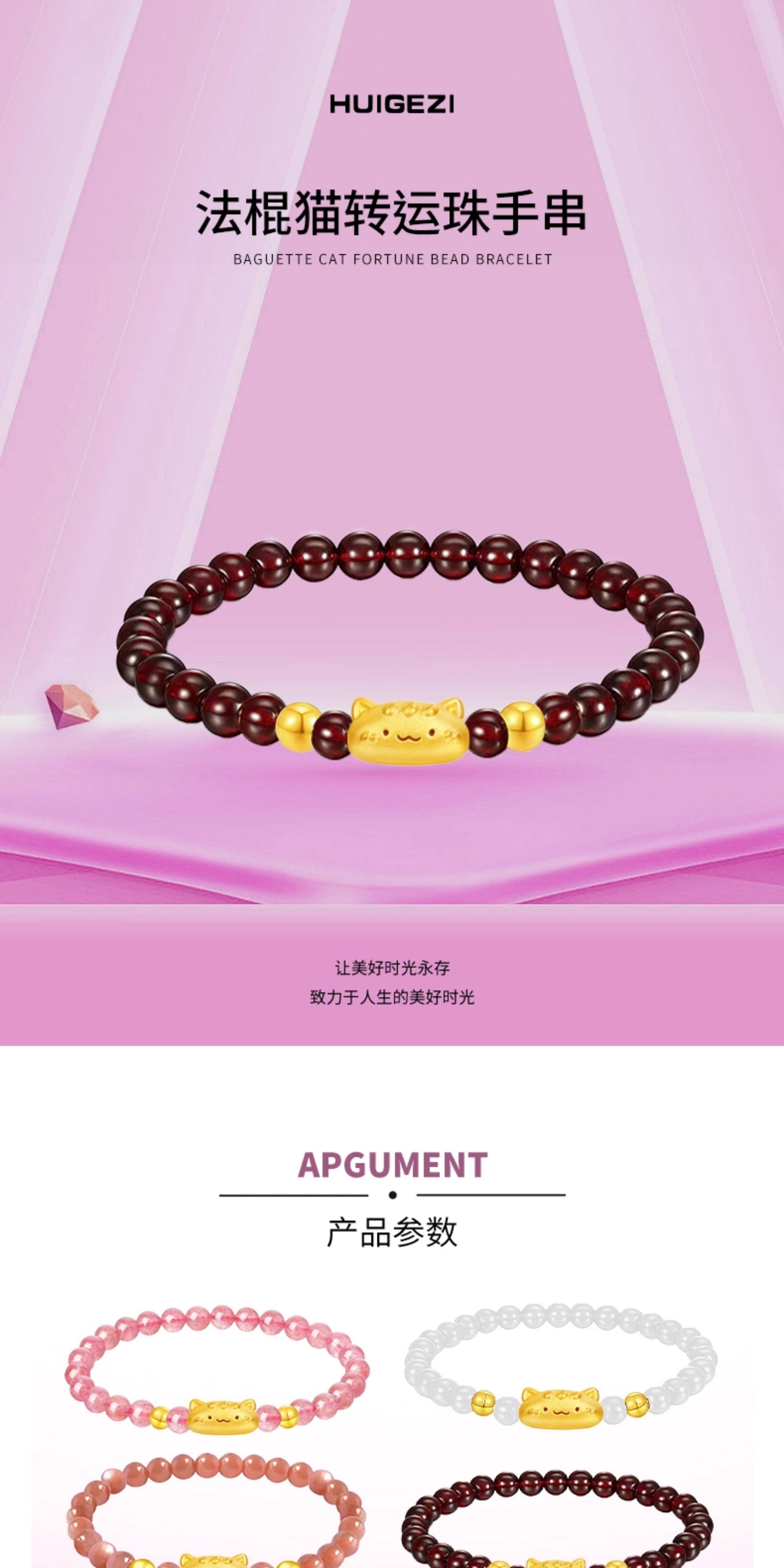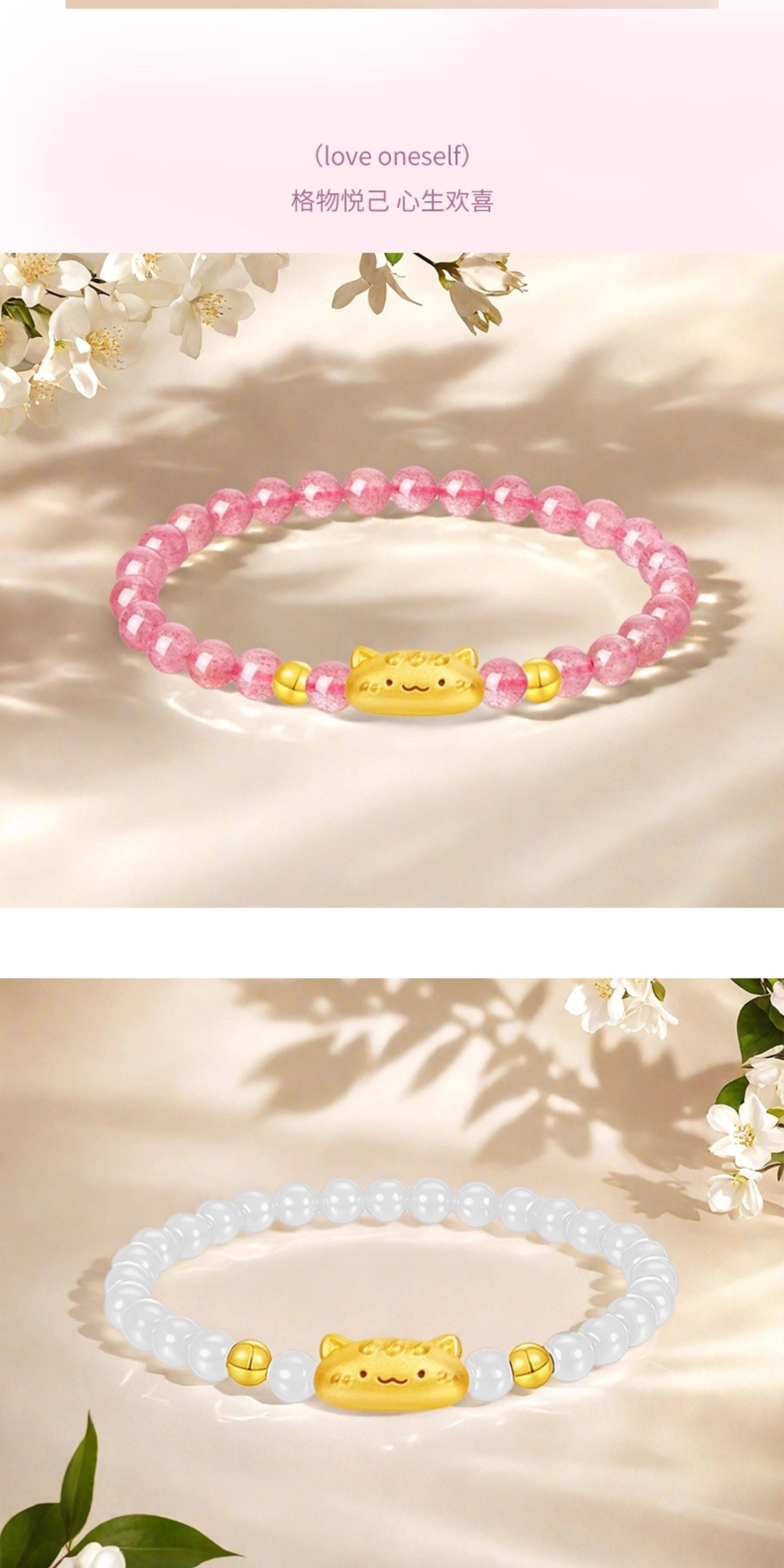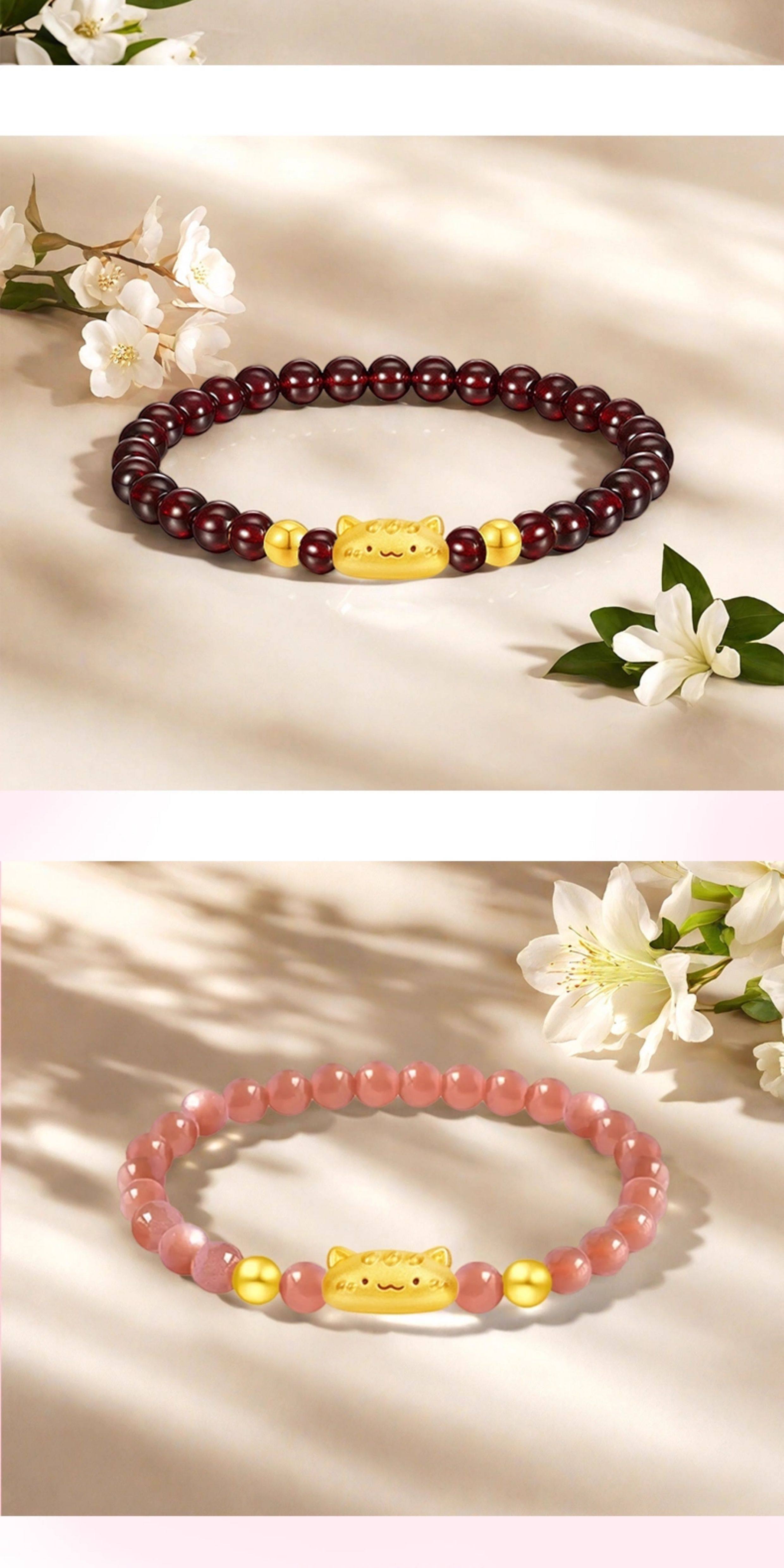 Huigezi Gold Baguette Cat Bracelet 999 Pure Gold Cute and Adorable Cat Fortune Bead Bracelet Holiday Gift