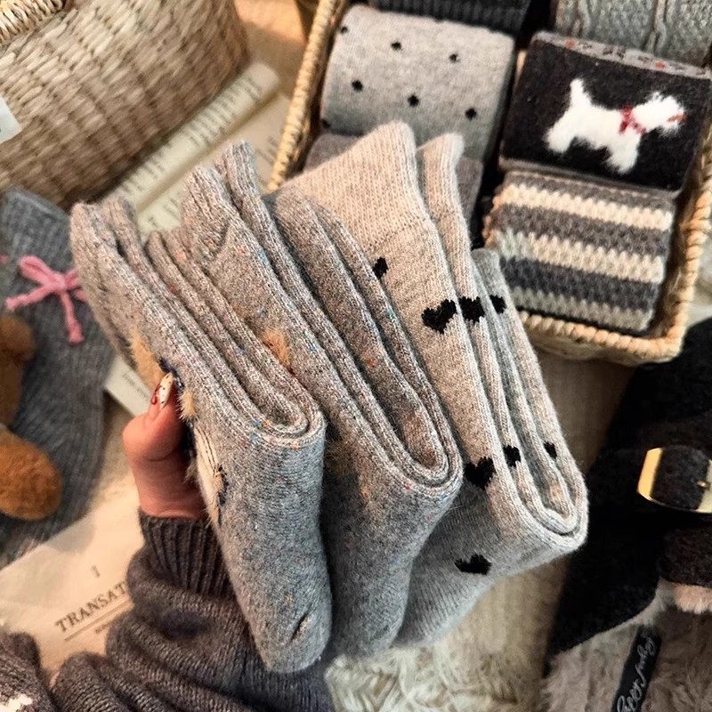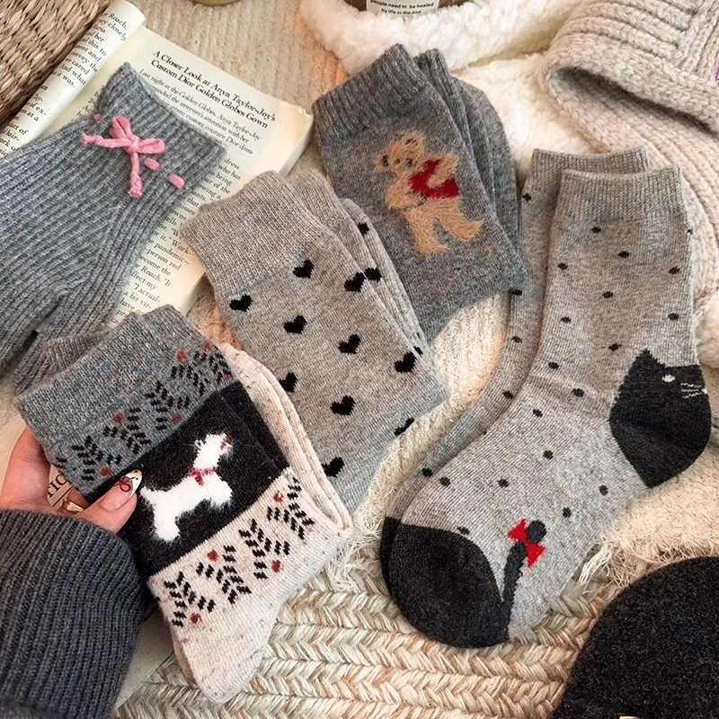 Striped Socks for Women, Autumn and Winter, Fleece-Lined, Thickened, Warm Mid-Calf Socks, Japanese Style, Cute Student Socks, Odor-Resistant, Sweat-Absorbing Long Socks