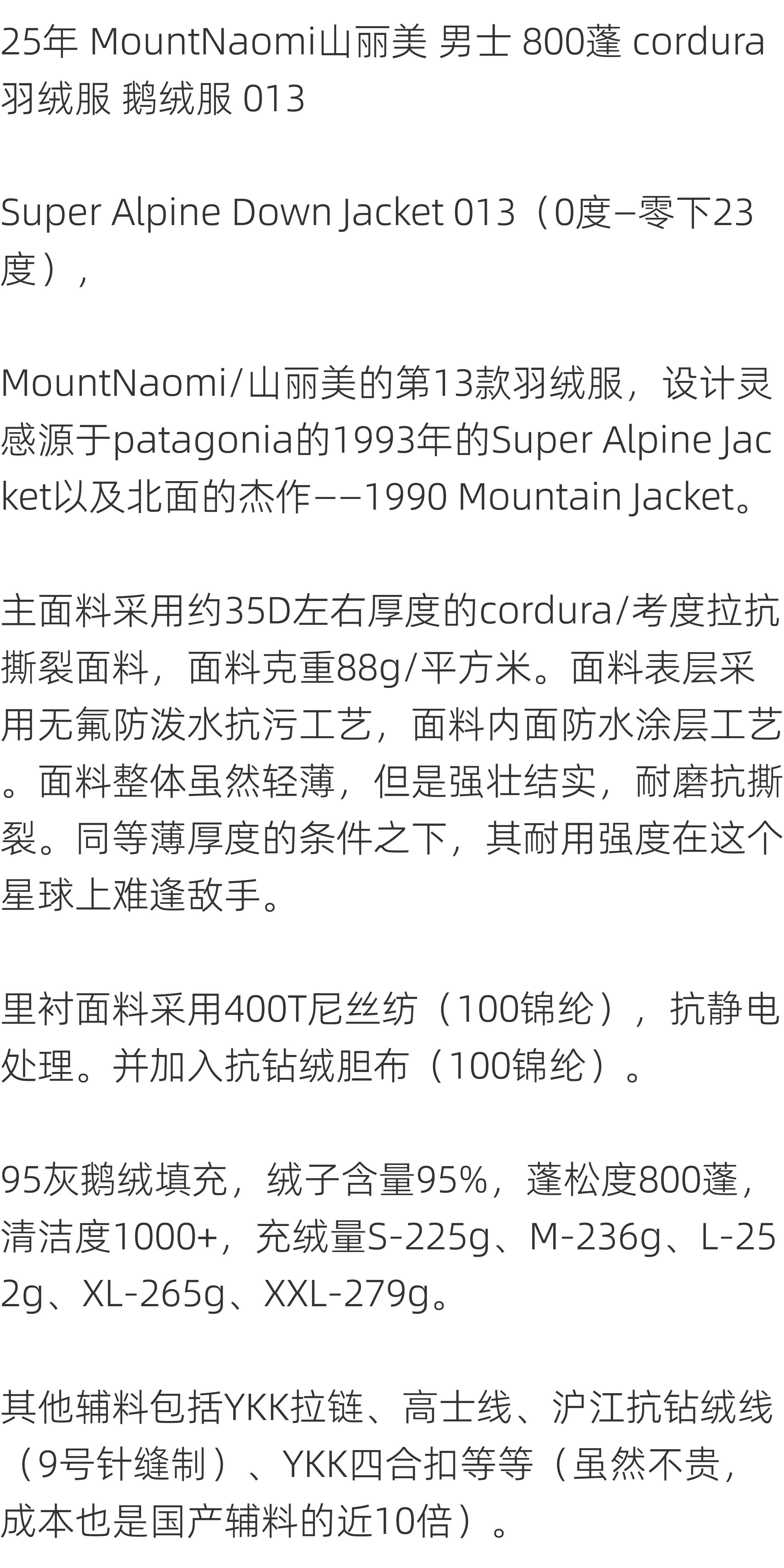 25 Years Mountnaomi Men's 800 Fill Power Cordura down Jacket Goose down Jacket 013