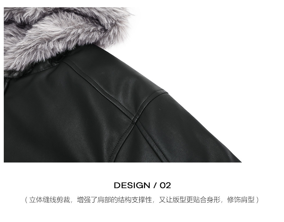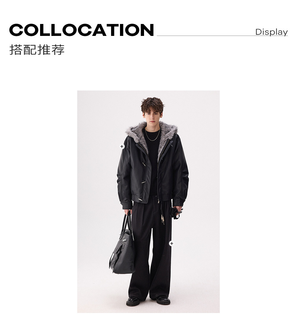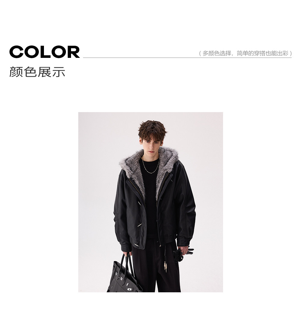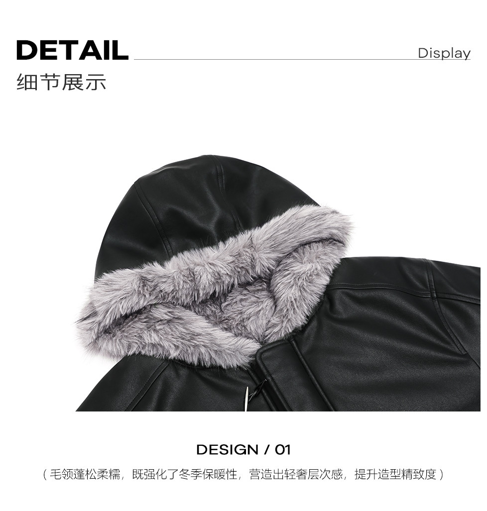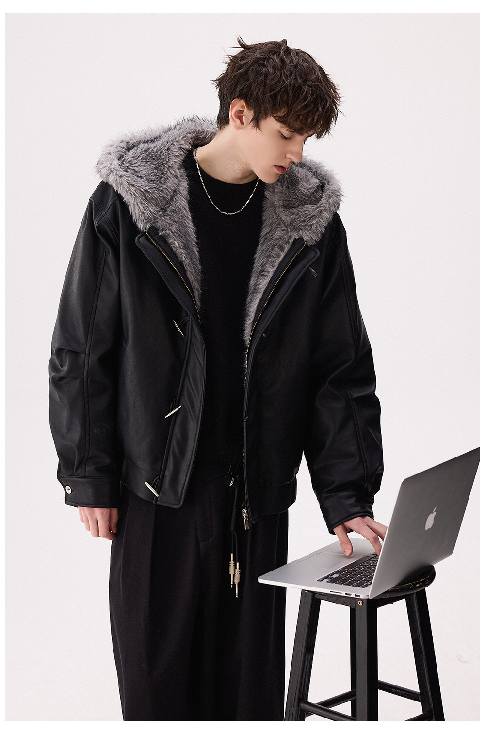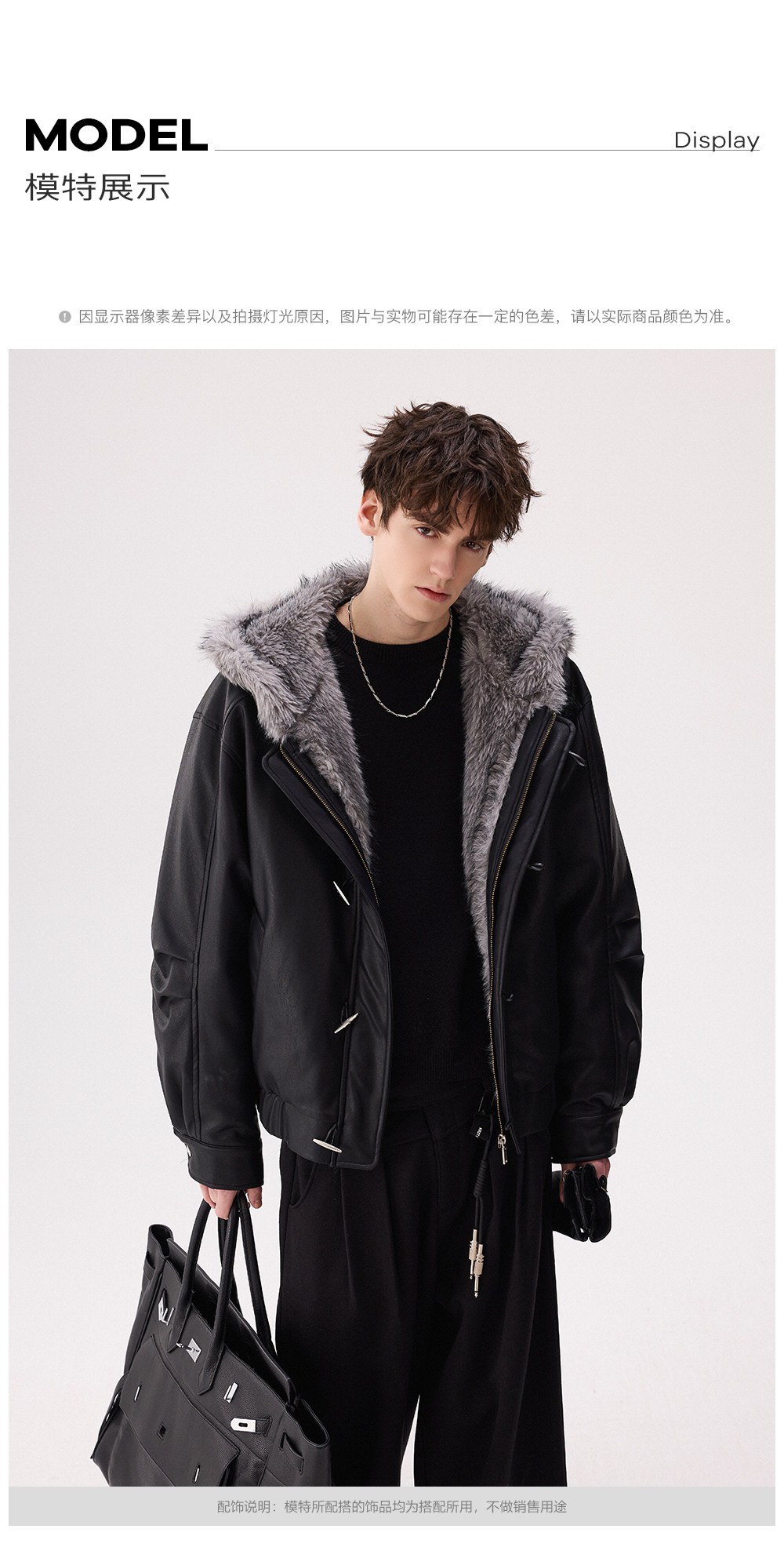 Chicerro Sicilian Men's Stylish Protein Leather Hooded Fur Collar Cotton Jacket Black Leather Coat Men's Clothing