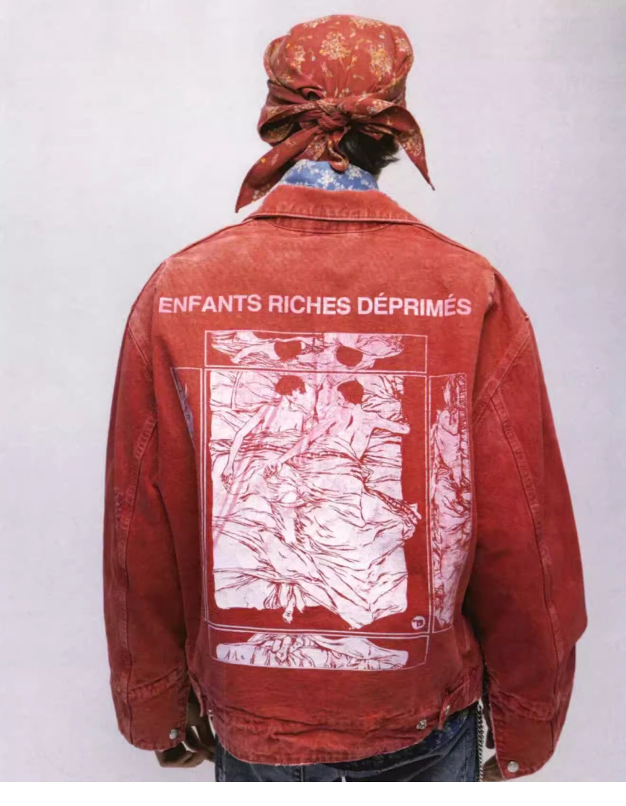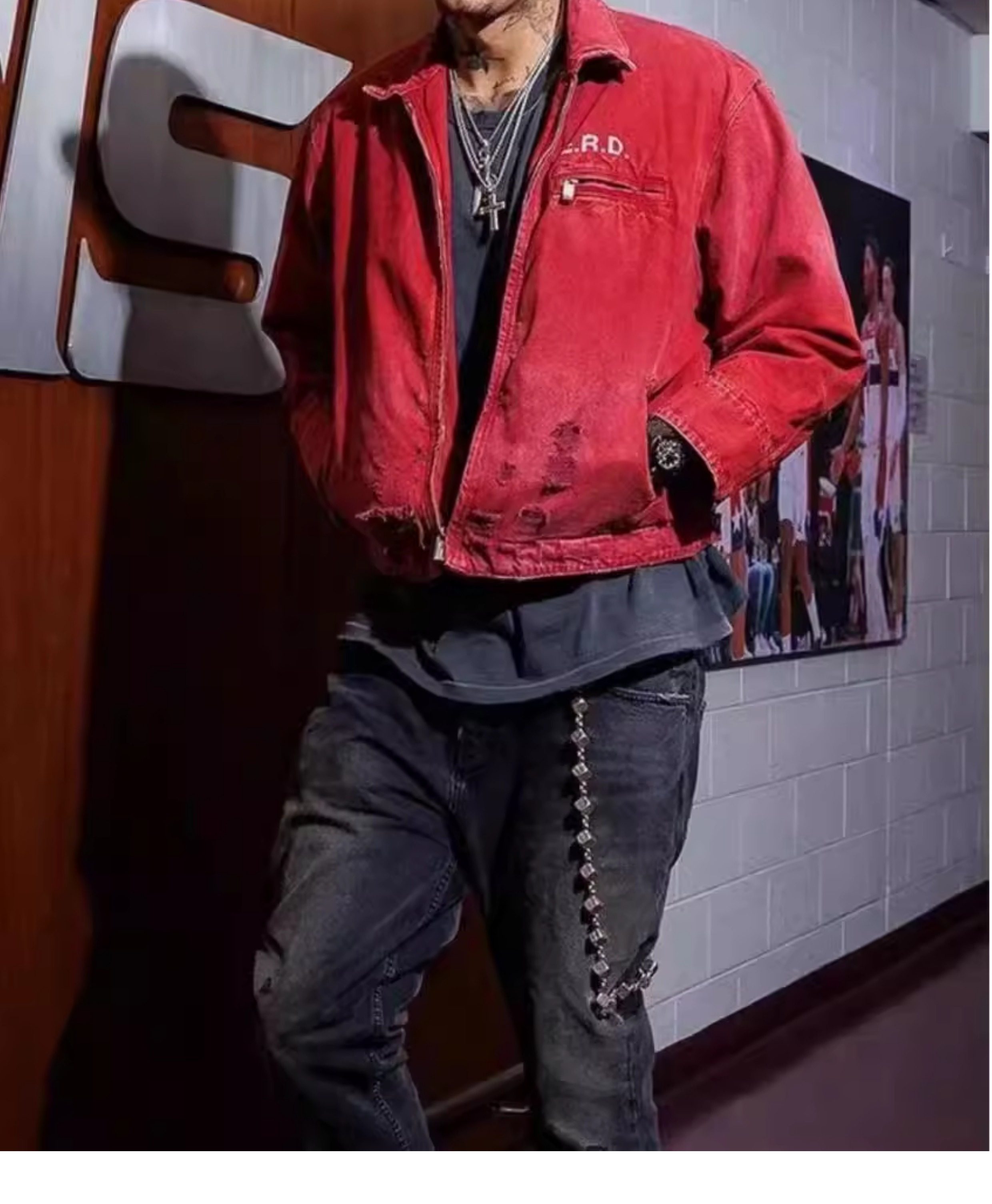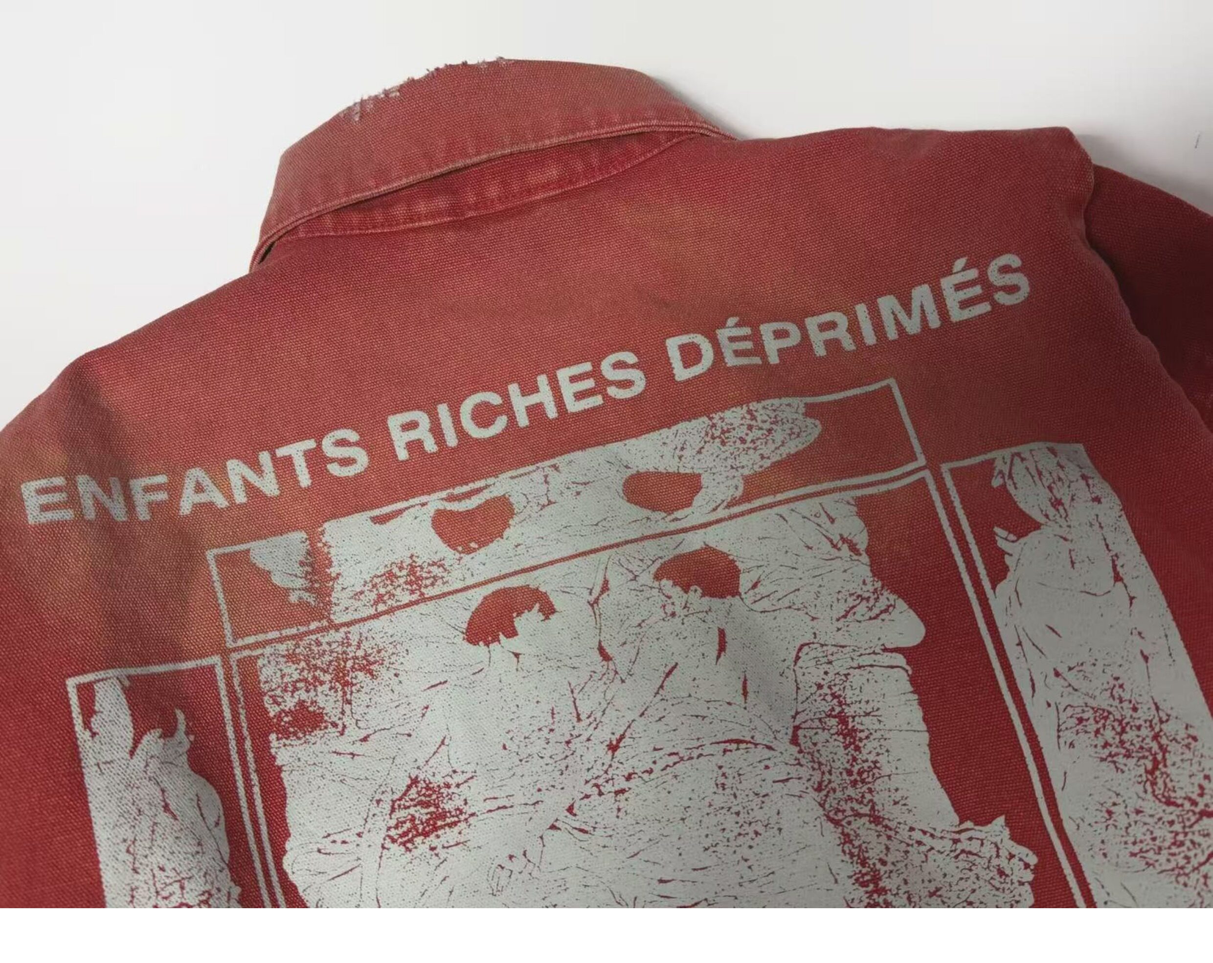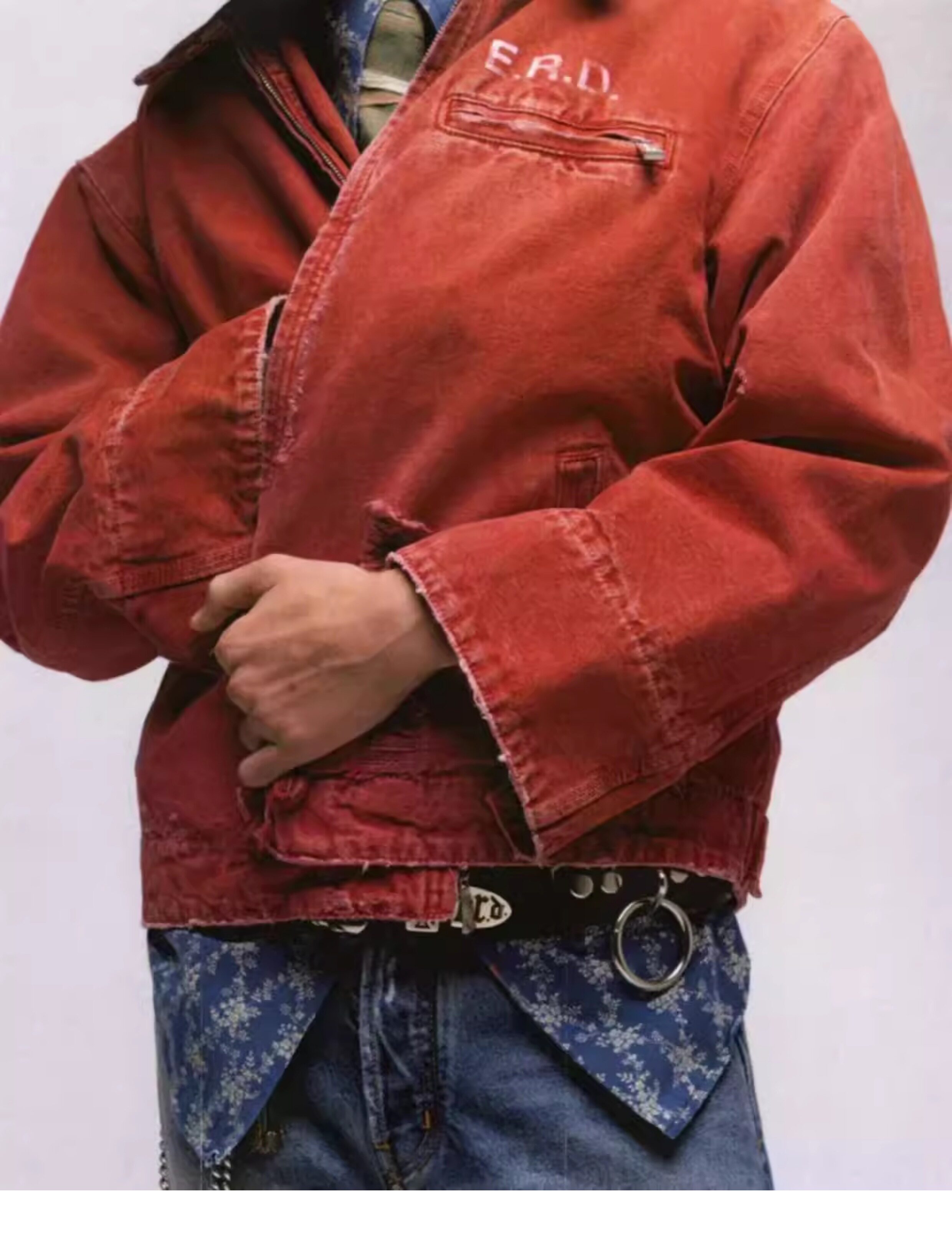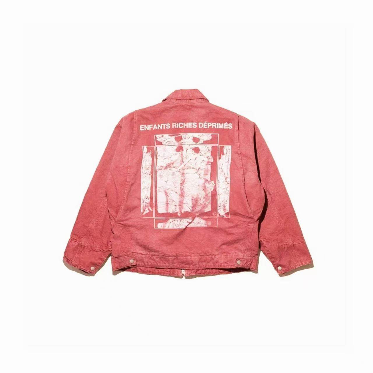 Erd Melancholic Rich Kid Detroit Lapel Canvas Washed Vintage Distressed Letter Print Denim Jacket for Men