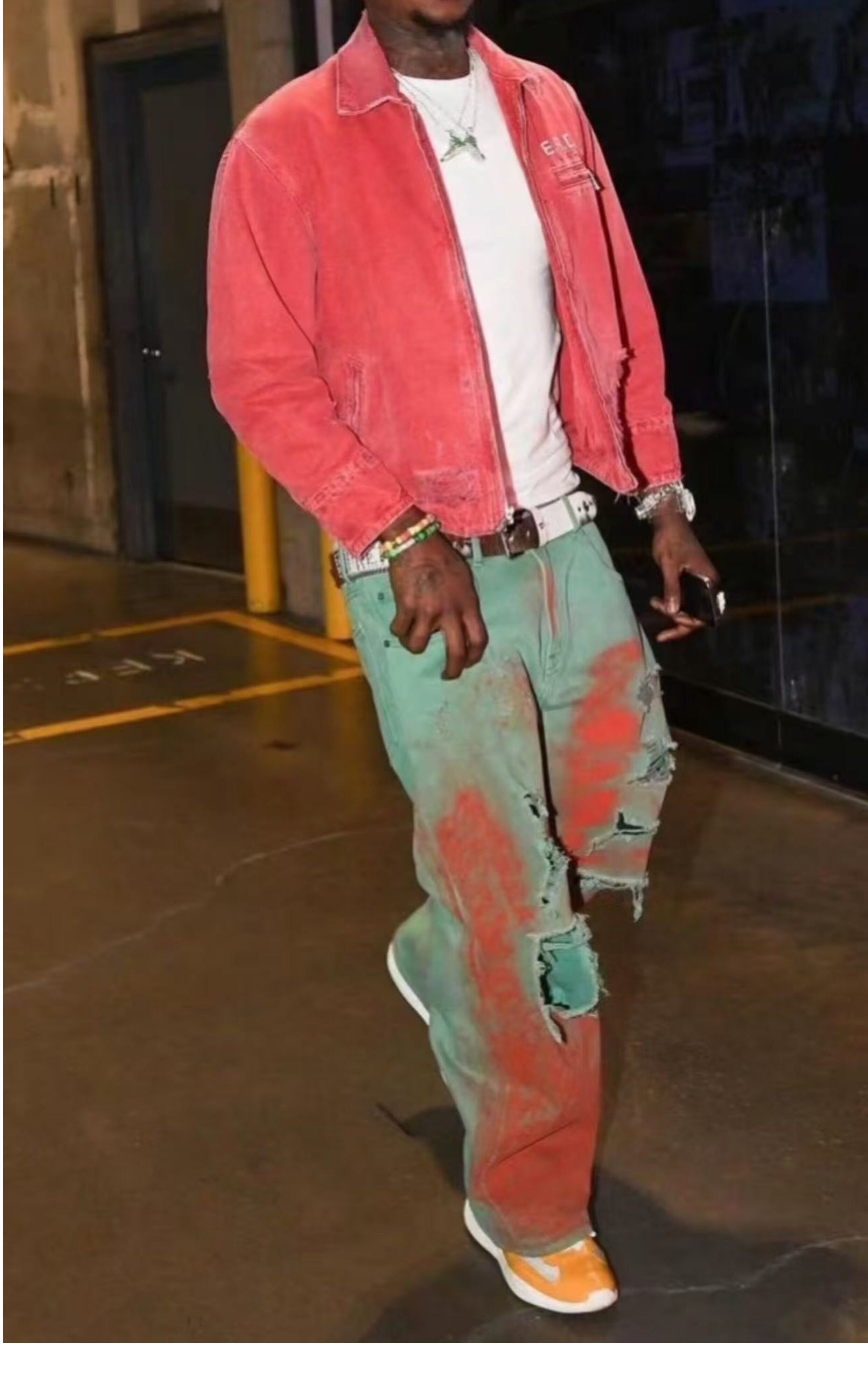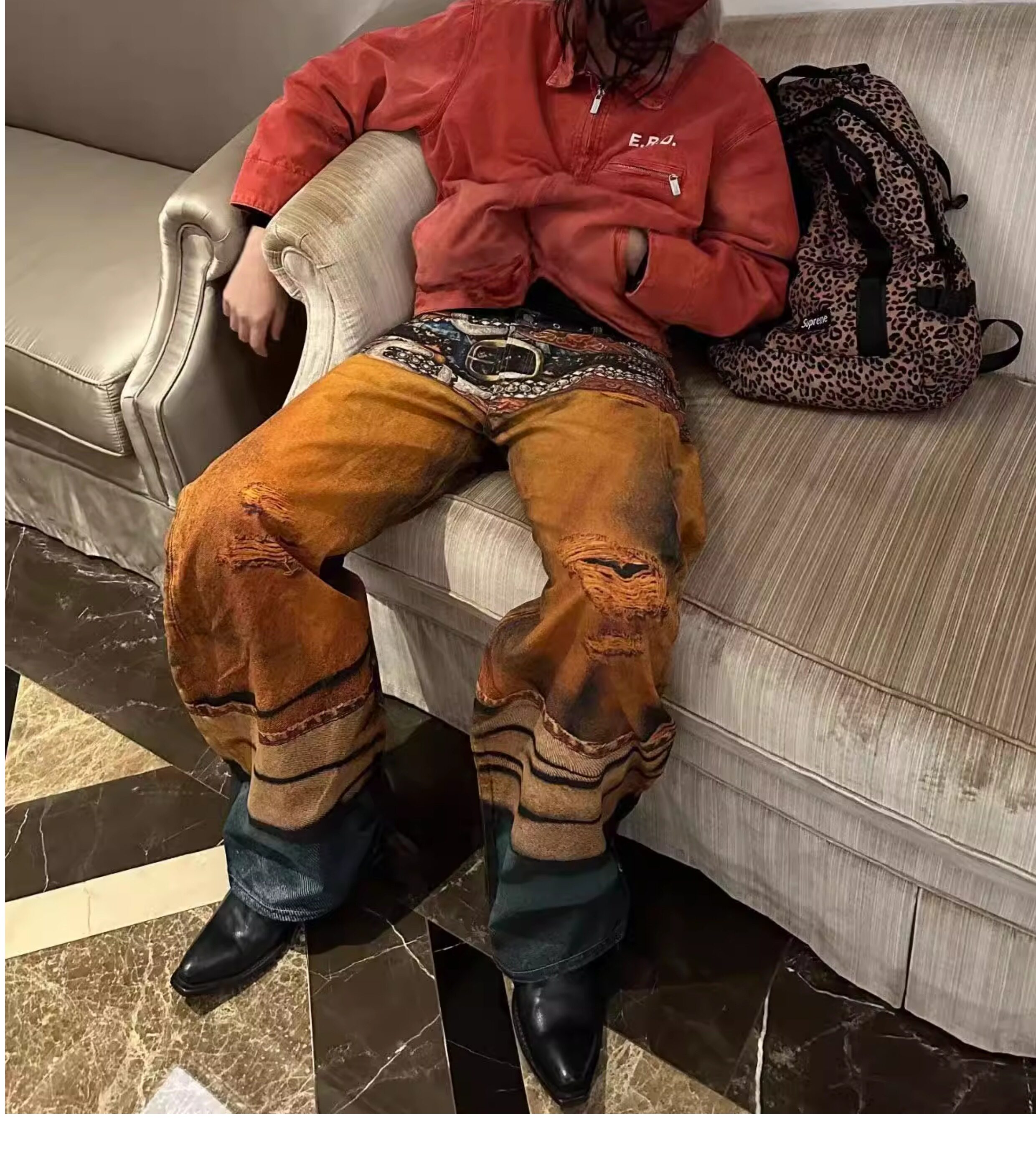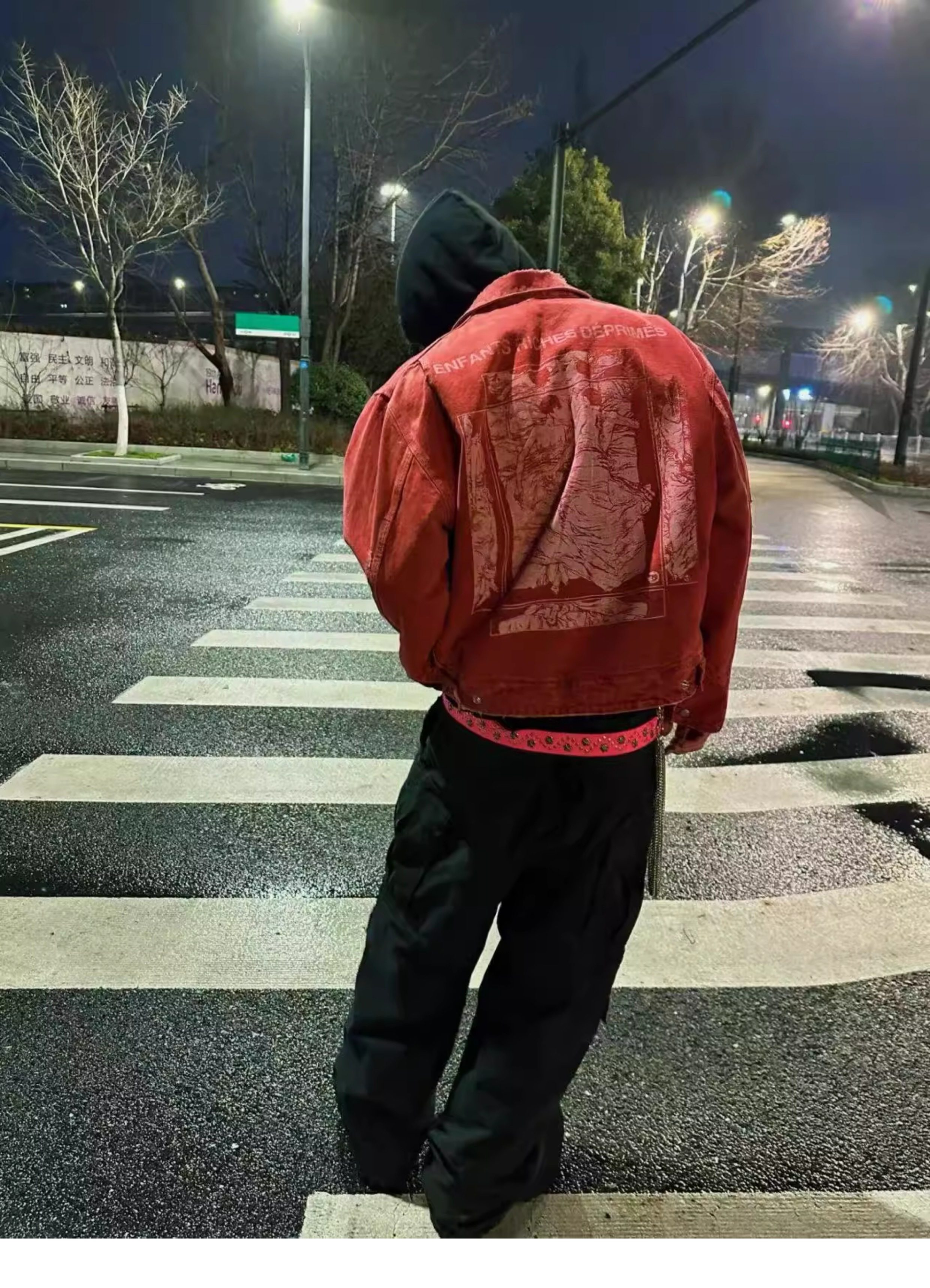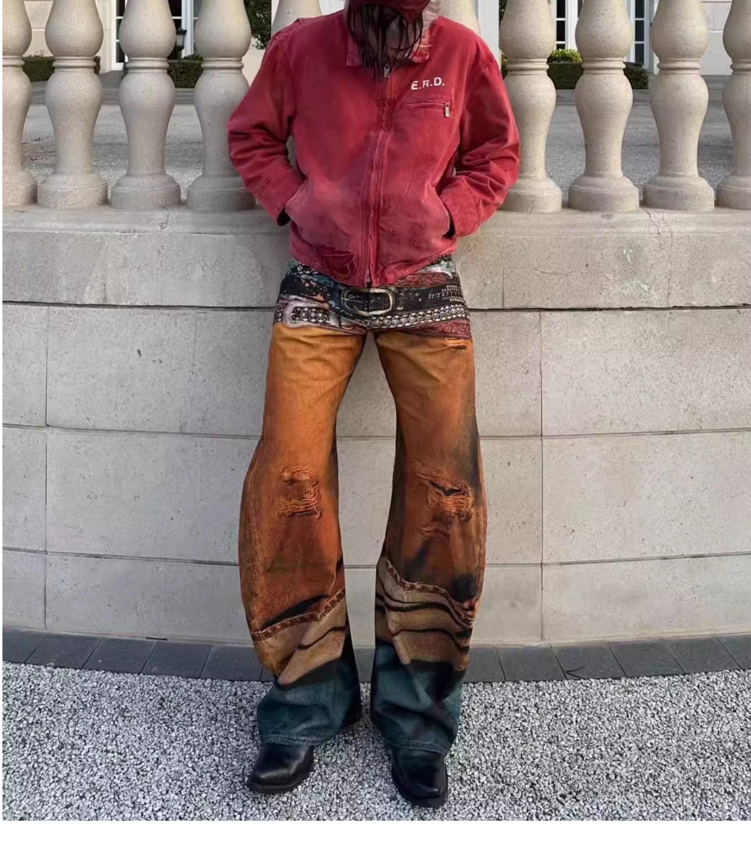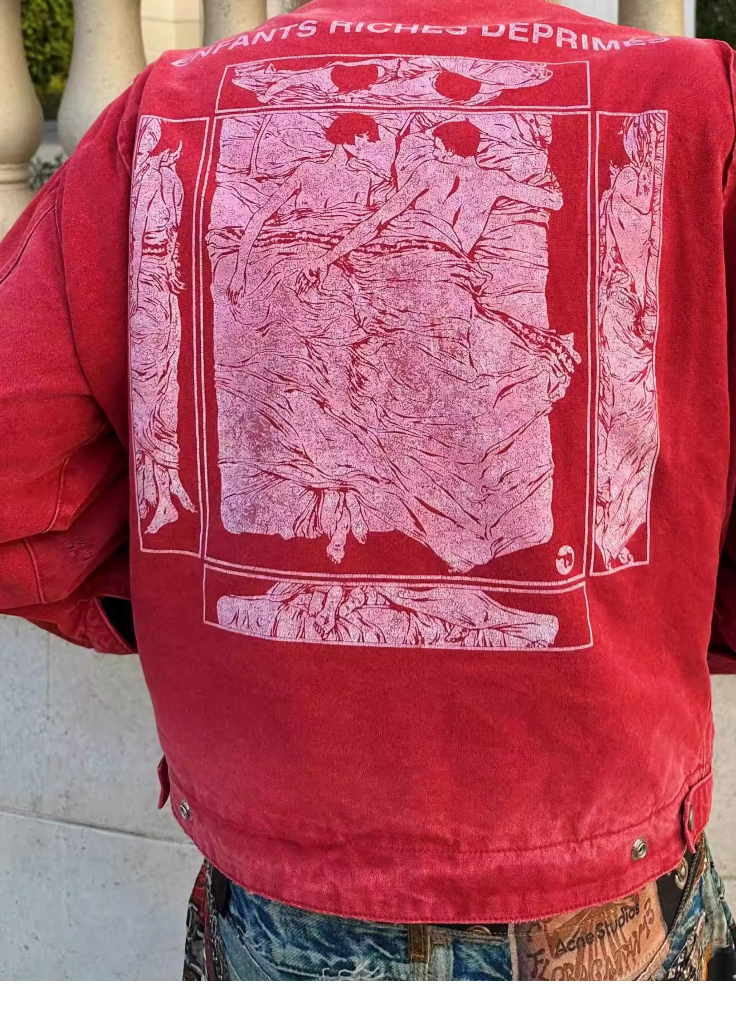 Erd Melancholic Rich Kid Detroit Lapel Canvas Washed Vintage Distressed Letter Print Denim Jacket for Men