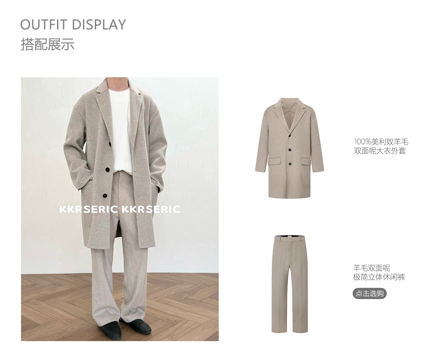 Kkrs Eric 100% Australian New South Wales Merino Wool Double-Sided Wool Minimalist Coat