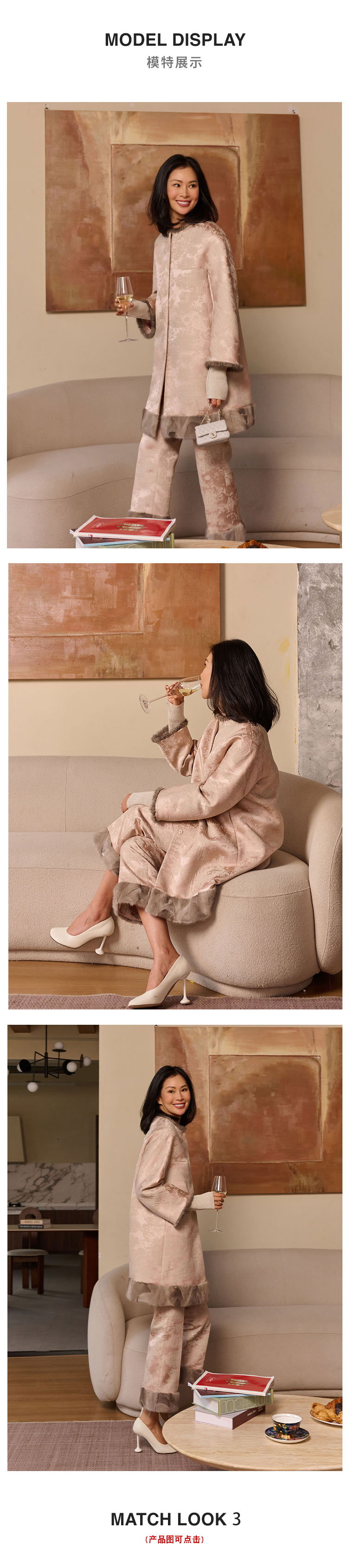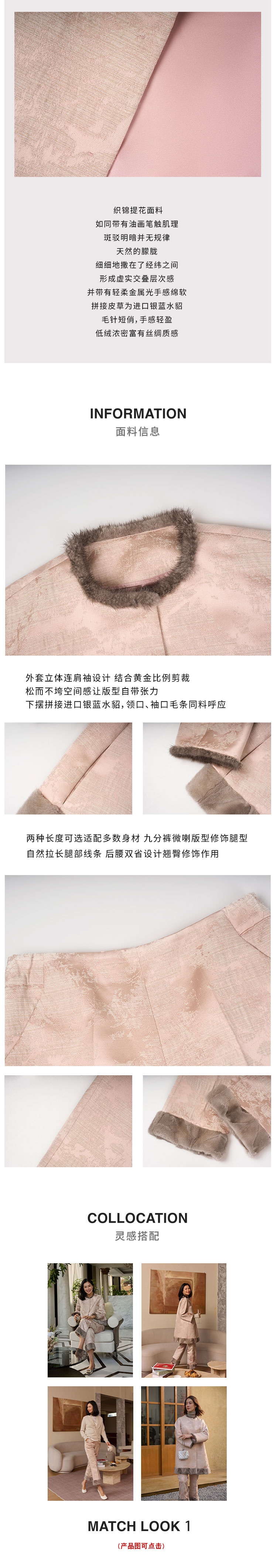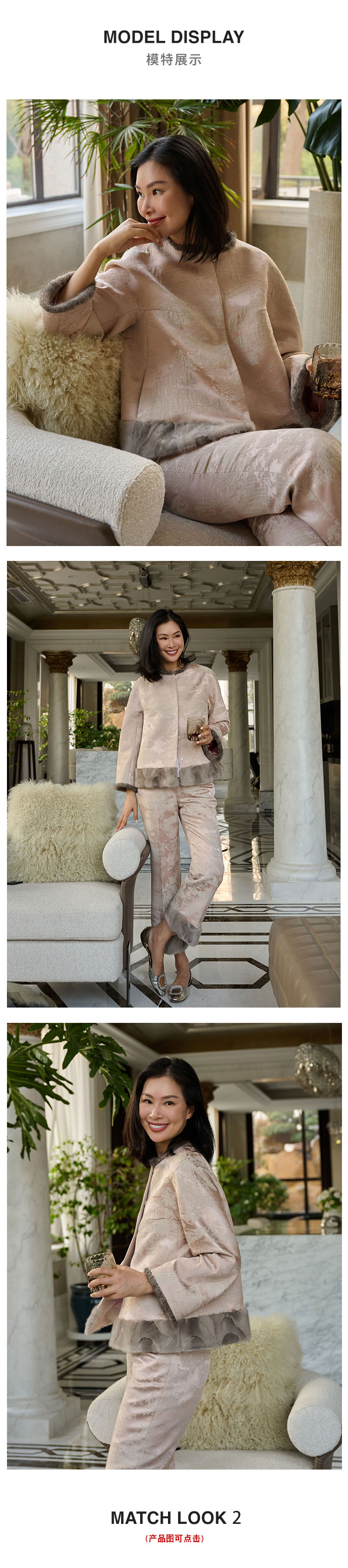 Amandax "Imaginative Oriental Style" Series Brocade Oil Painting Jacquard Mink Trim Chinese Jacket/Ankle-Length Pants
