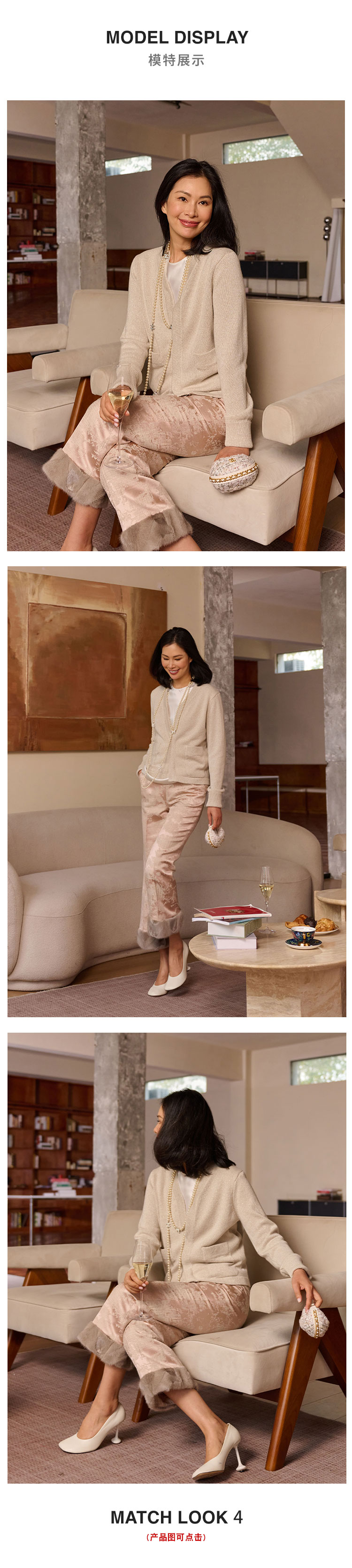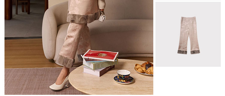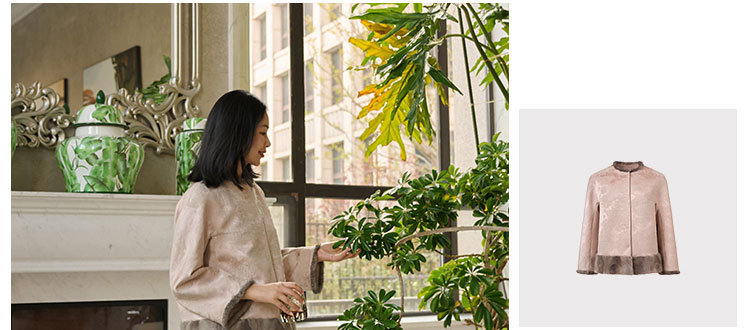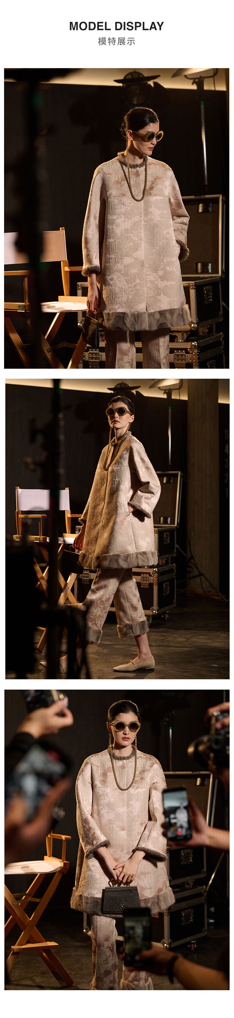 Amandax "Imaginative Oriental Style" Series Brocade Oil Painting Jacquard Mink Trim Chinese Jacket/Ankle-Length Pants