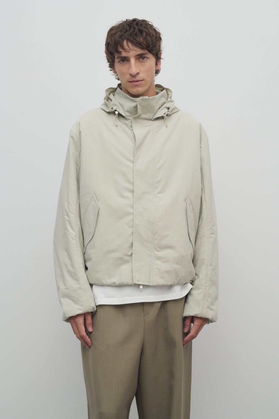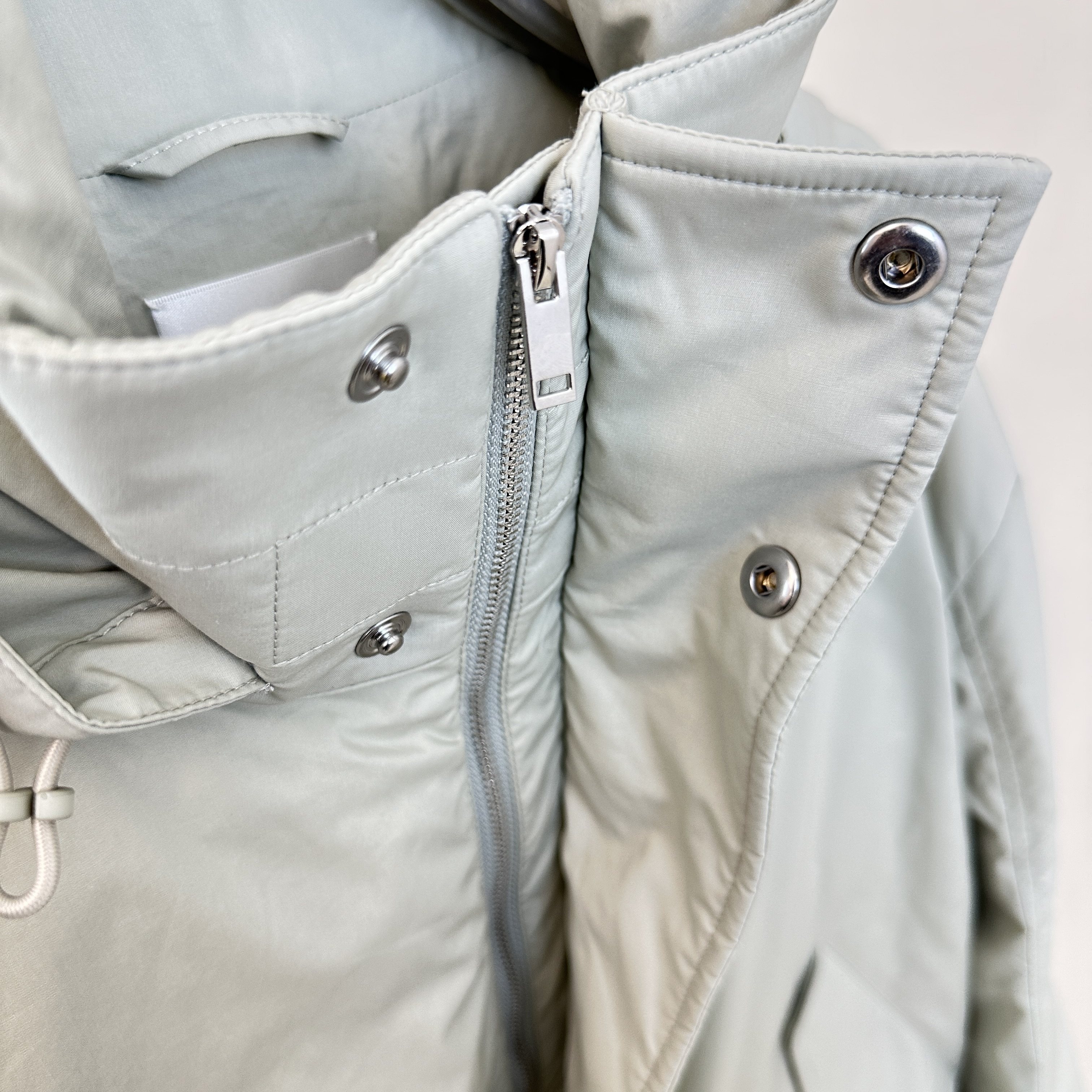 Row Style Lucius Same Style Loose Hooded Short Thin down Jacket Sage Green Light Green Jacket Coat