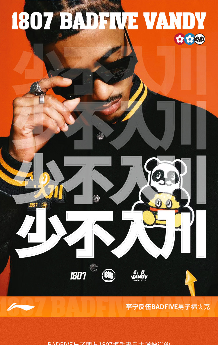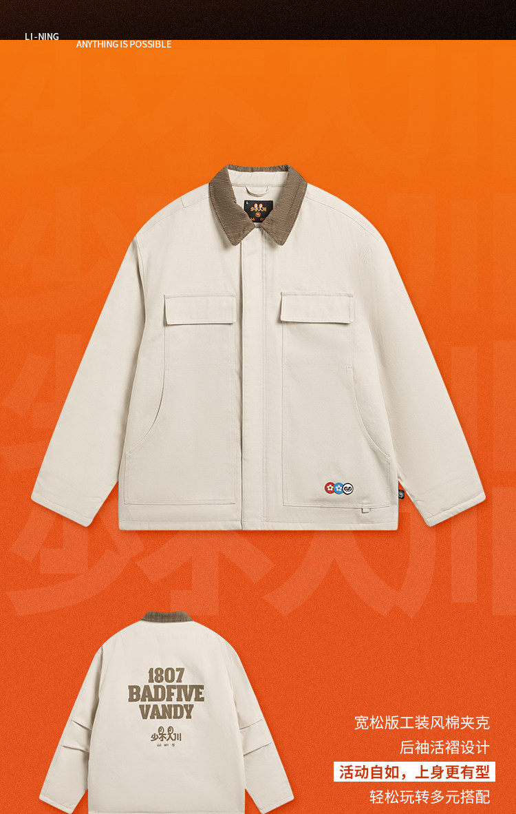 Li-Ning Badfive X 1807 Collaboration Cotton Jacket Men's Spring Turn-Down Collar Sportswear