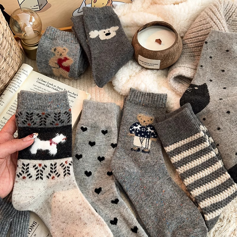 Striped Socks for Women, Autumn and Winter, Fleece-Lined, Thickened, Warm Mid-Calf Socks, Japanese Style, Cute Student Socks, Odor-Resistant, Sweat-Absorbent Long Socks
