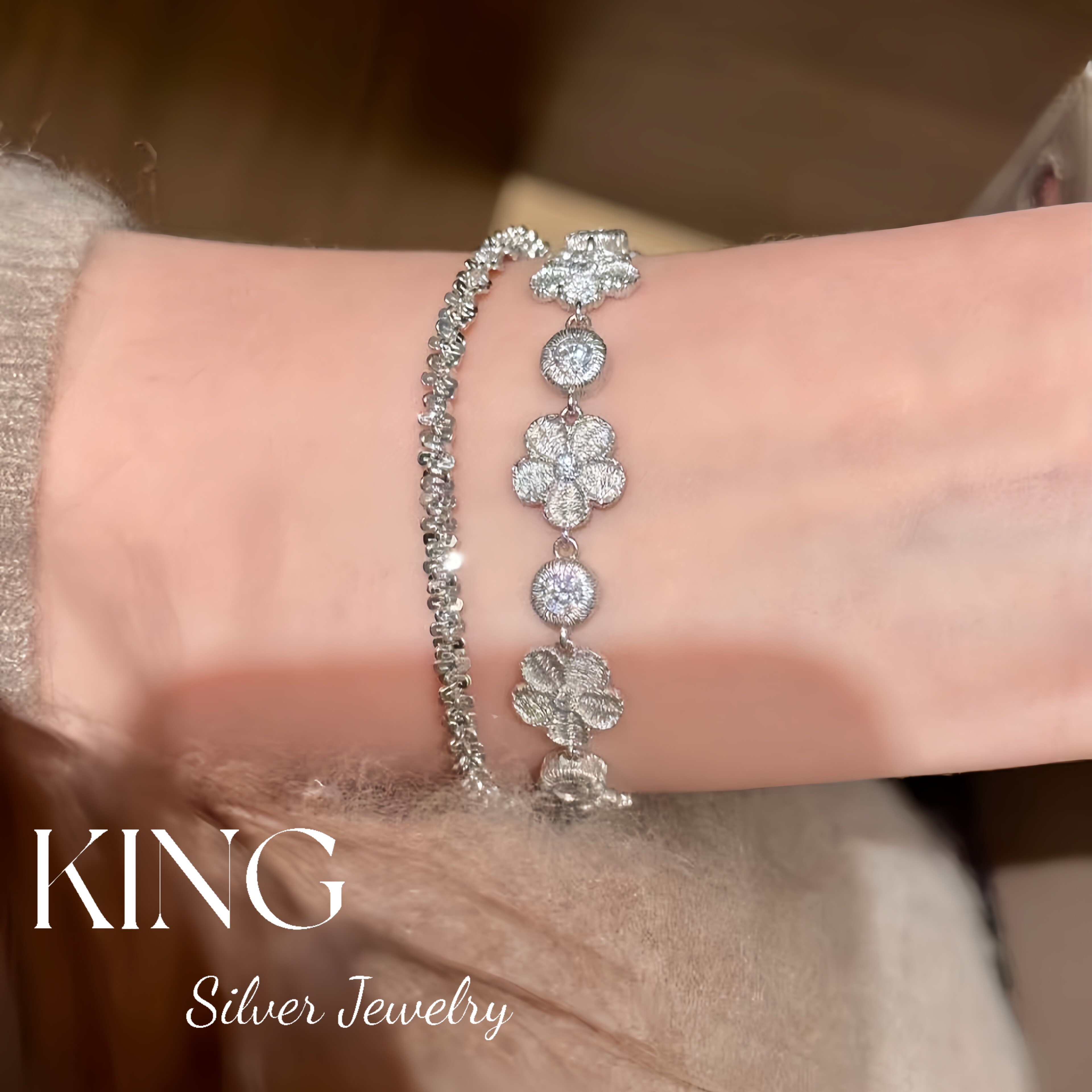 Weeping Vine | S925 Silver Gold-Plated Rotating Gold Scale Broken Silver Vintage Fashion Light Luxury Pure Silver Bracelet