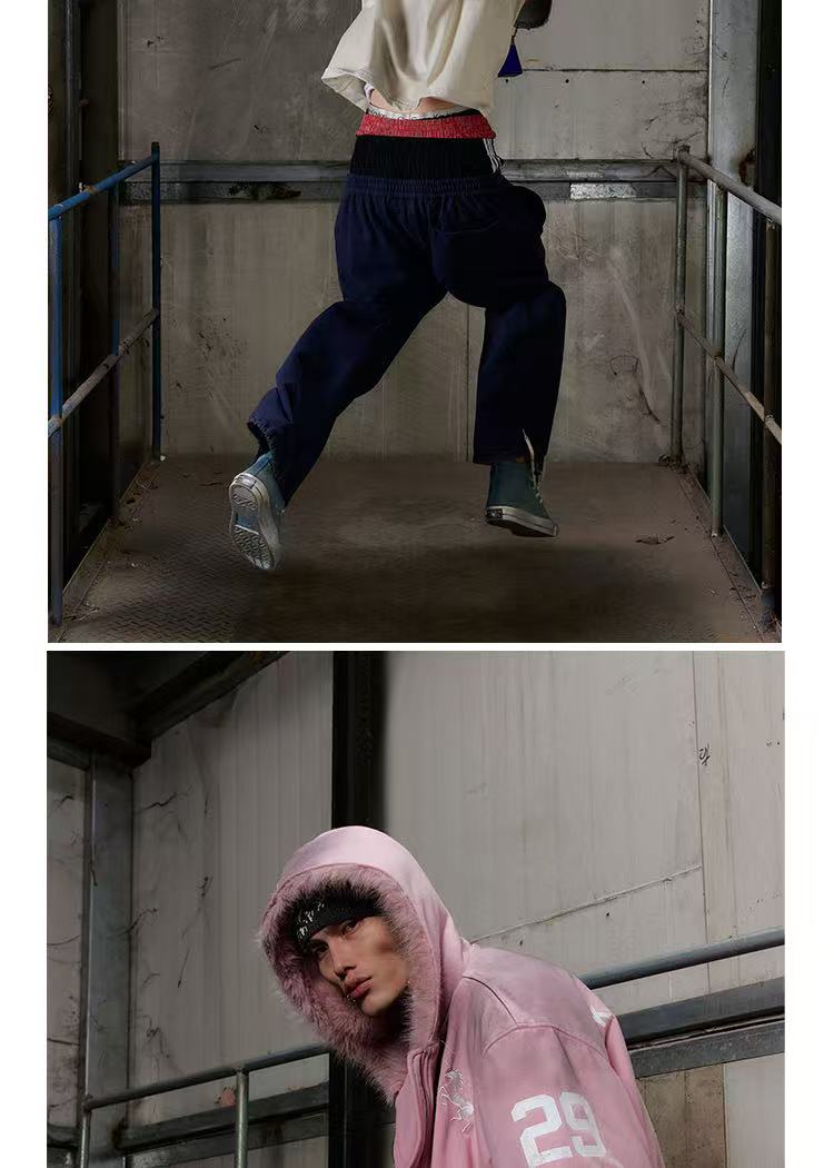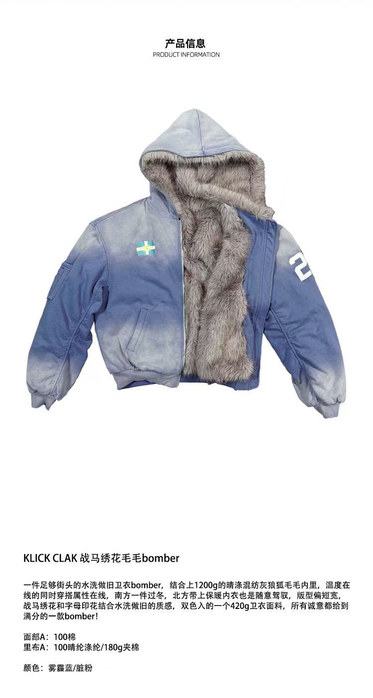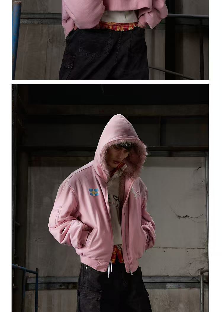 Klick Clak Washed and Distressed Embroidered Mountain Carving Jacket Sweatshirt Cotton Coat
