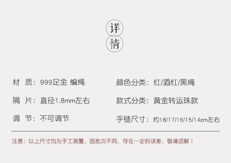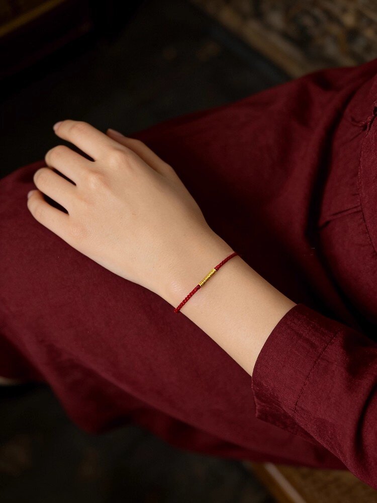 Ultra-Fine 999 Pure Gold Fortune Beads Red String Bracelet for Men and Women, Good Luck and Safety in One's Zodiac Year, Woven Bracelet