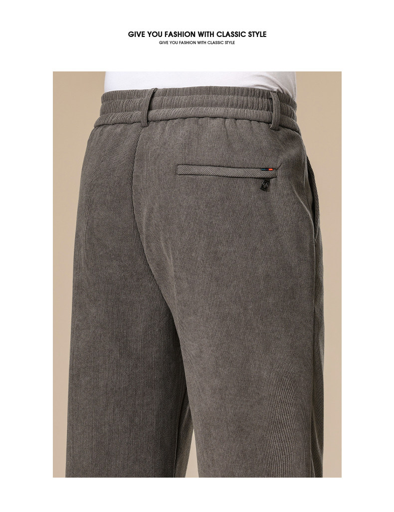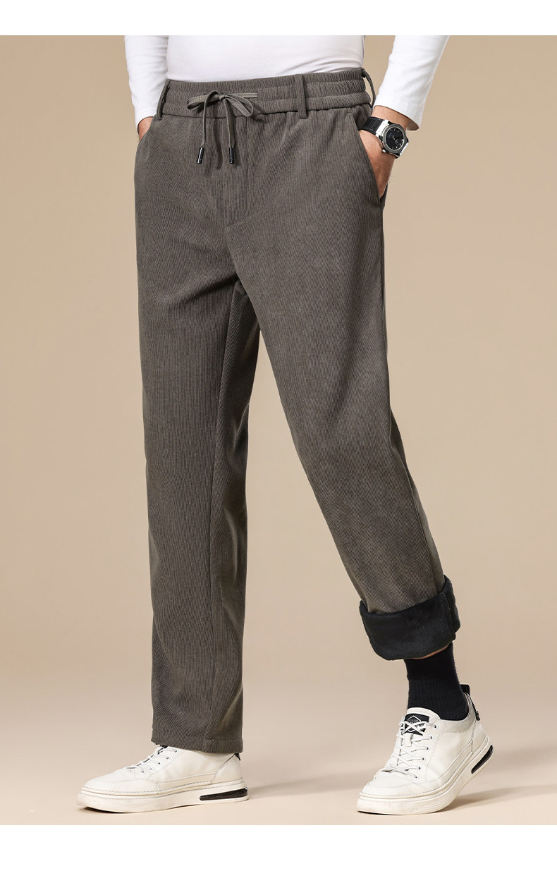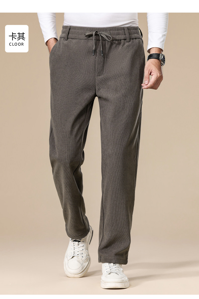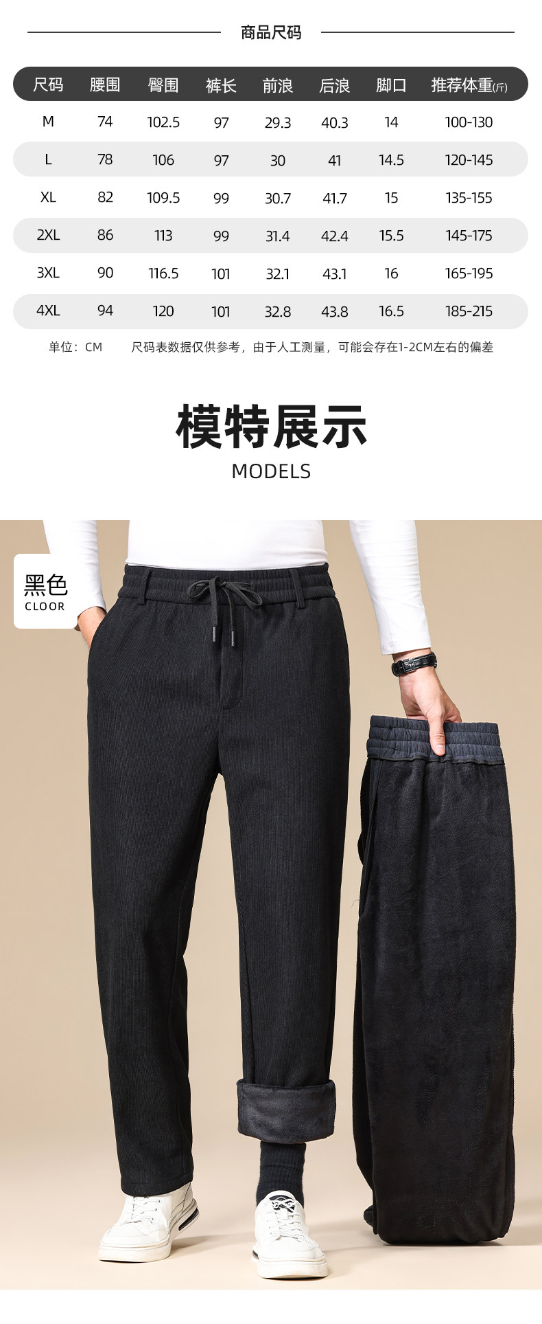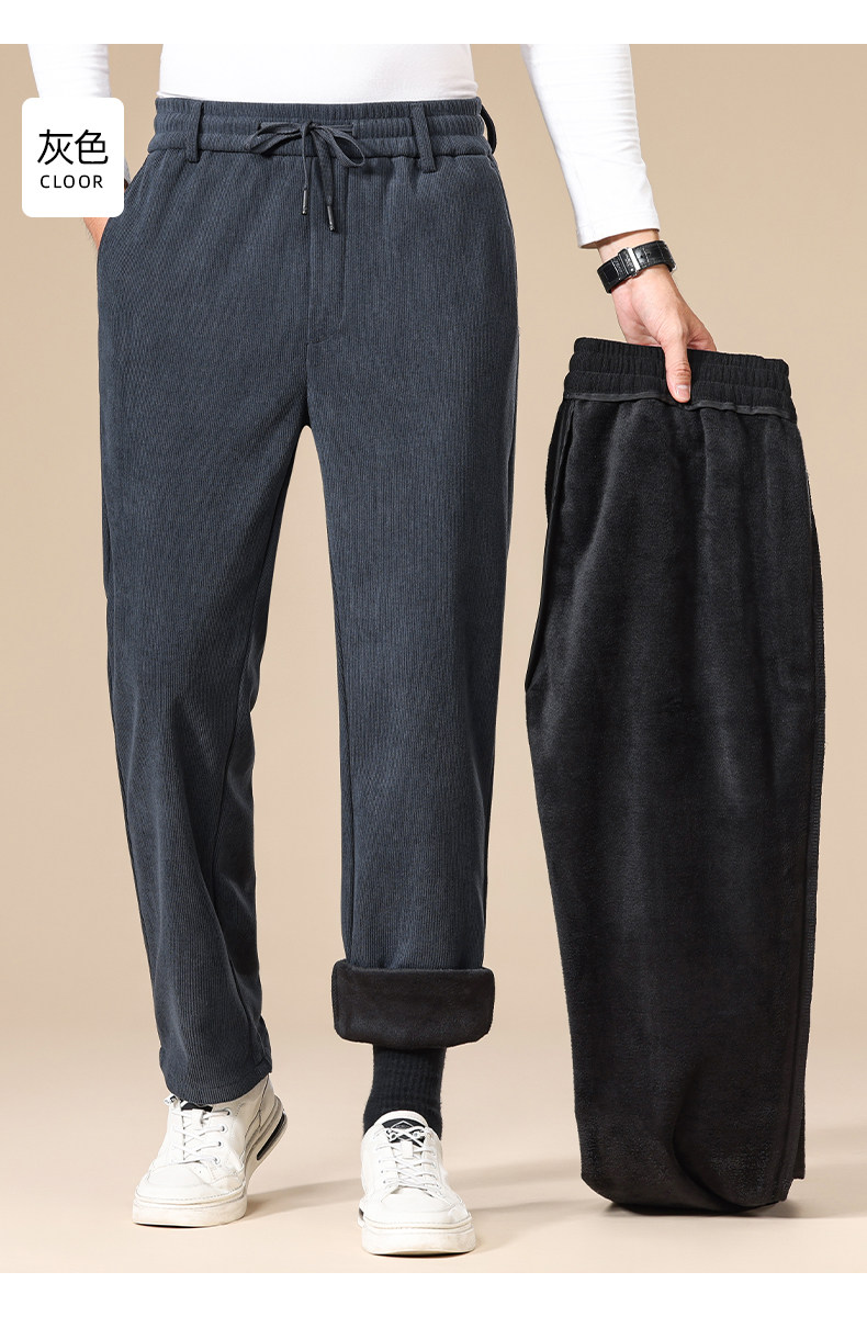[Corduroy] Romon Men's Warm Elastic Waist Casual Pants 2025 Winter New Style Fleece-Lined Thickened Long Pants