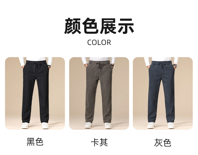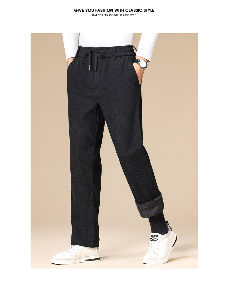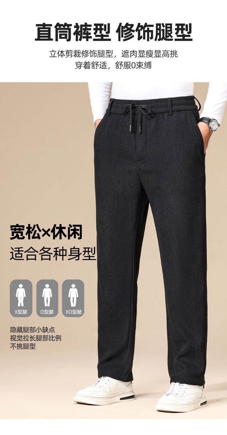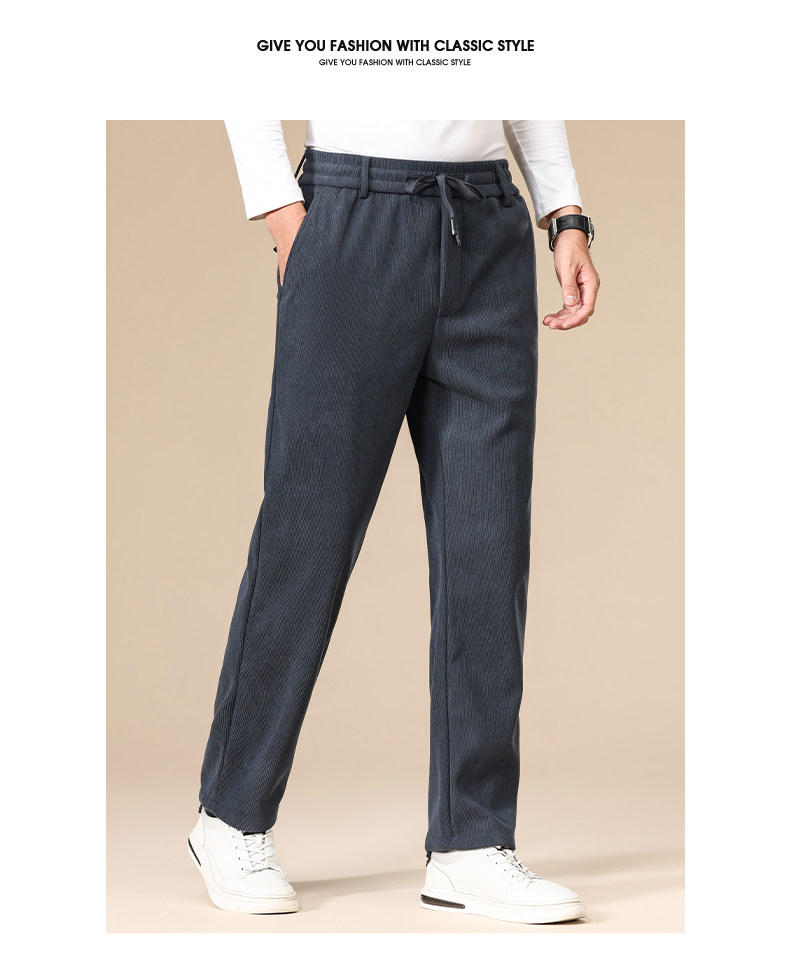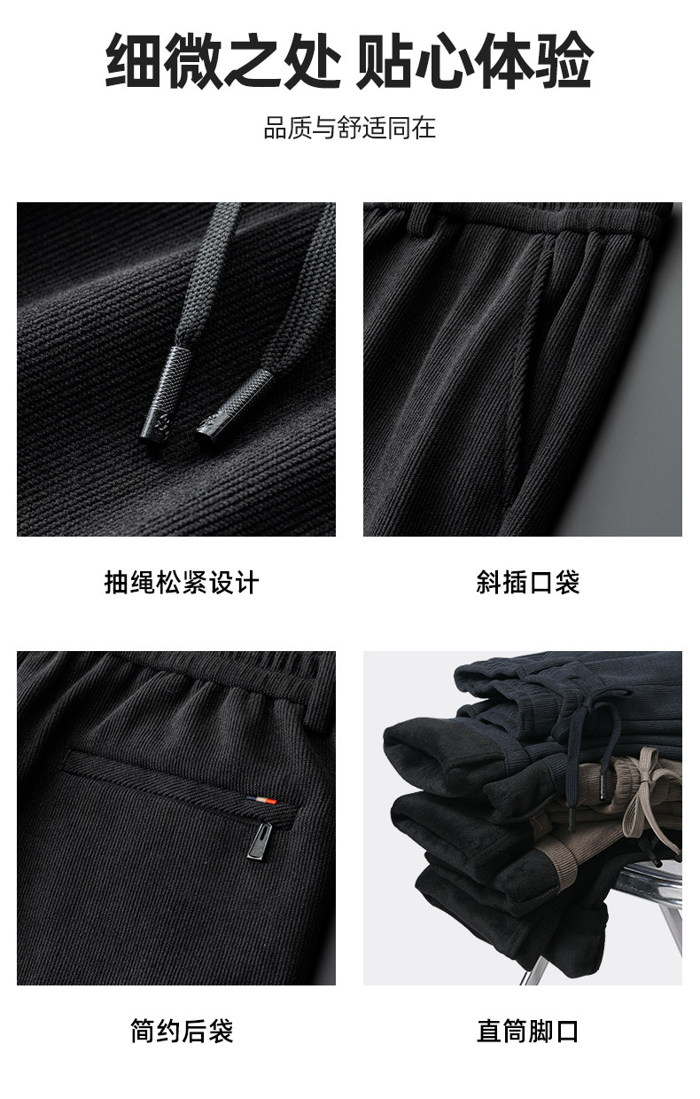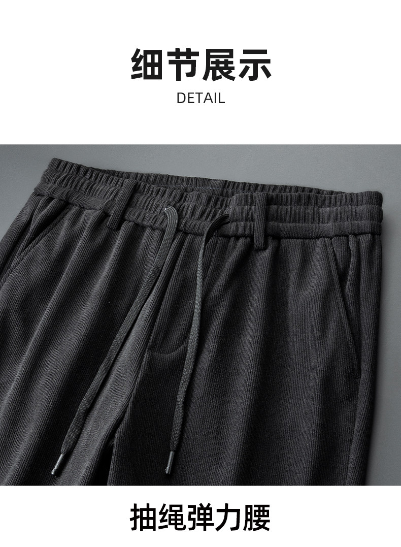 [Corduroy] Romon Men's Warm Elastic Waist Casual Pants 2025 Winter New Style Fleece-Lined Thickened Long Pants
